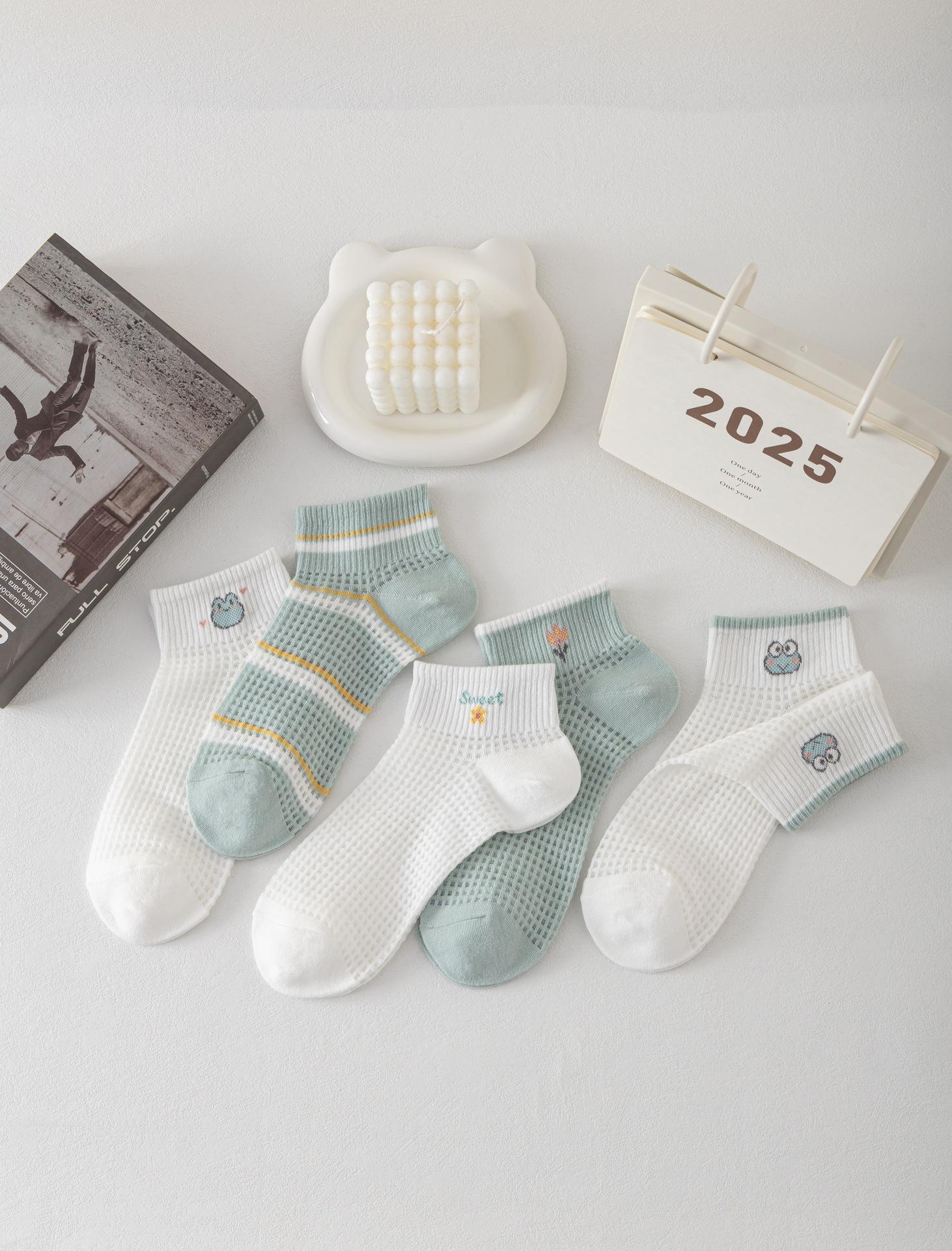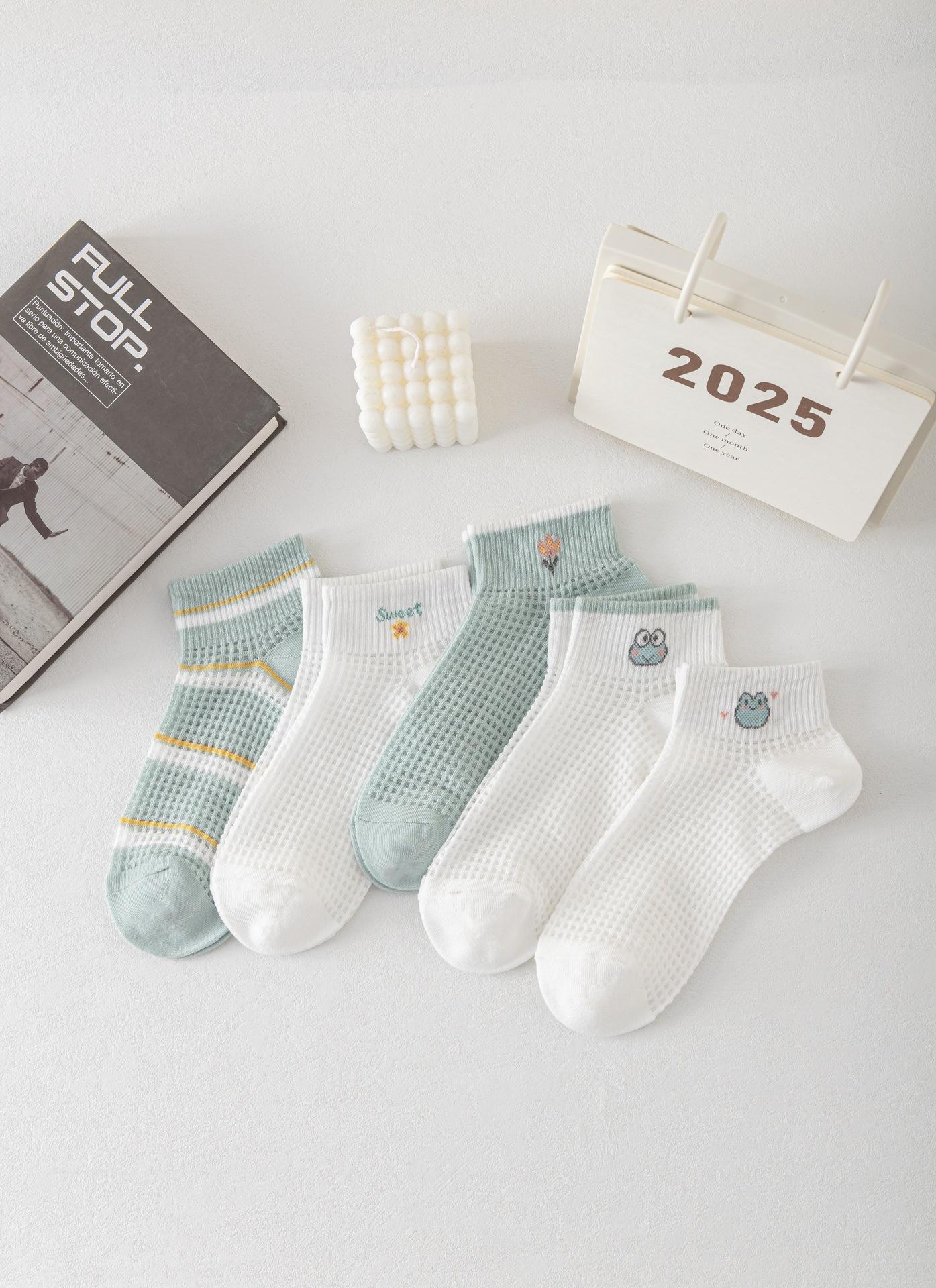 Calcetines Bajos Simples Verdes Malla de Verano Calcetines Cortos para Estudiante Calcetines Cortos Dulces Japoneses Calcetines de Barco Combinables