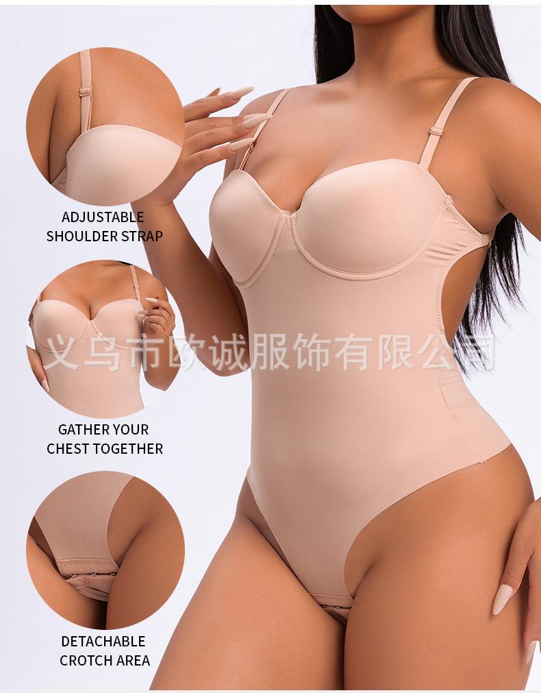 Body Sexy sin Espalda con Tirantes Cruzados para Modelar la Figura, con Soporte para el Busto Push-Up, Entrepierna Tipo Tanga, Ropa Interior Modeladora