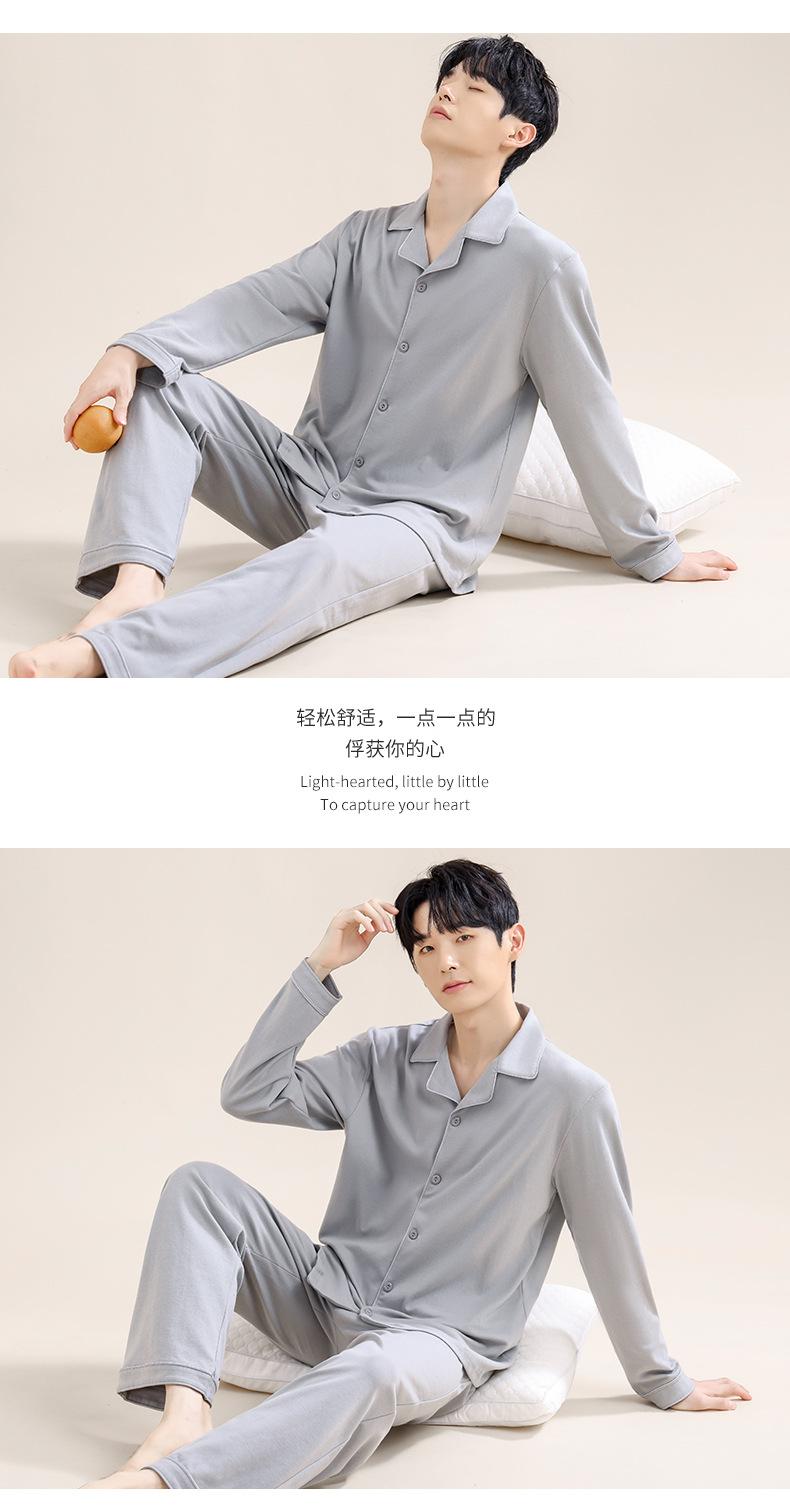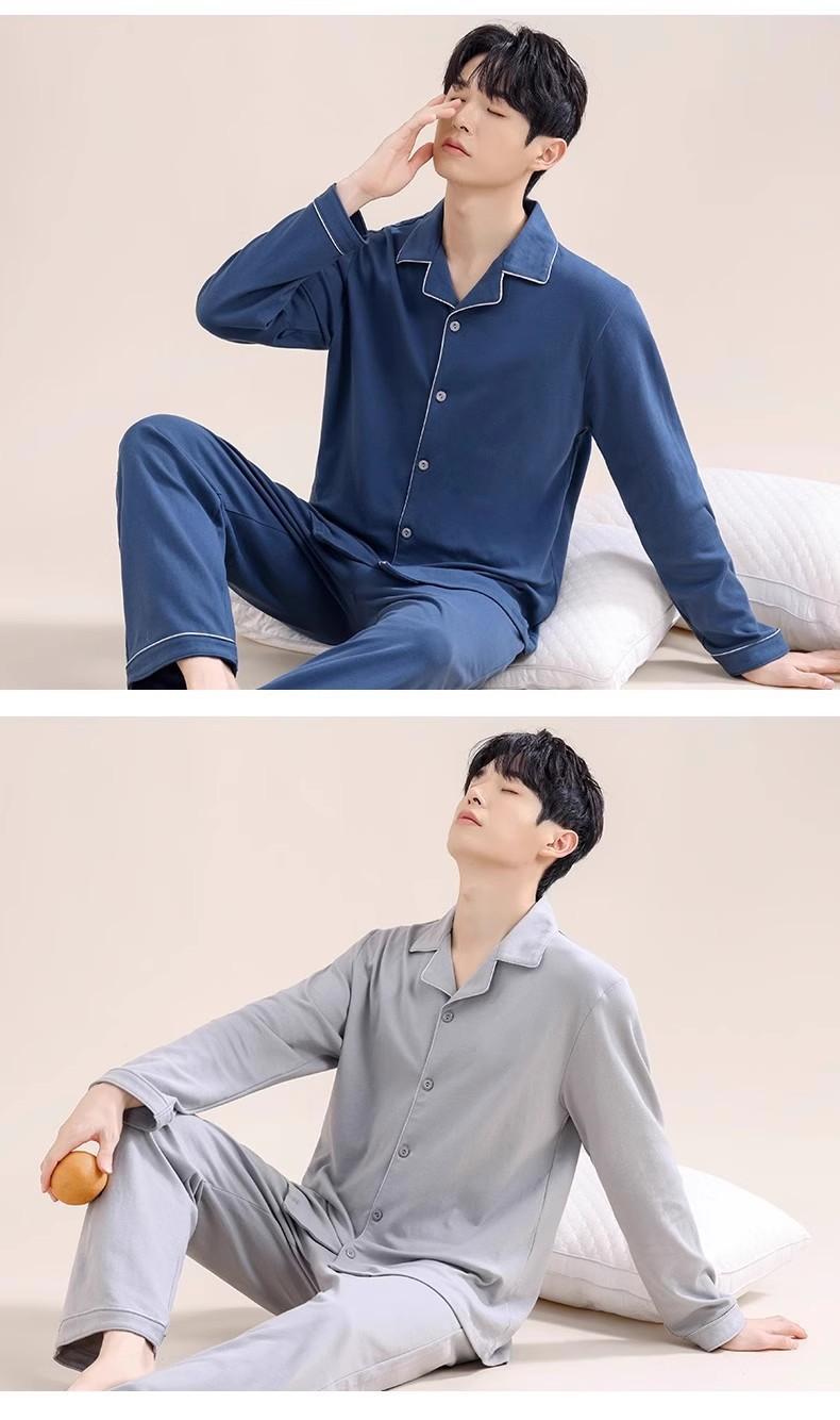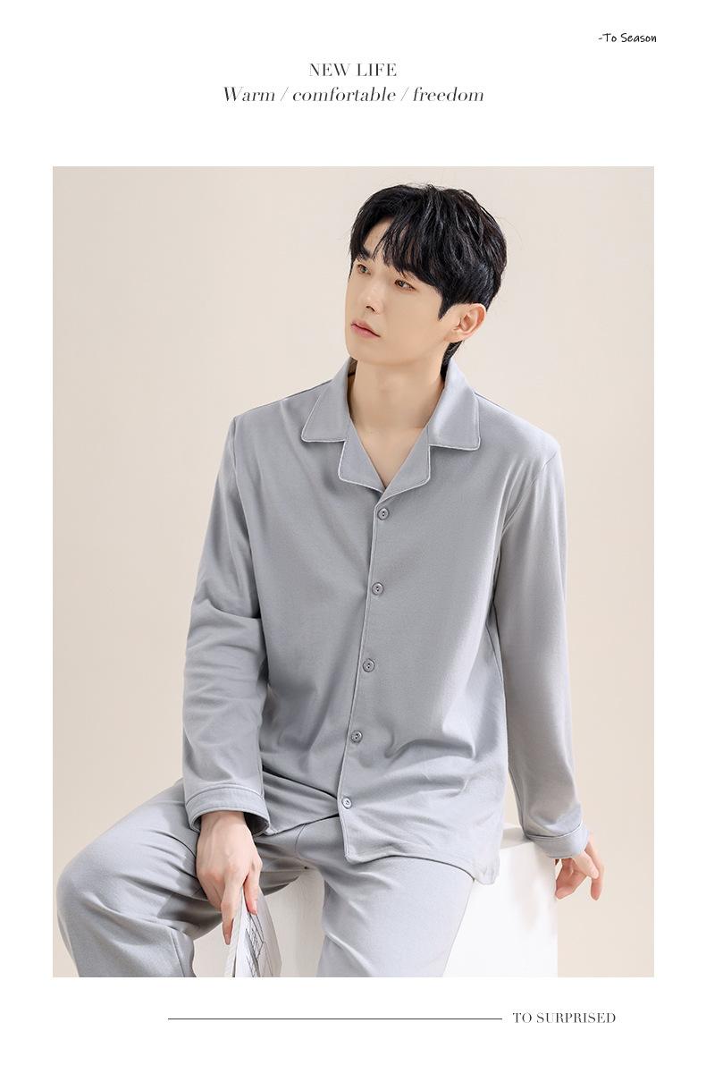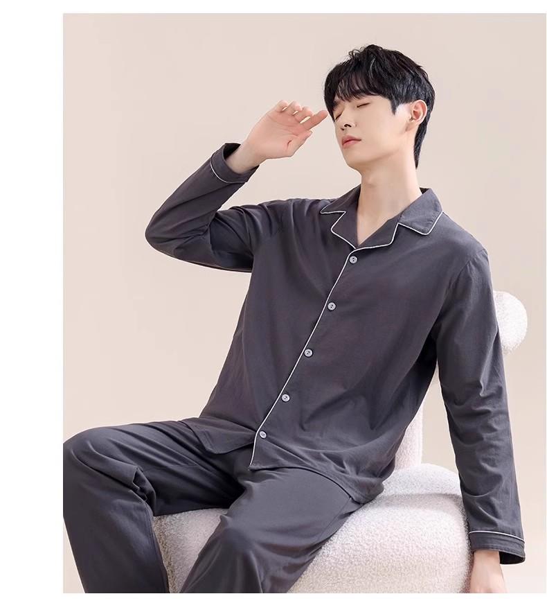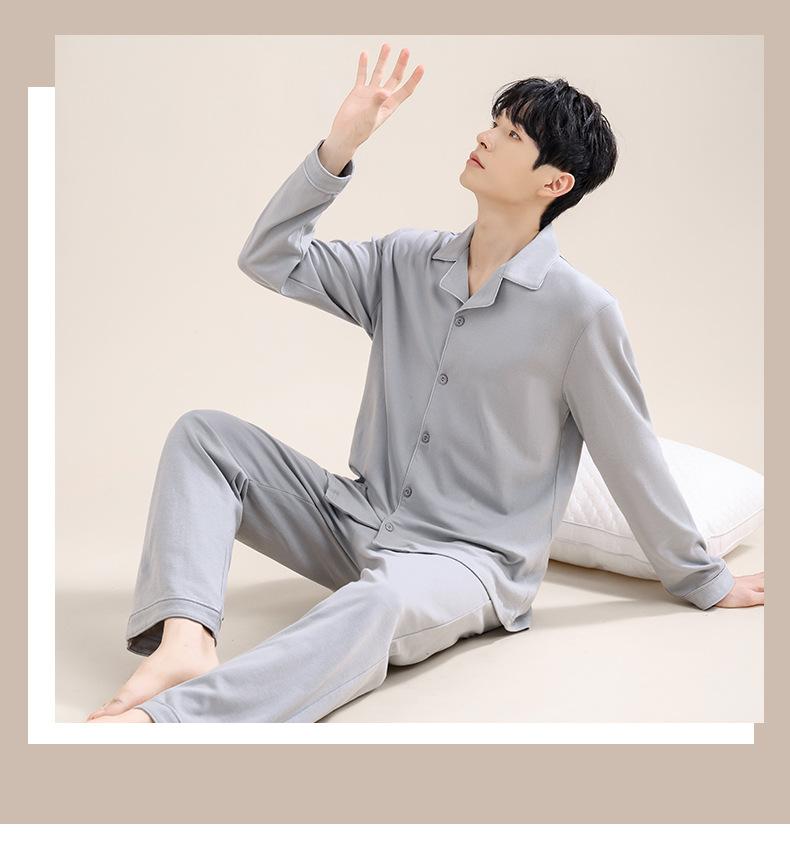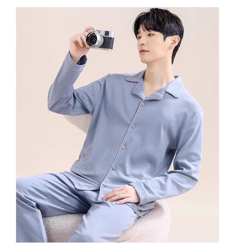Pijama para hombre Ropa para el hogar de algodón puro para hombre Pantalones de manga larga Cárdigan 2025 Nuevo Traje delgado de algodón 100% para hombre