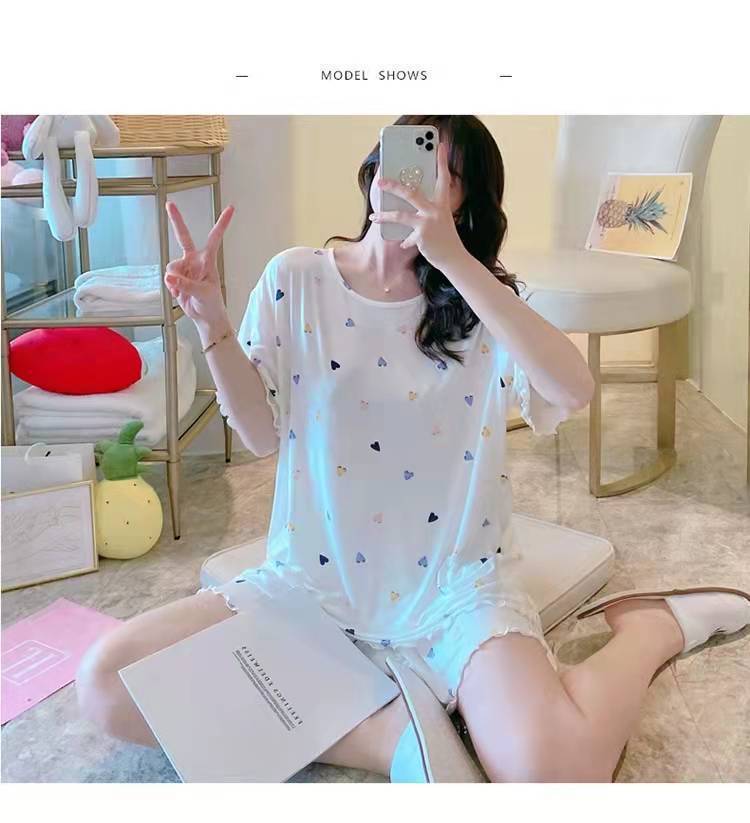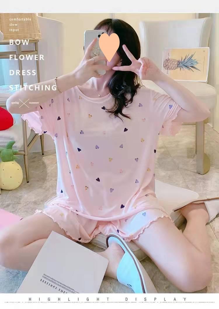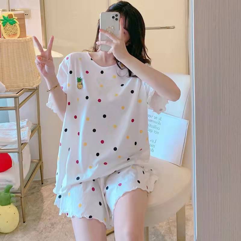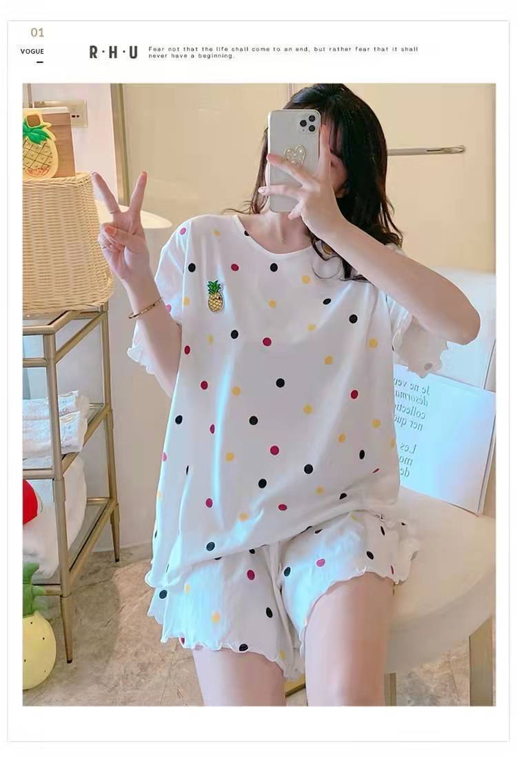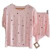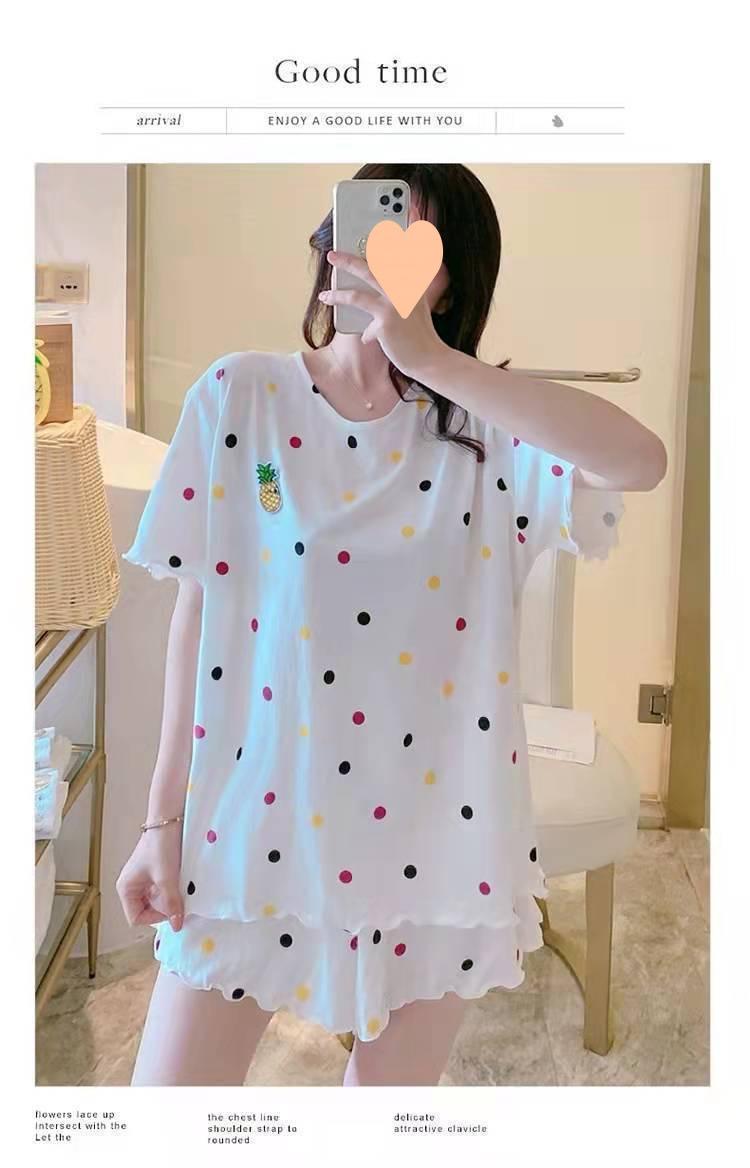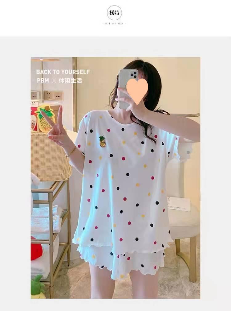Pijama de Manga Corta para Mujer Talla Grande 150 kg Verano Suelto Casual Ropa para el Hogar Pulóver Dulce Niña Traje de Dos Piezas Trendy