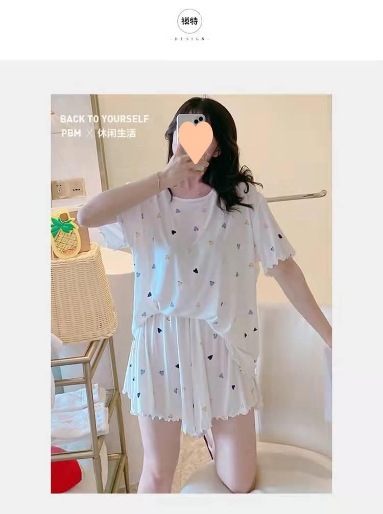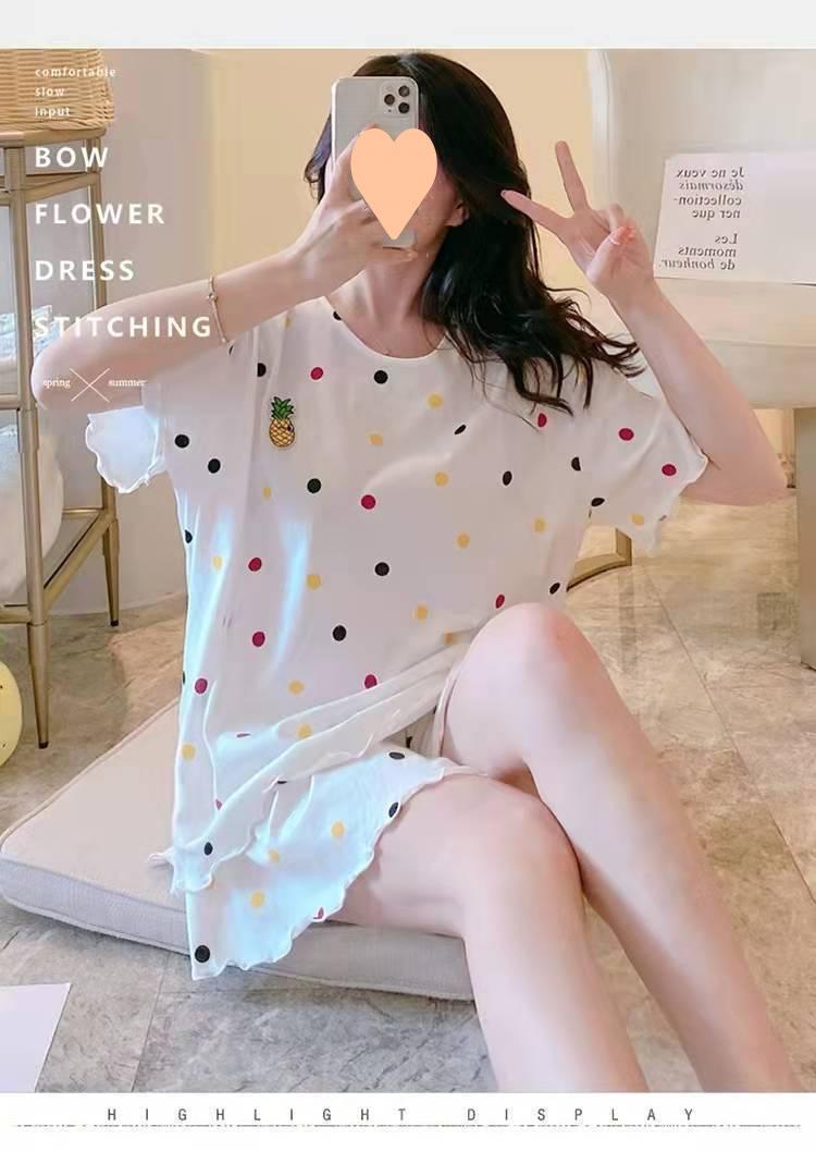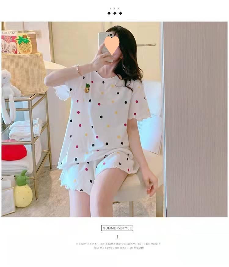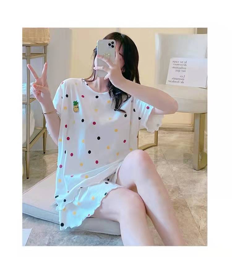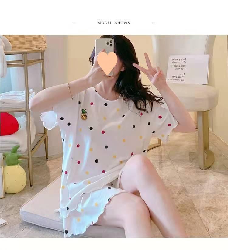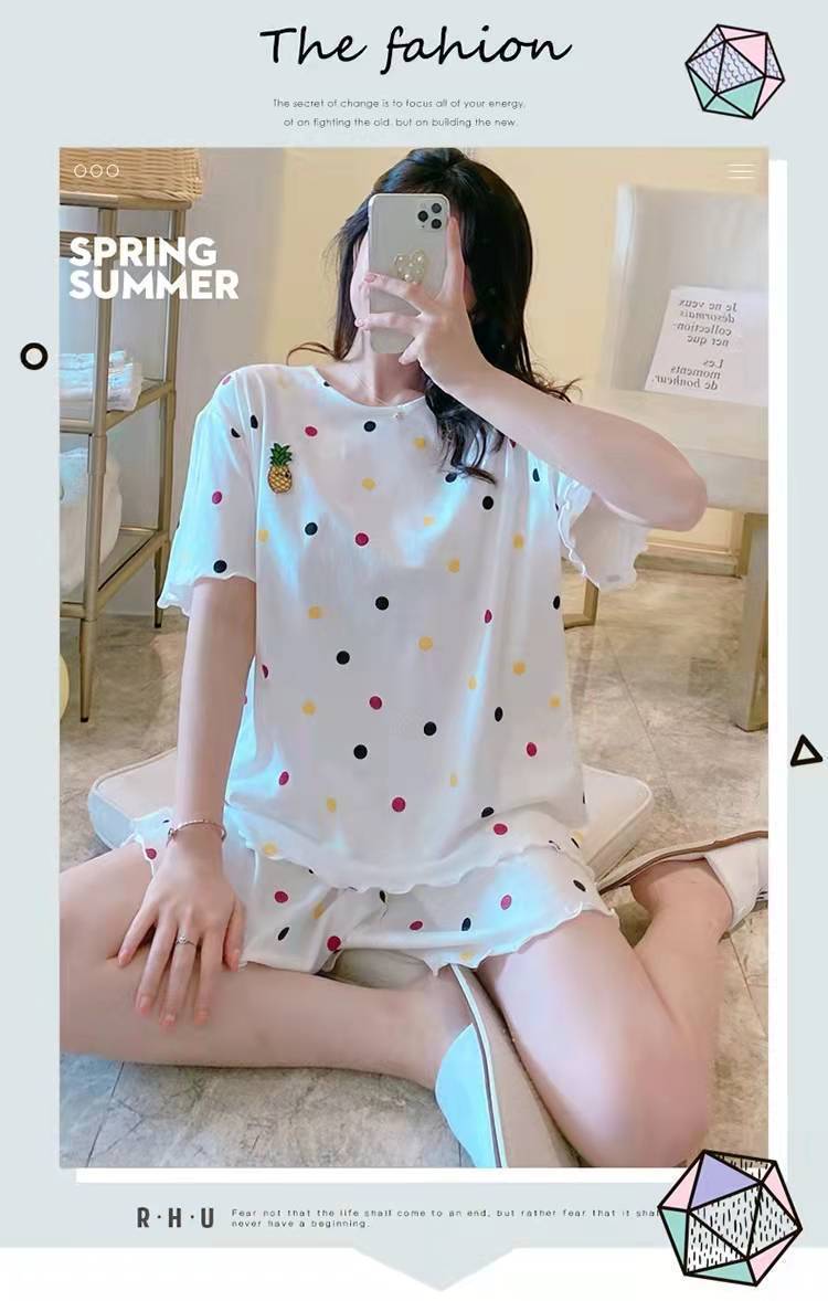 Pijama de Manga Corta para Mujer Talla Grande 150 kg Verano Suelto Casual Ropa para el Hogar Pulóver Dulce Niña Traje de Dos Piezas Trendy