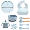 Gray blue—eight-piece set (smiley face suction cup plate + 3d bib + snail bowl + straw cup + bear spoon and fork + wooden handle fork and spoon)