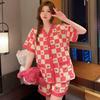 Pijama de Seda de Hielo para Mujer Verano Manga Corta de Alta Gama Lujoso Conjunto de Pijama Verano Delgado Seda Ropa de Casa para Mujer