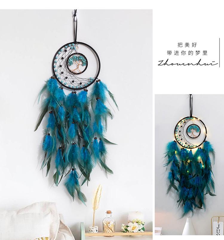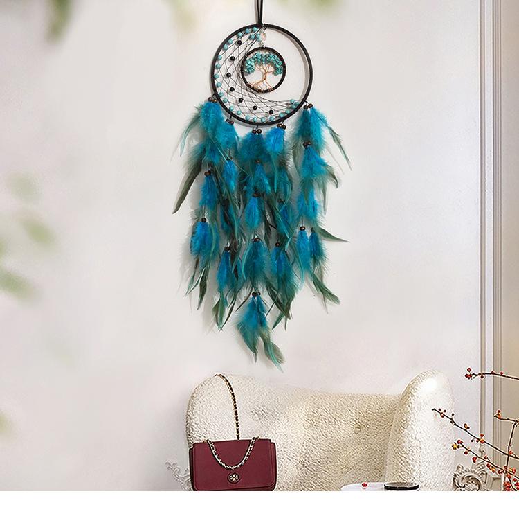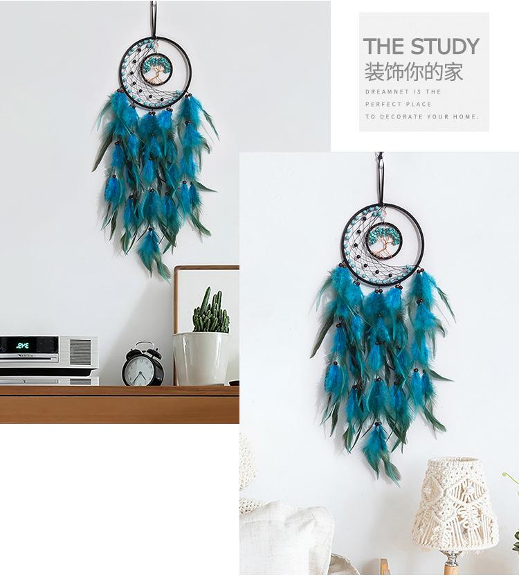 Atrapasueños Hecho a Mano Transfronterizo Árbol de la Vida Pluma Decoración para el Hogar Atrapasueños para Colgar en la Pared Decoración de Habitación Atrapasueños