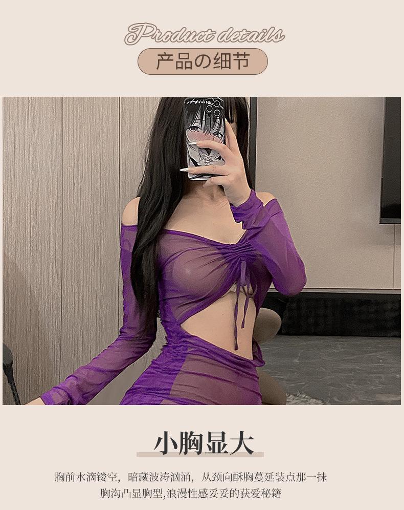 Tentación Sexy Uniforme Morado Pasión Tentación Perspectiva de Ajuste de Cama de Archivo Abierto Libre de Deseo Puro Traje Uniforme Venta al por Mayor