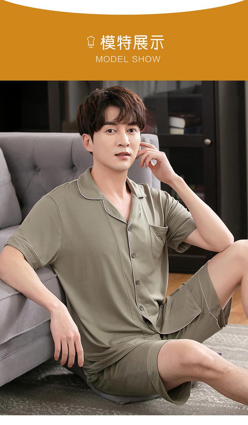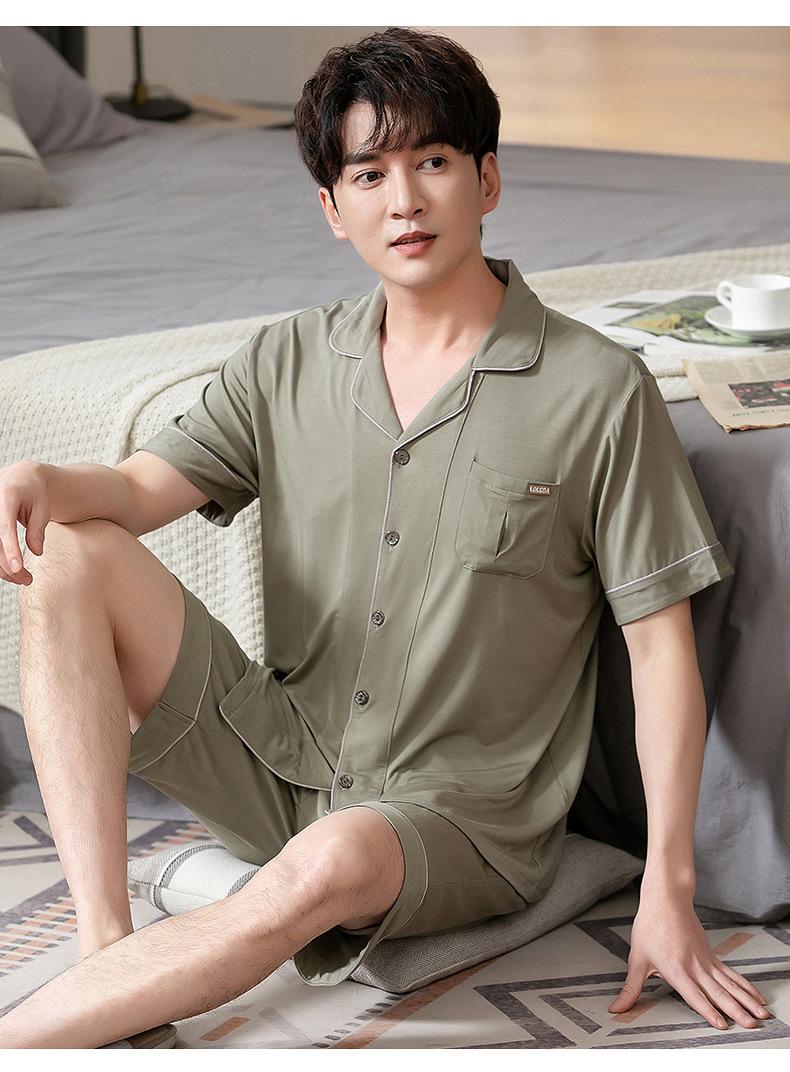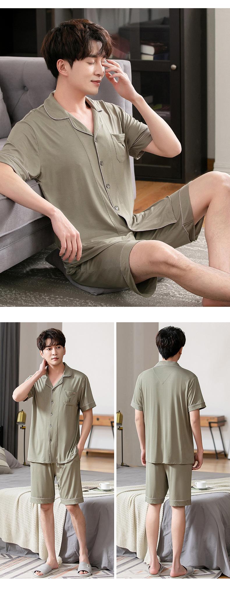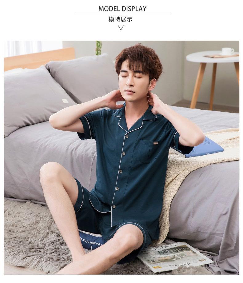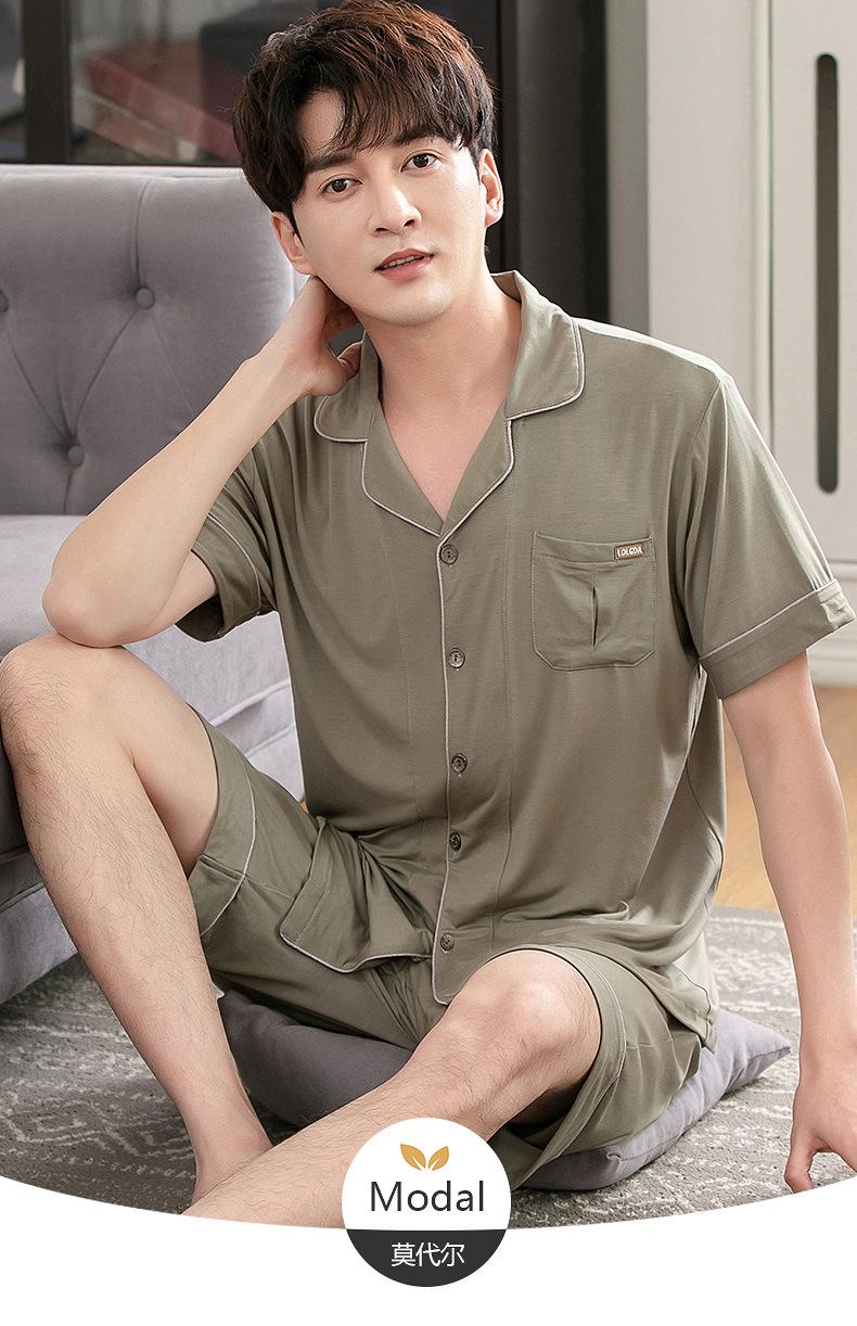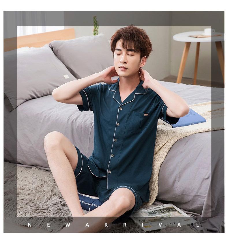 Pijama de Verano para Hombre de Manga Corta de Algodón Modal Pantalones Cortos Traje Ropa para el Hogar Juvenil Suelto Talla Grande Estilo para Hombre Se Puede Usar Afuera