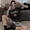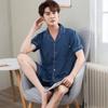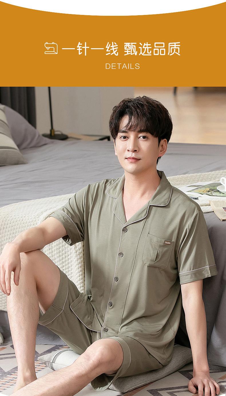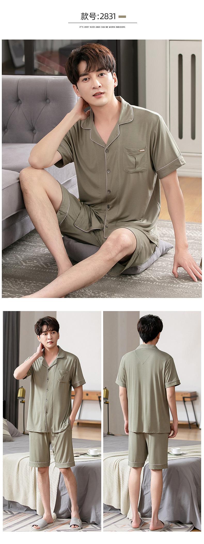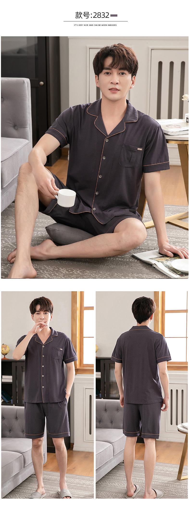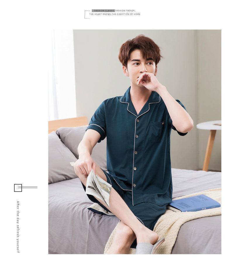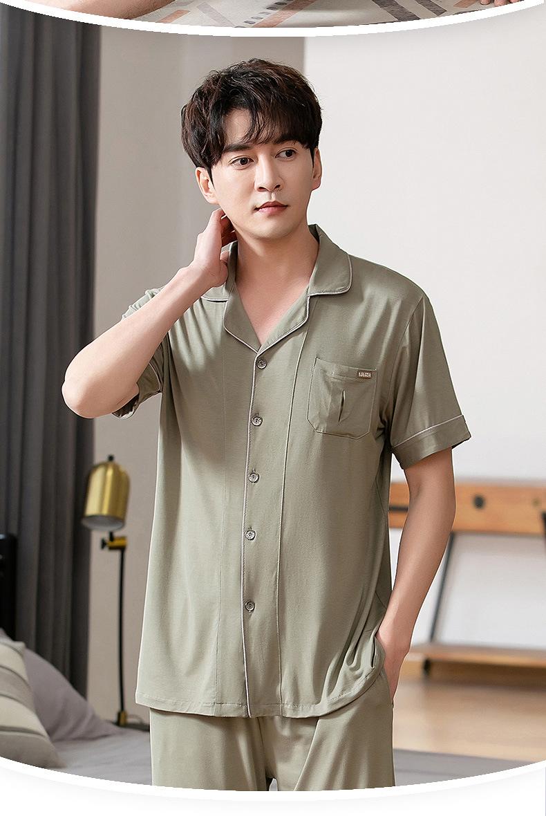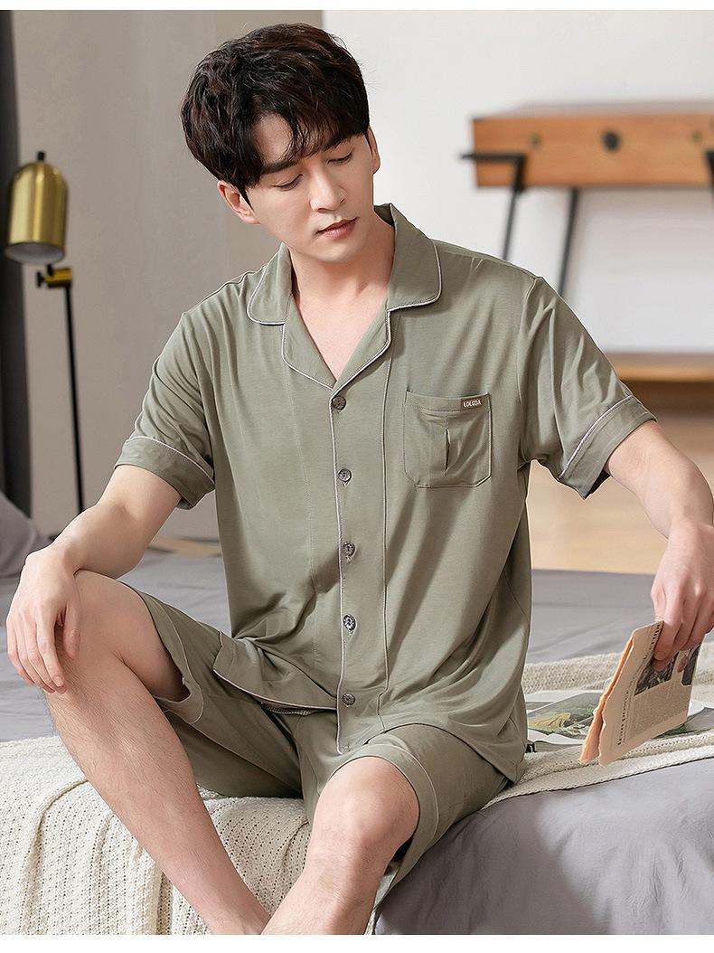 Pijama de Verano para Hombre de Manga Corta de Algodón Modal Pantalones Cortos Traje Ropa para el Hogar Juvenil Suelto Talla Grande Estilo para Hombre Se Puede Usar Afuera
