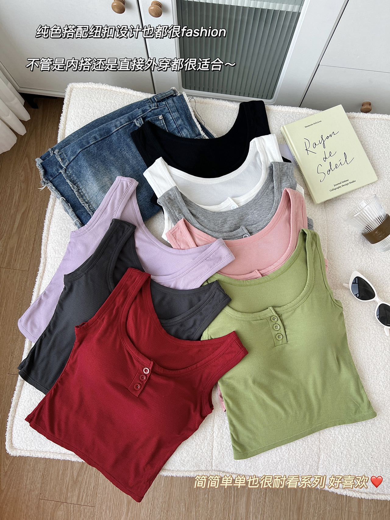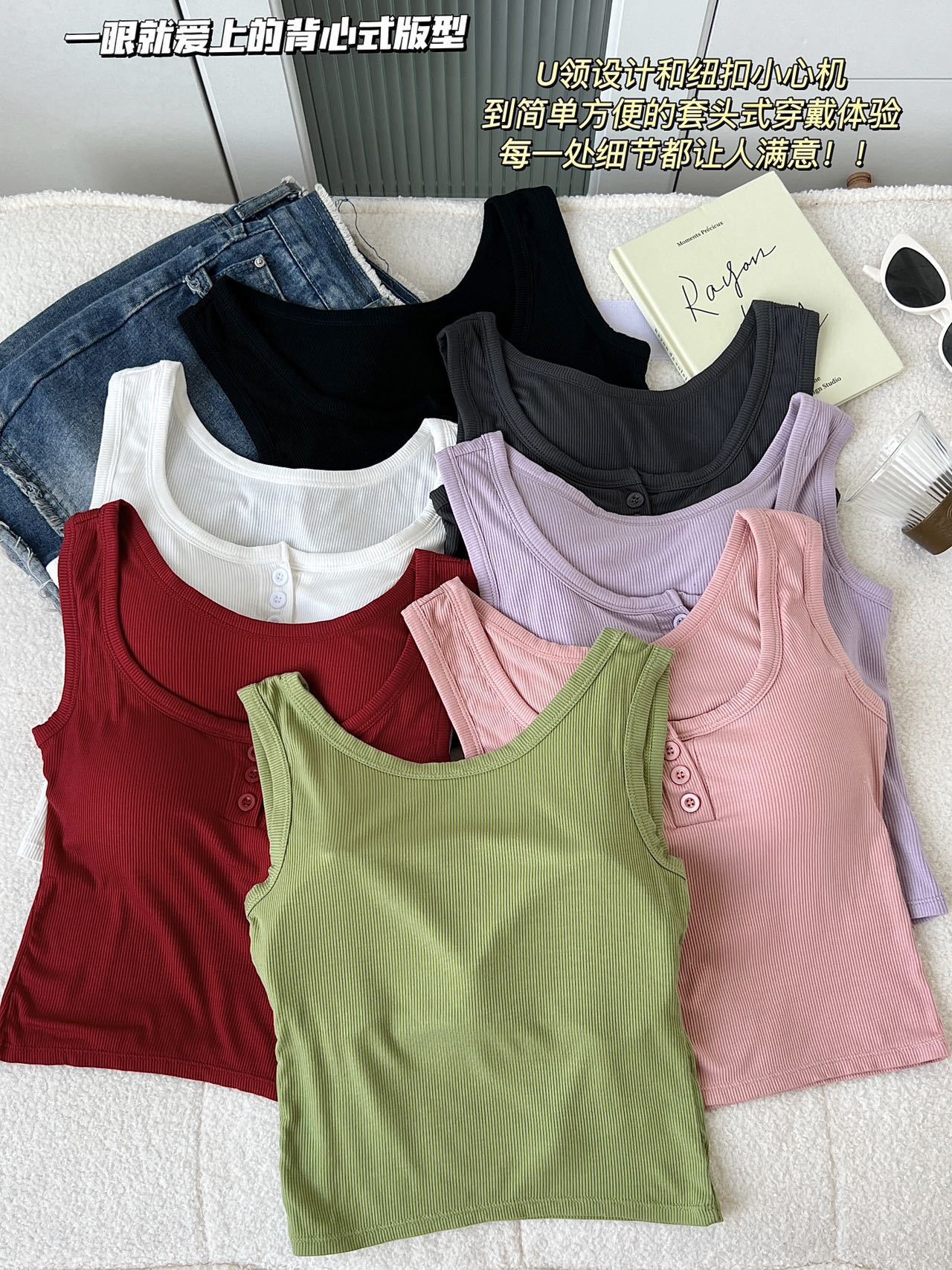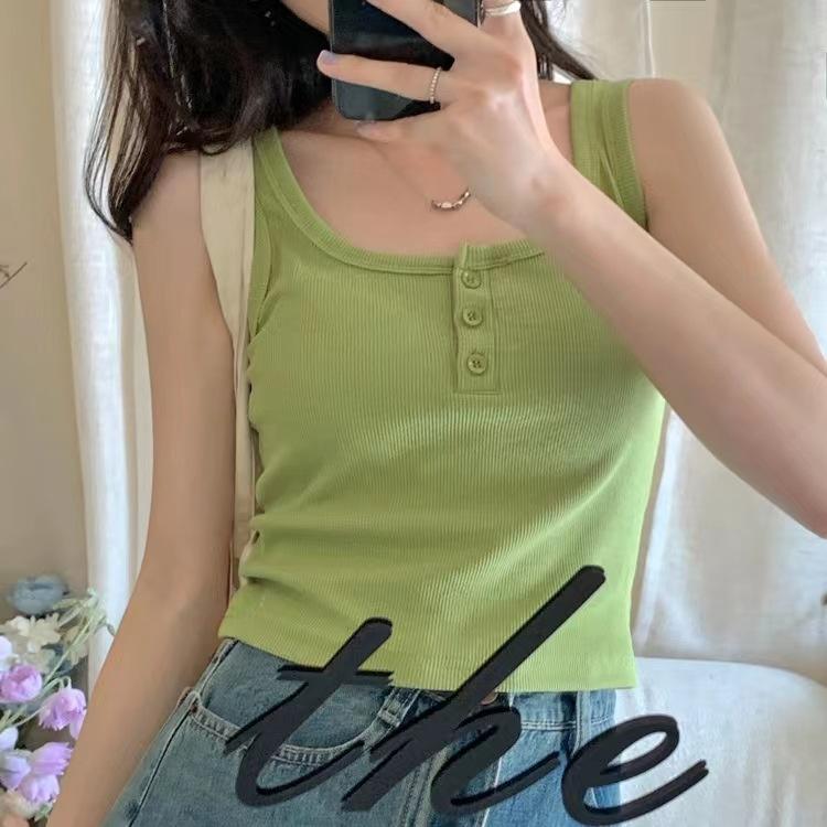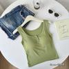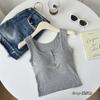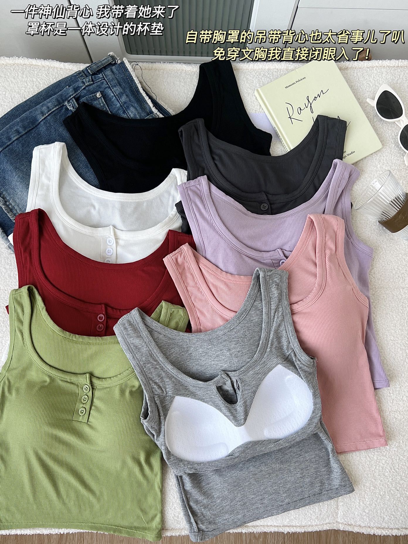 Camisola de tirantes de algodón a la moda con botones, para mujer, interior con tirantes, almohadilla en el pecho, camiseta básica, espalda bonita, top corto sin mangas