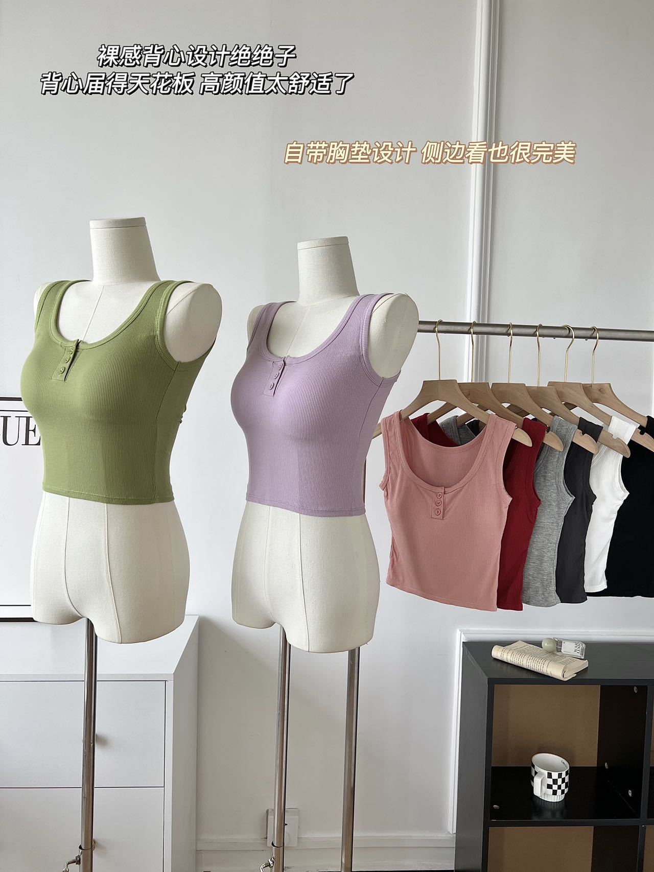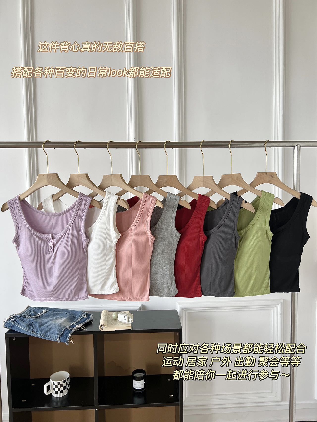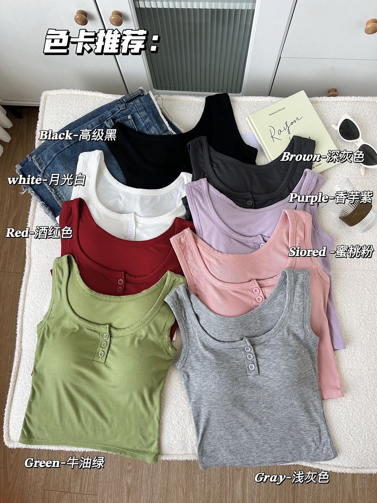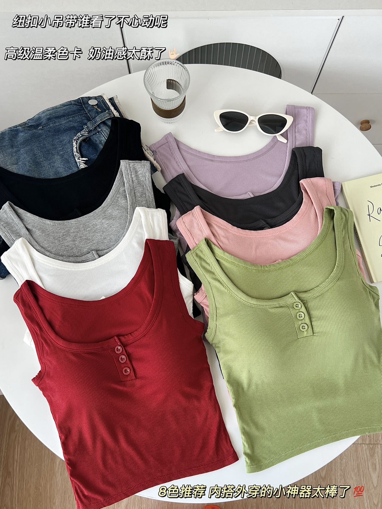 Camisola de tirantes de algodón a la moda con botones, para mujer, interior con tirantes, almohadilla en el pecho, camiseta básica, espalda bonita, top corto sin mangas