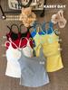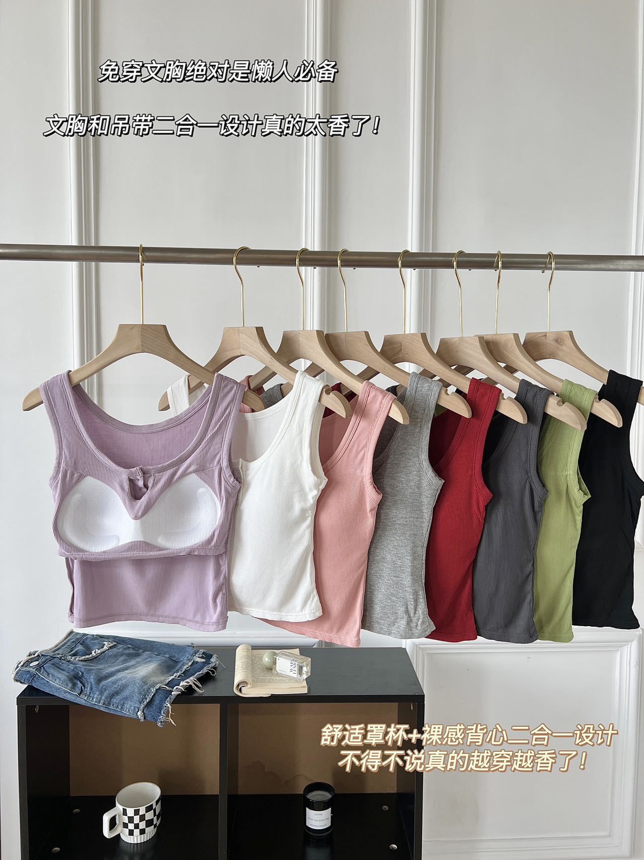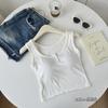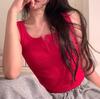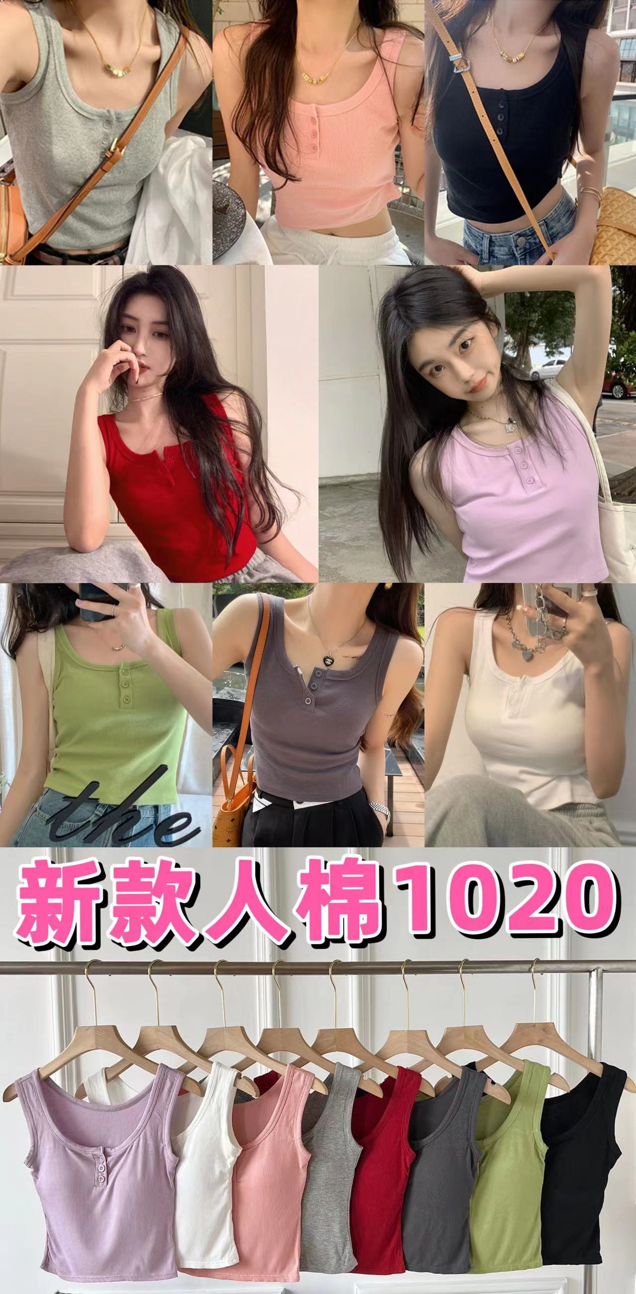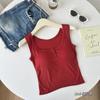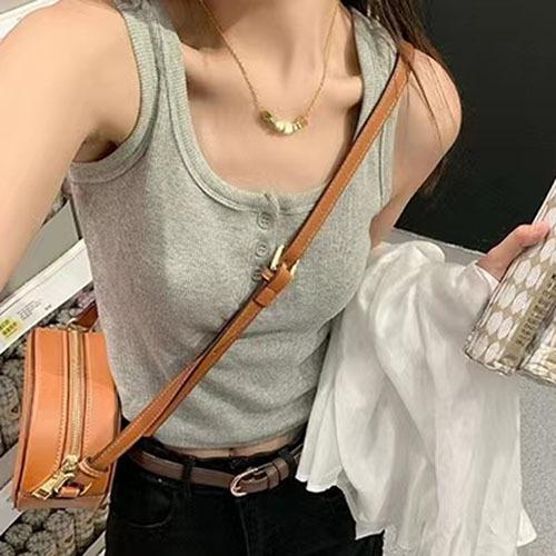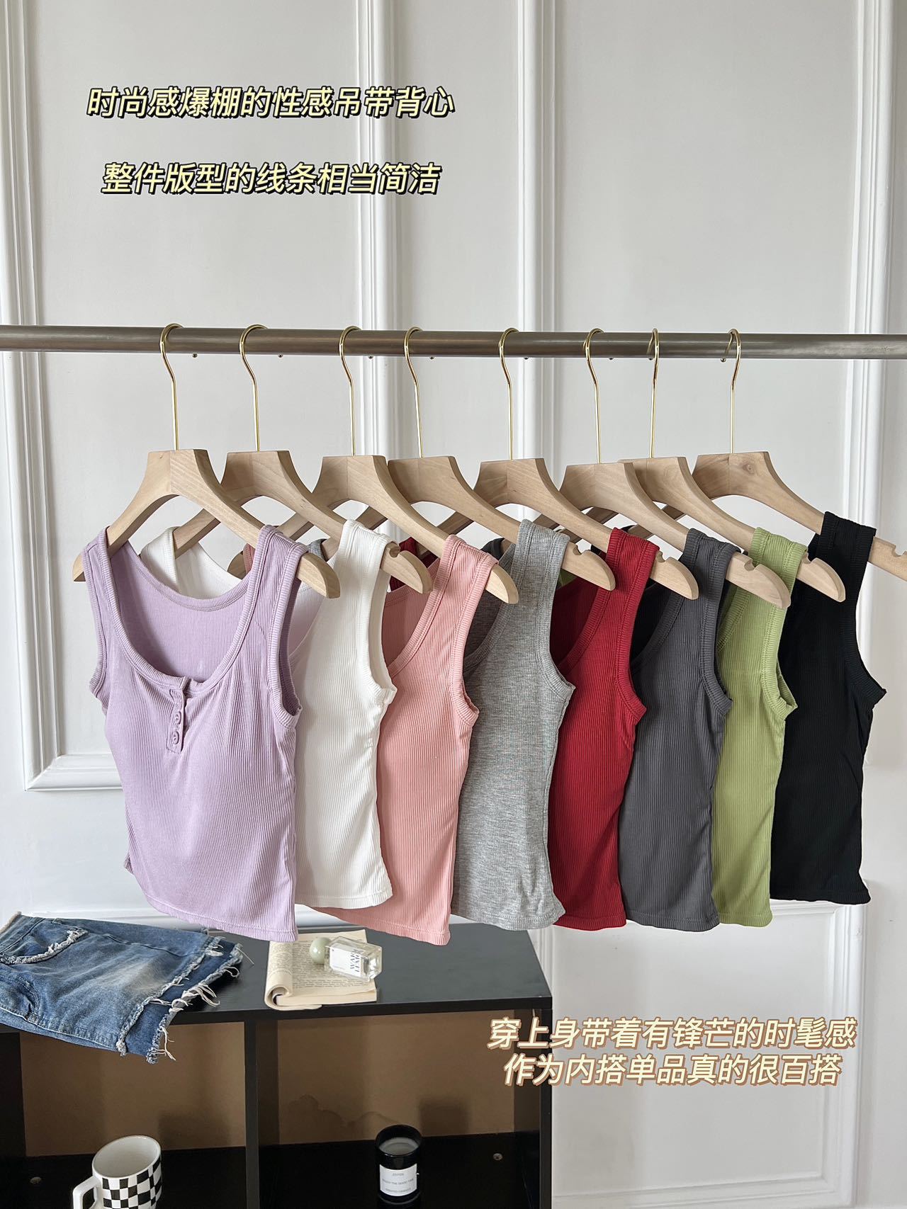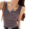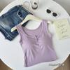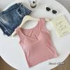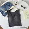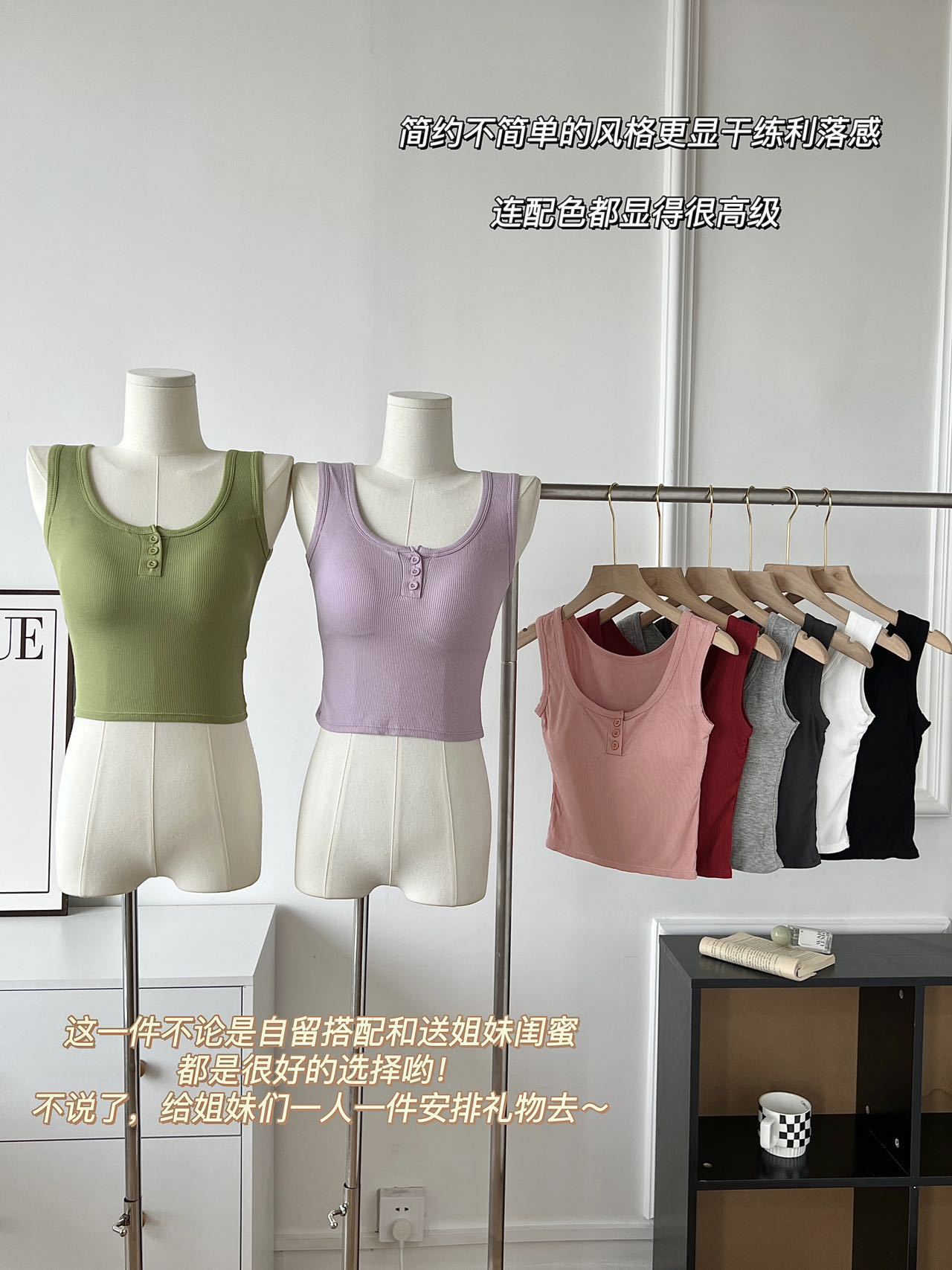 Camisola de tirantes de algodón a la moda con botones, para mujer, interior con tirantes, almohadilla en el pecho, camiseta básica, espalda bonita, top corto sin mangas