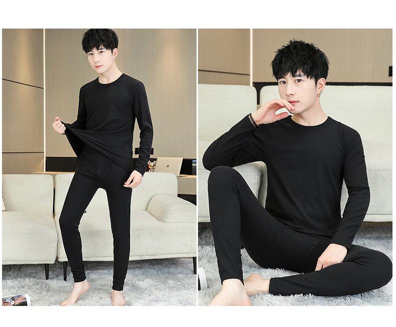 Dark gray round neck double-sided velvet suit 1 set, Black round neck double-sided velvet suit 1 set, Light gr...