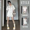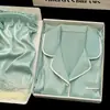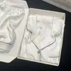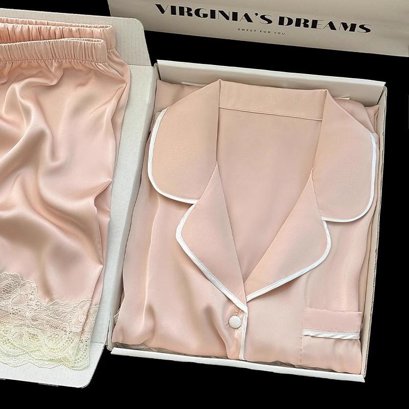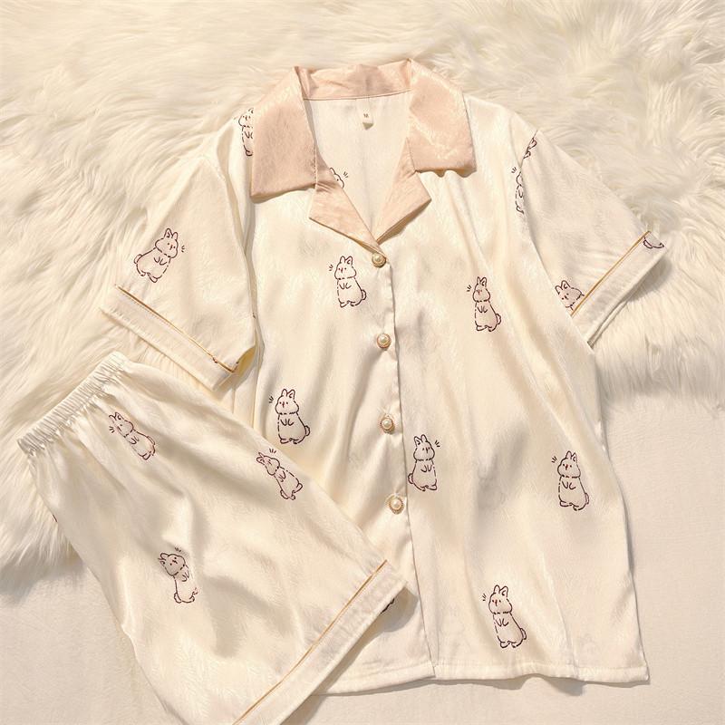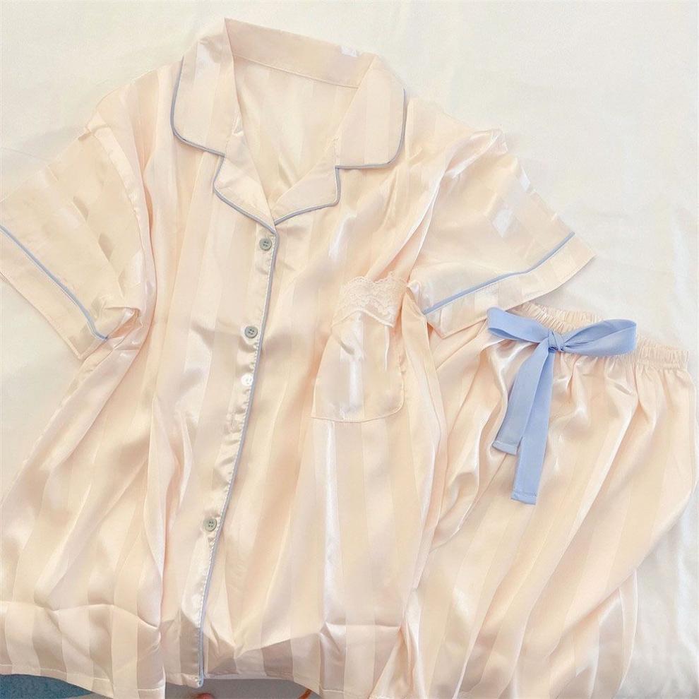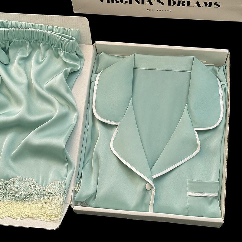 Pijama Fresco de Seda de Hielo para Mujer Verano Nuevo Manga Corta Encaje Delgada Seda Ropa de Verano para Usar en Casa Set