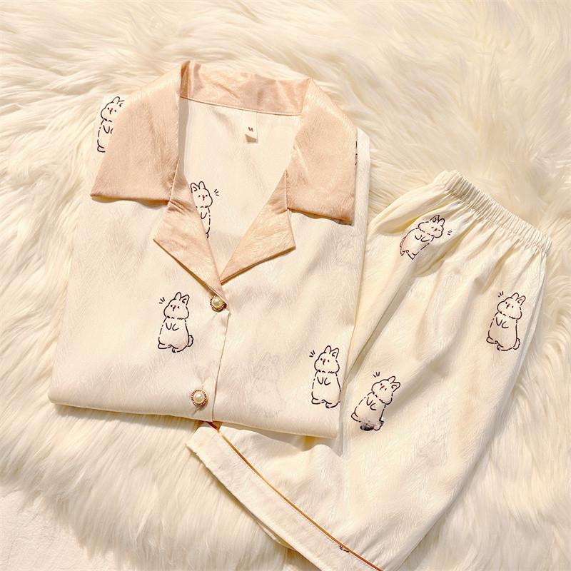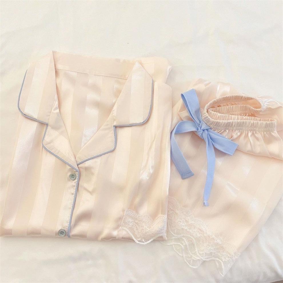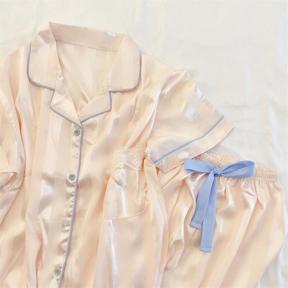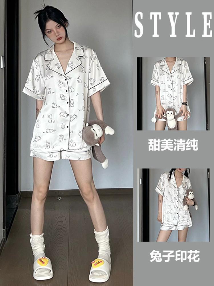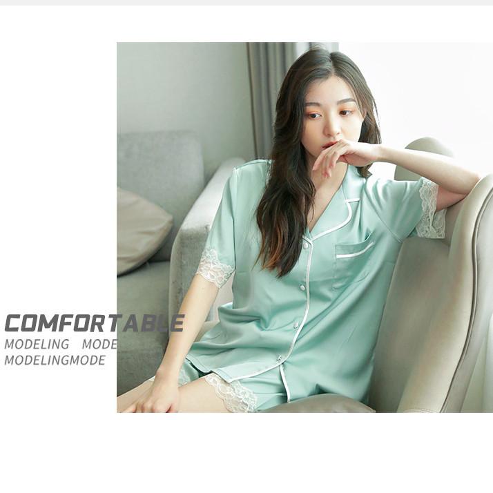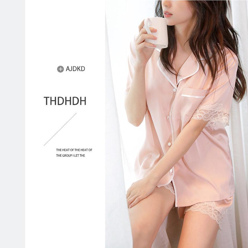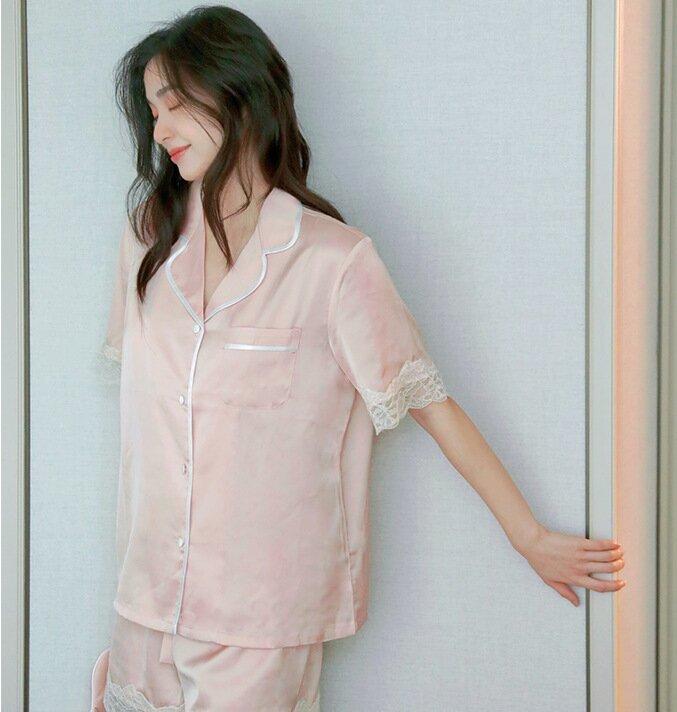 Compra Pijama Fresco de Seda de Hielo para Mujer Verano Nuevo Manga Corta Encaje Delgada Seda Ropa de Verano para Usar en Casa Set al por mayor en Joom.pro