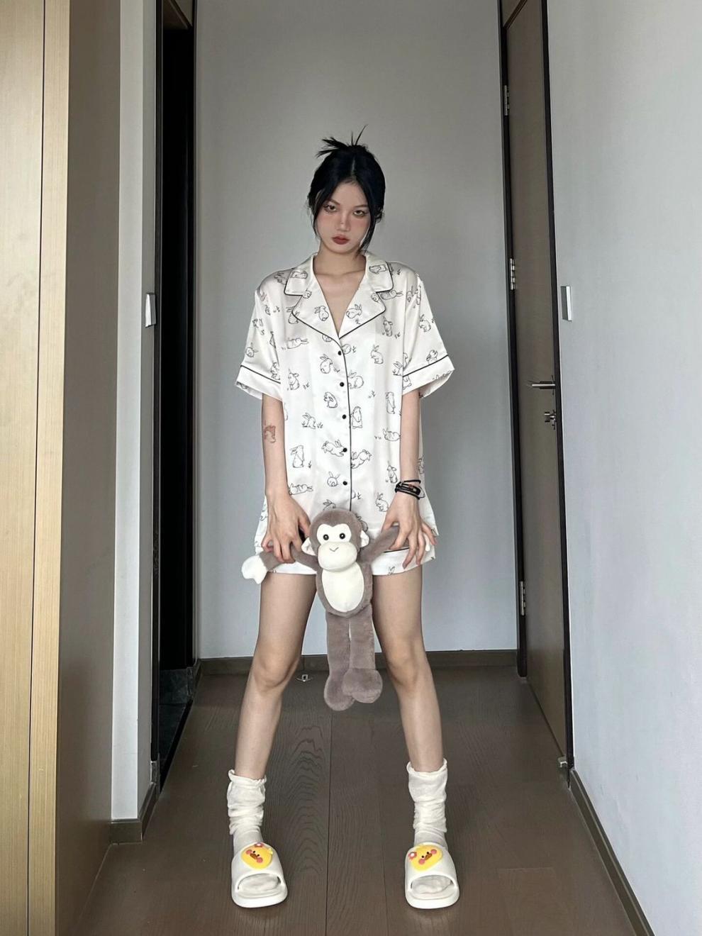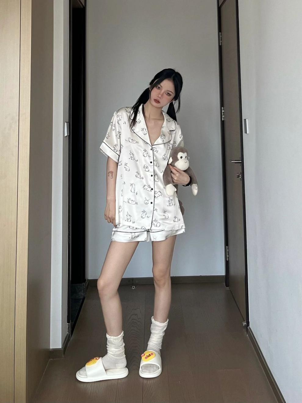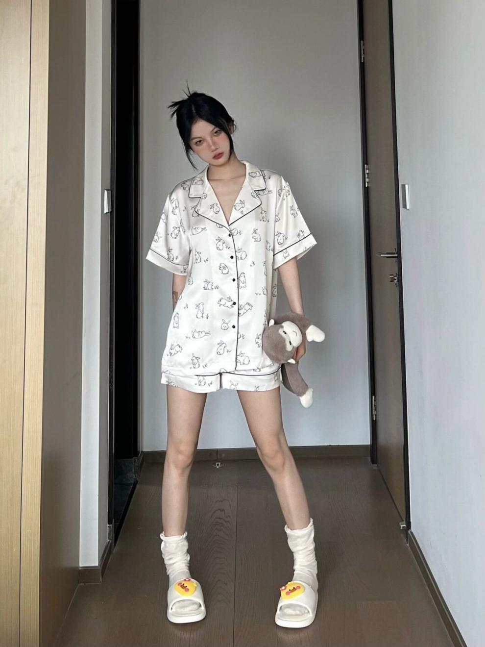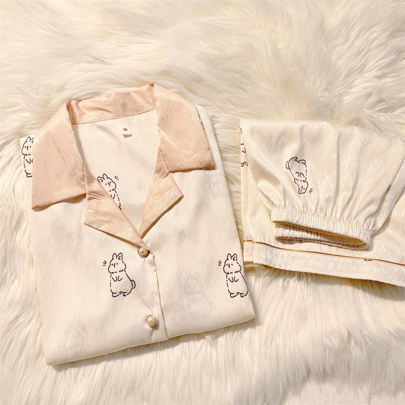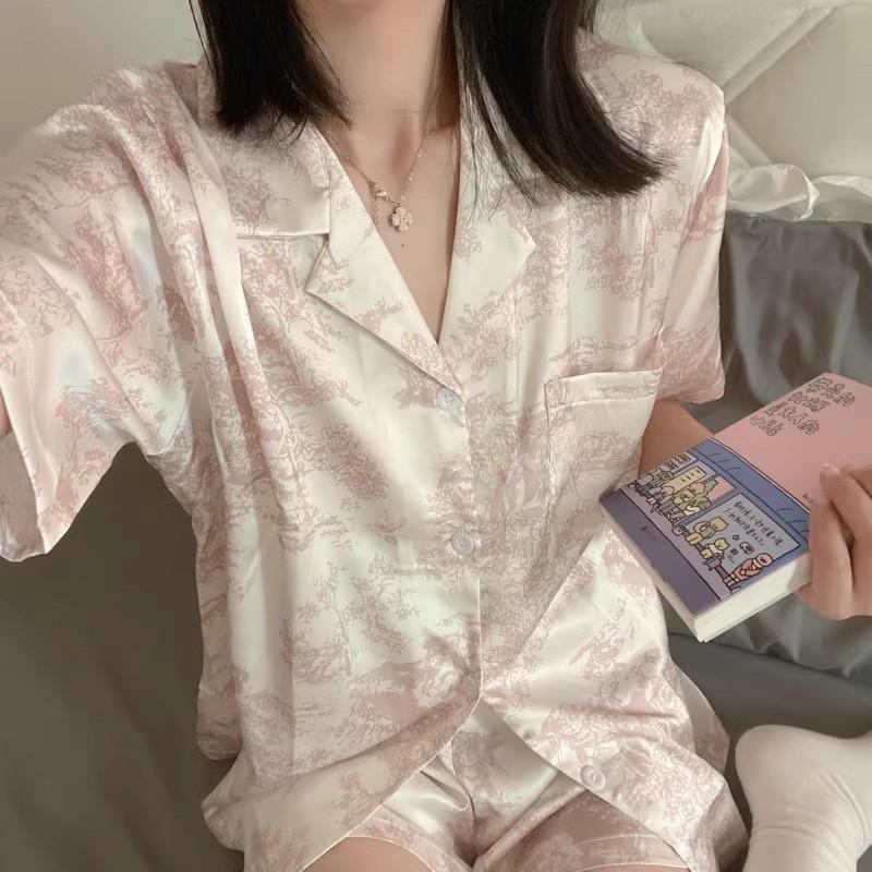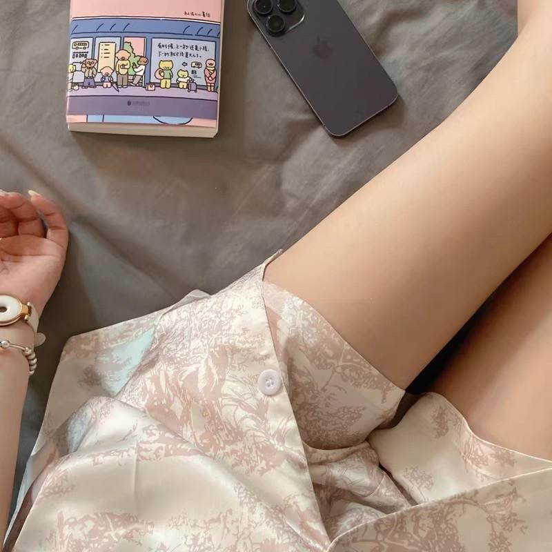 Compra Pijama Fresco de Seda de Hielo para Mujer Verano Nuevo Manga Corta Encaje Delgada Seda Ropa de Verano para Usar en Casa Set al por mayor en Joom.pro