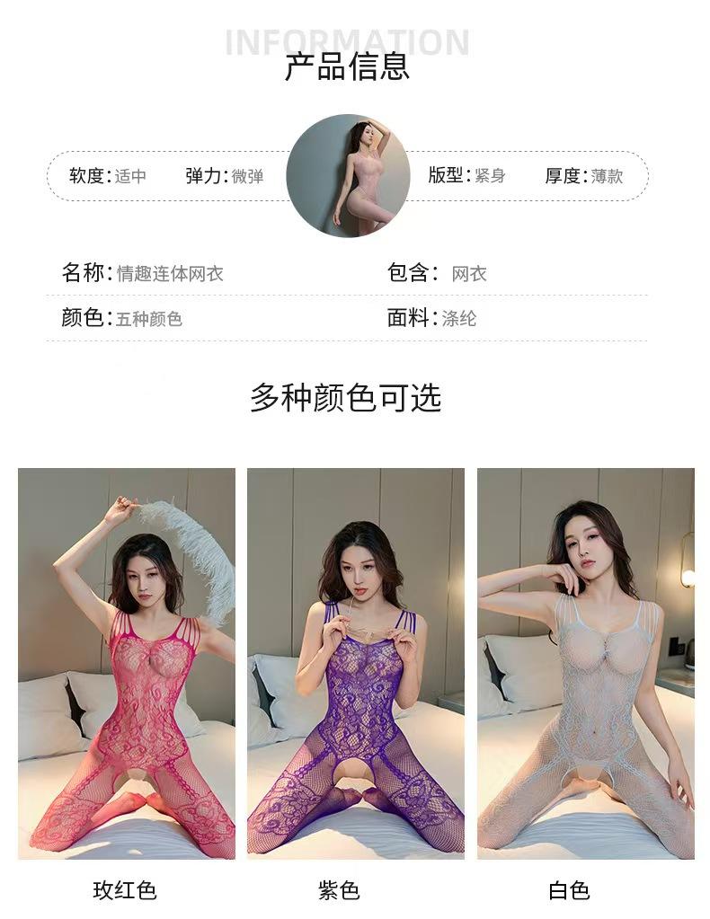 Lencería Sexy Tirantes para Mujer Deseo Puro Ropa de Malla Enteriza Hueca Medias Abiertas de Cuerpo Completo Fabricante Dropshipping