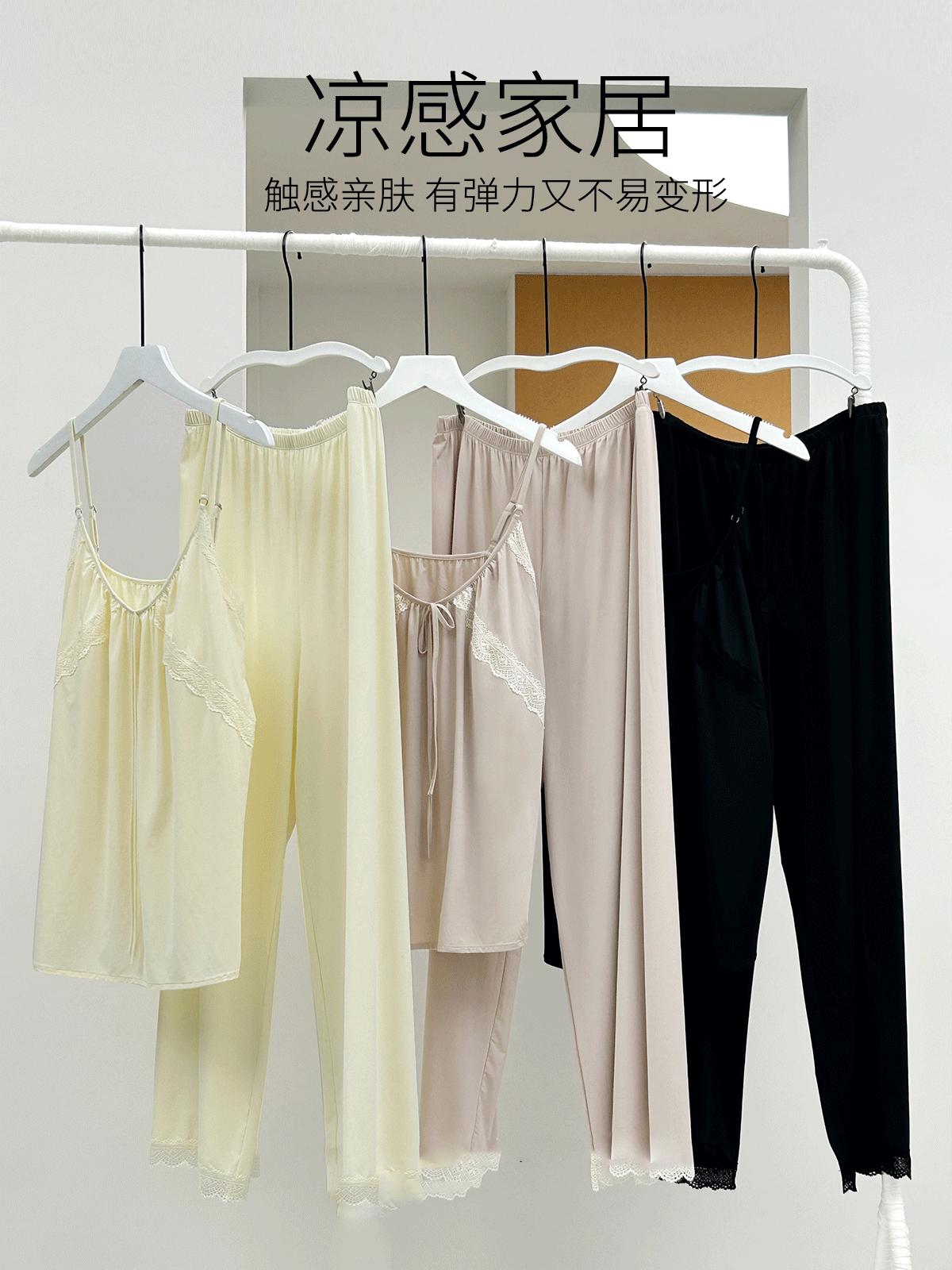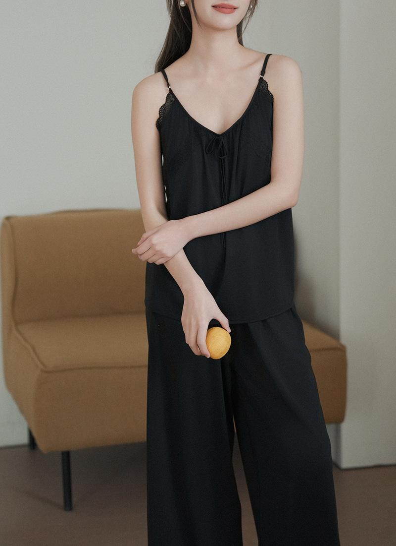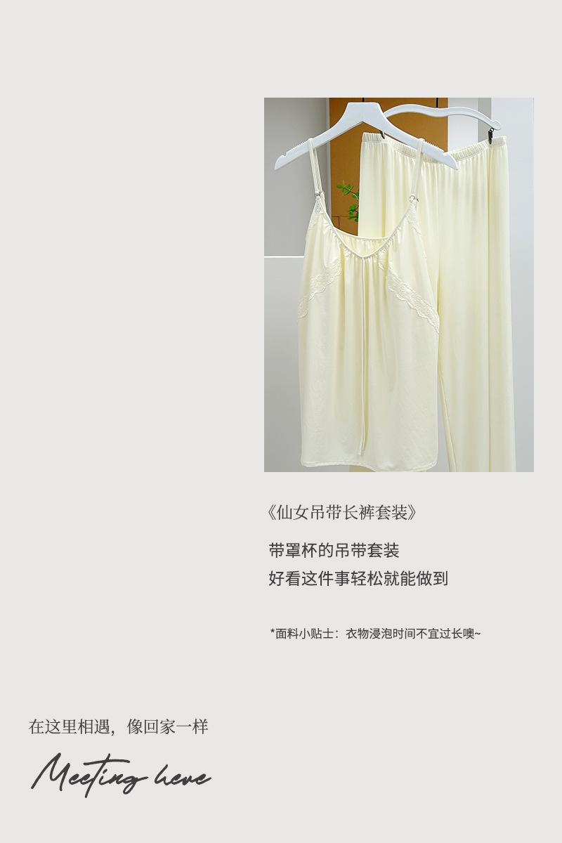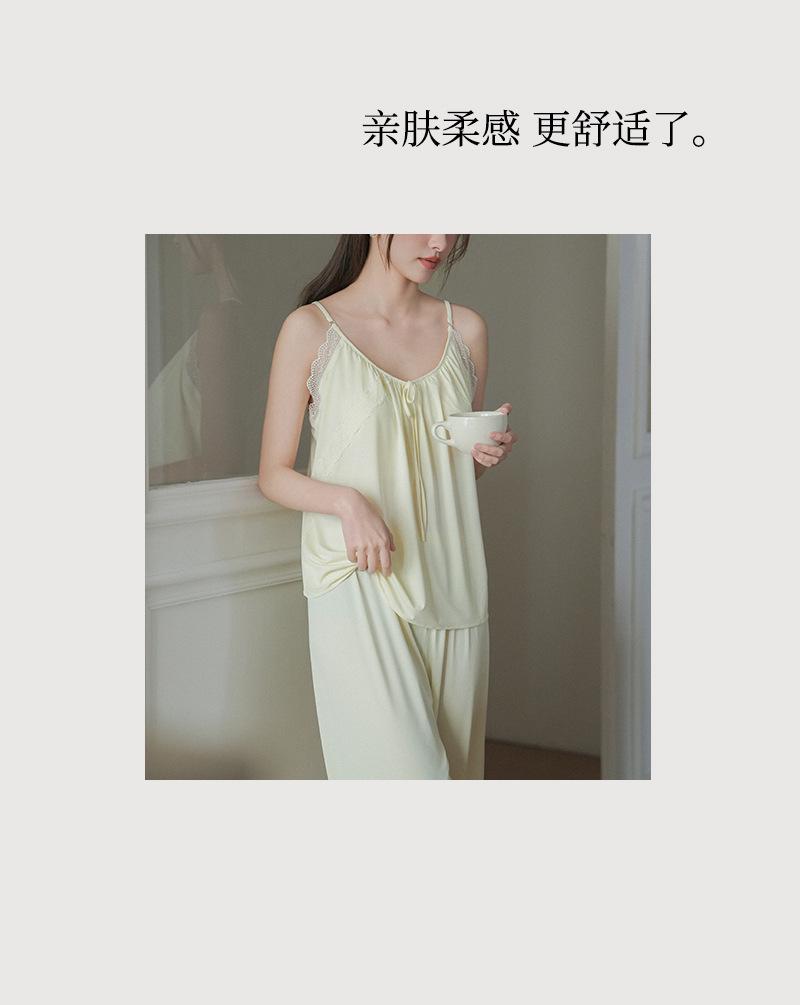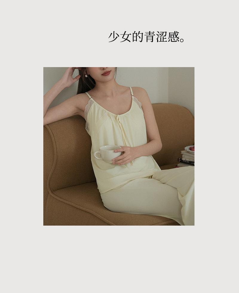 Pantalones finos de verano con tirantes Pijama para mujer Encaje Top holgado con almohadilla en el pecho Traje de ropa para el hogar para mujer