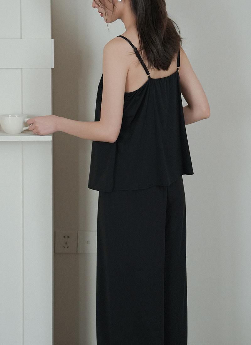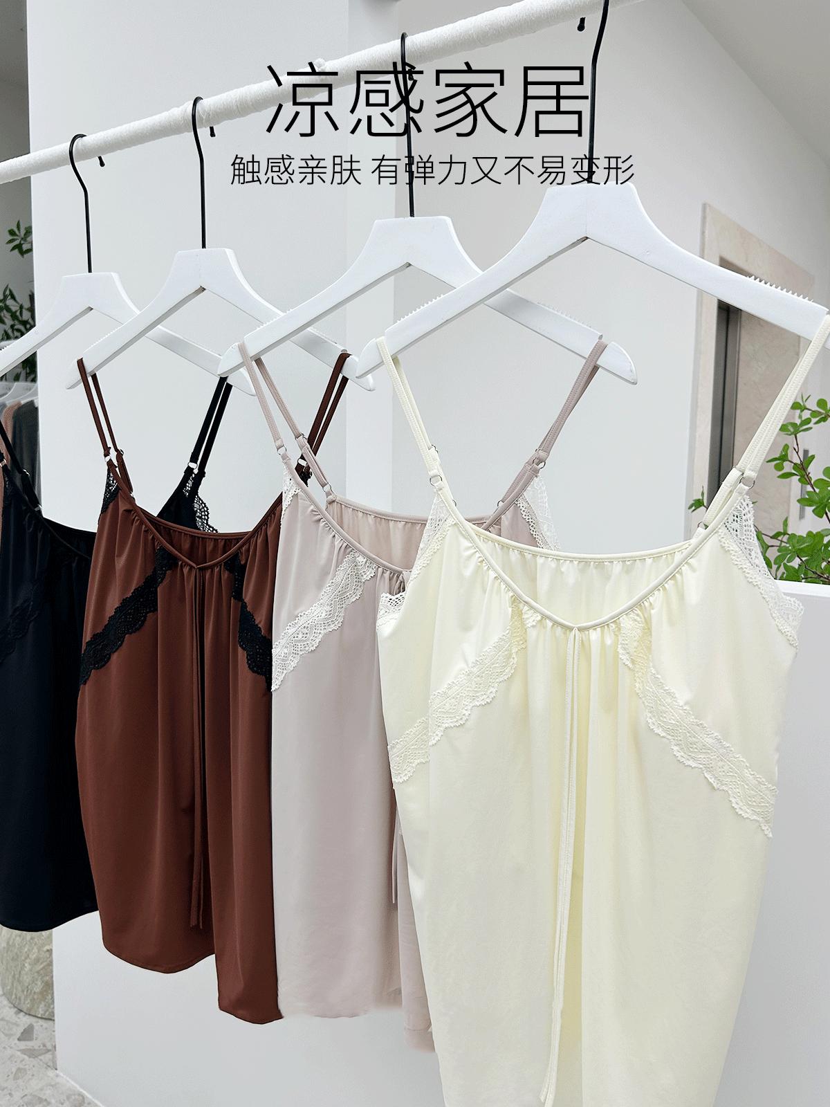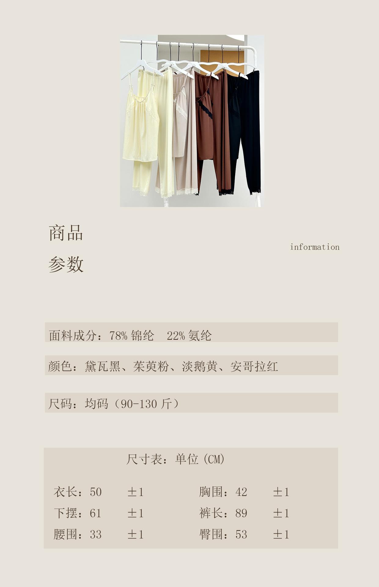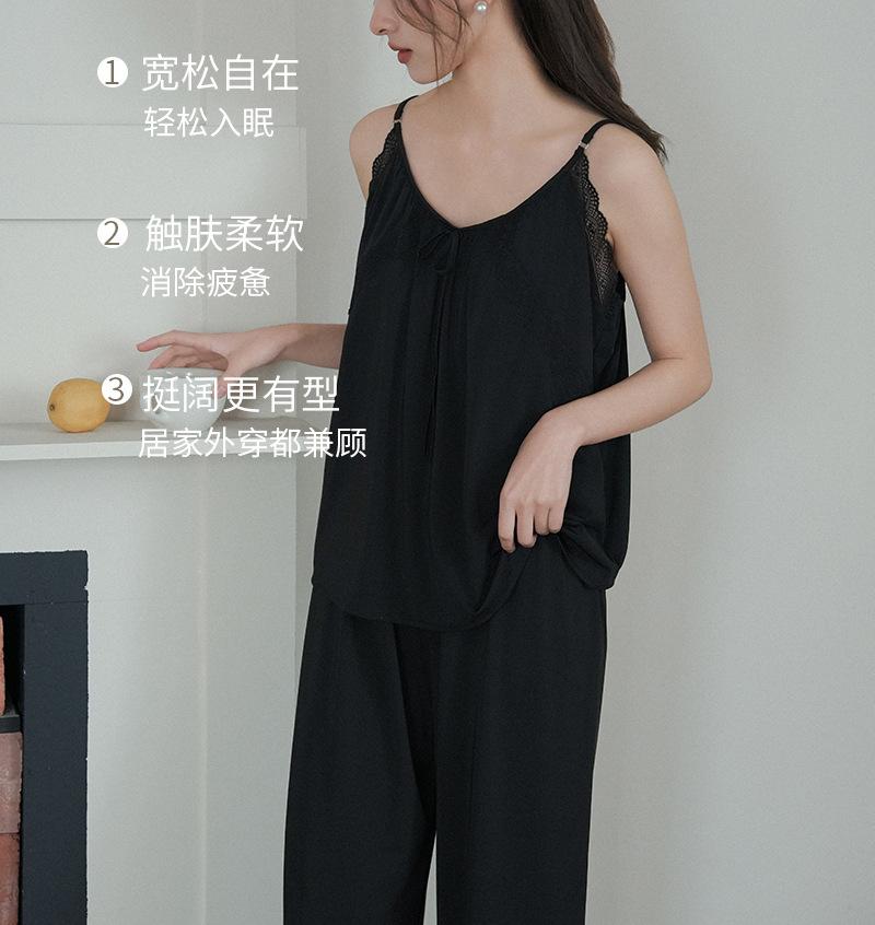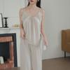 Pantalones finos de verano con tirantes Pijama para mujer Encaje Top holgado con almohadilla en el pecho Traje de ropa para el hogar para mujer