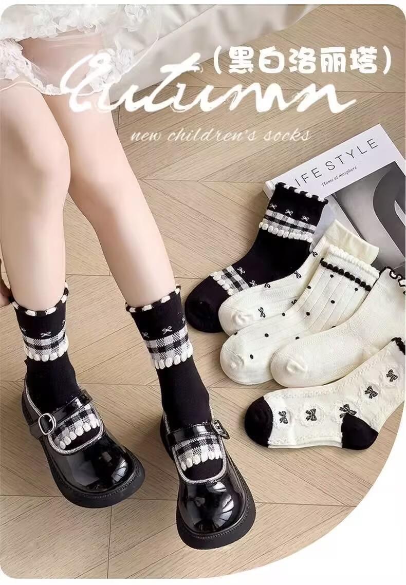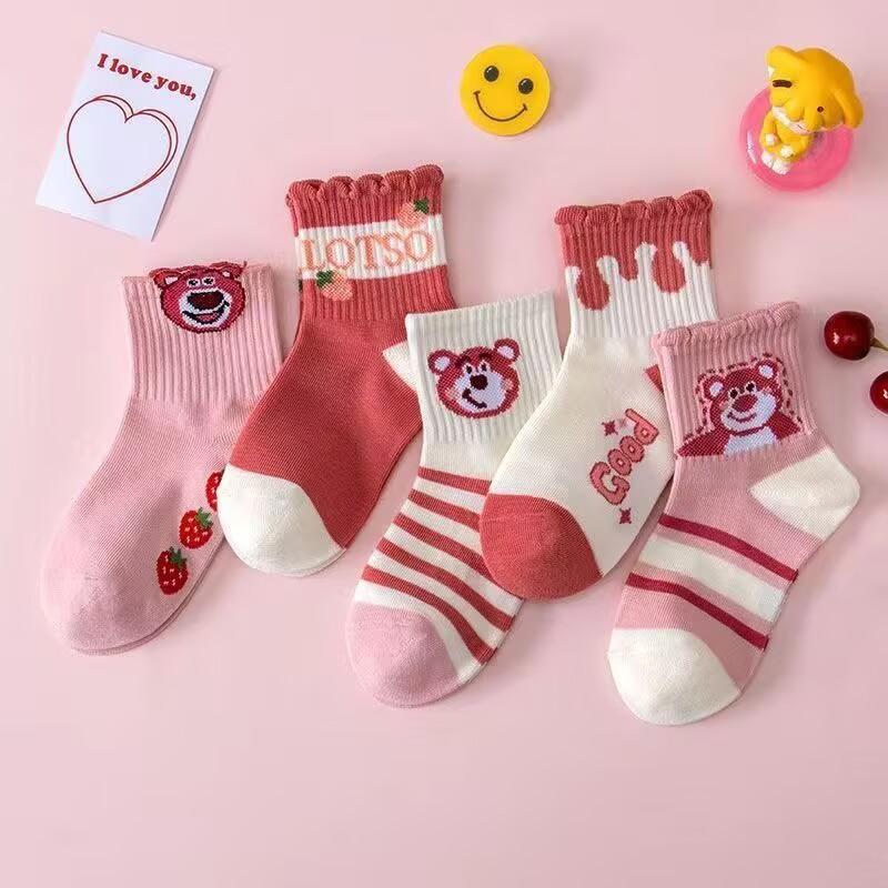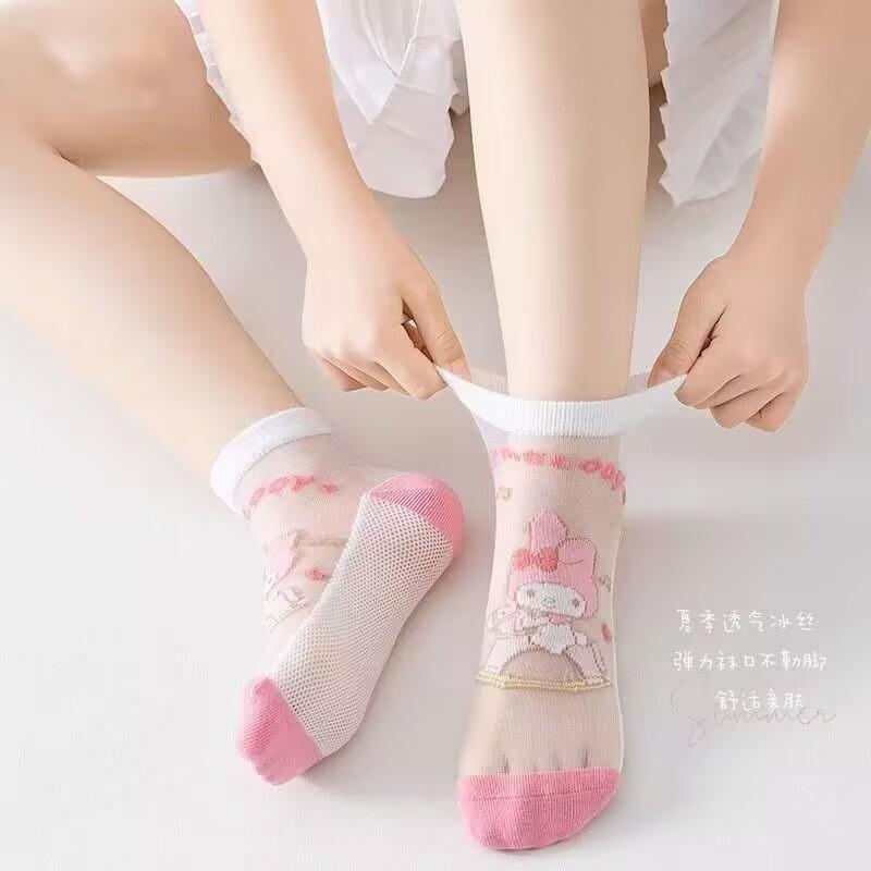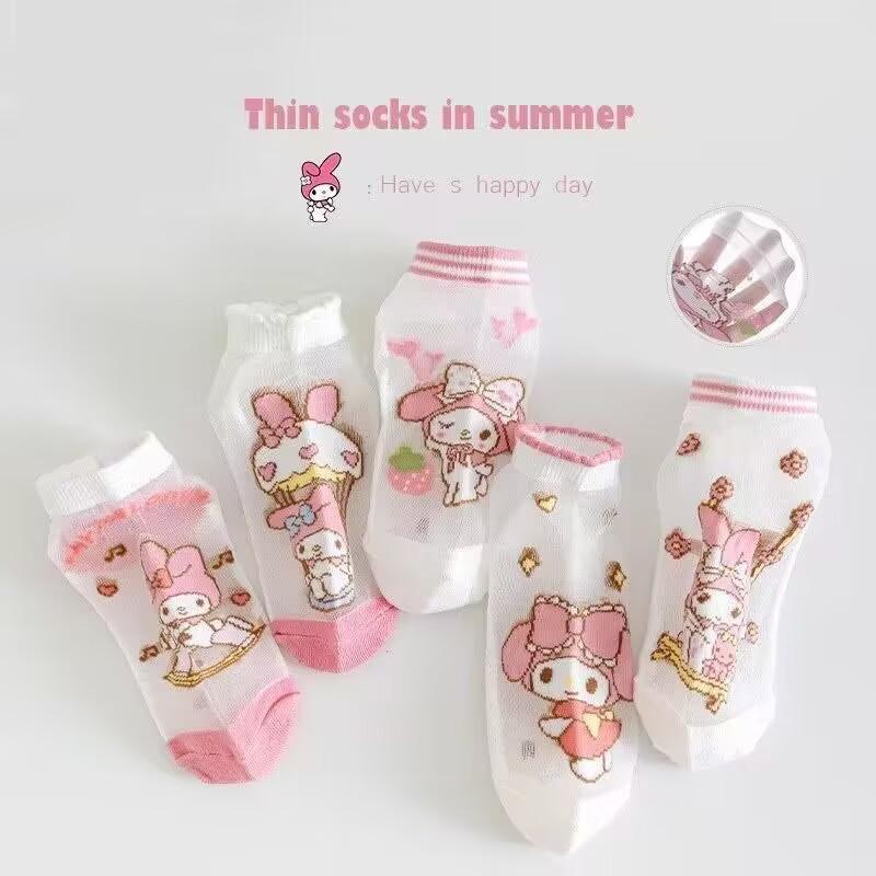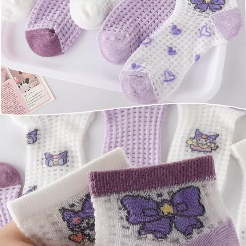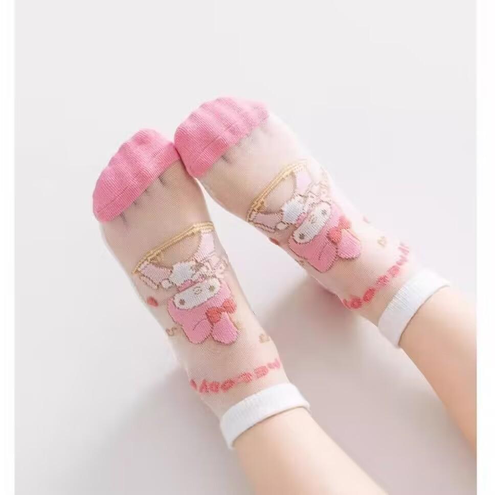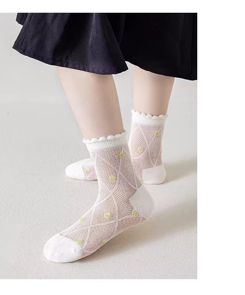 Calcetines de niña verano calcetines de malla fina calcetines de niño primavera y otoño lindos de dibujos animados bebé estudiante calcetines de tubo de encaje