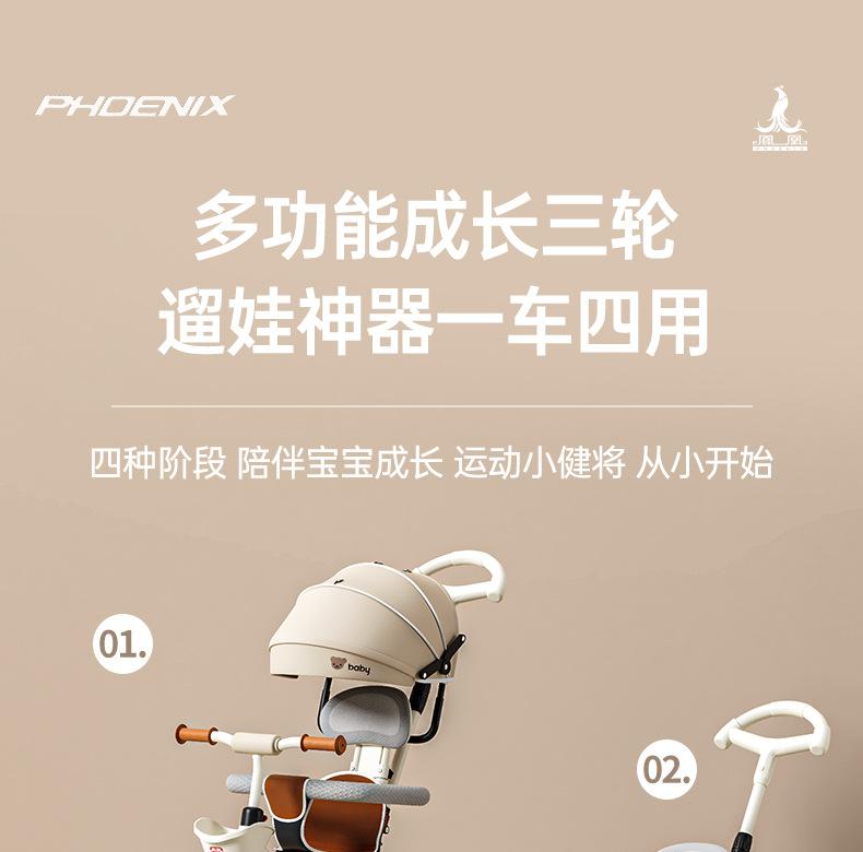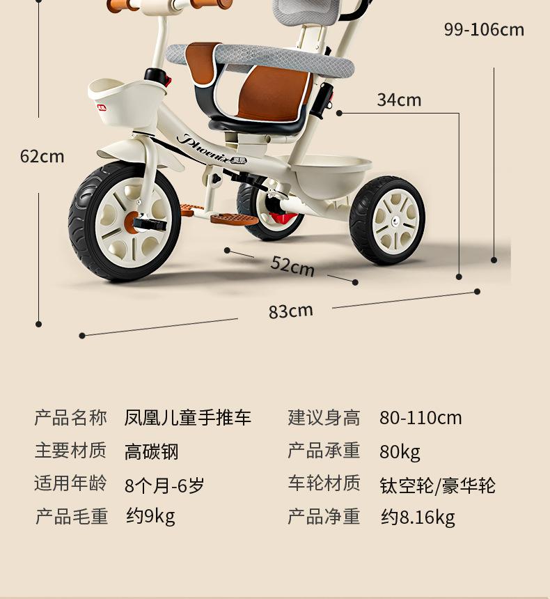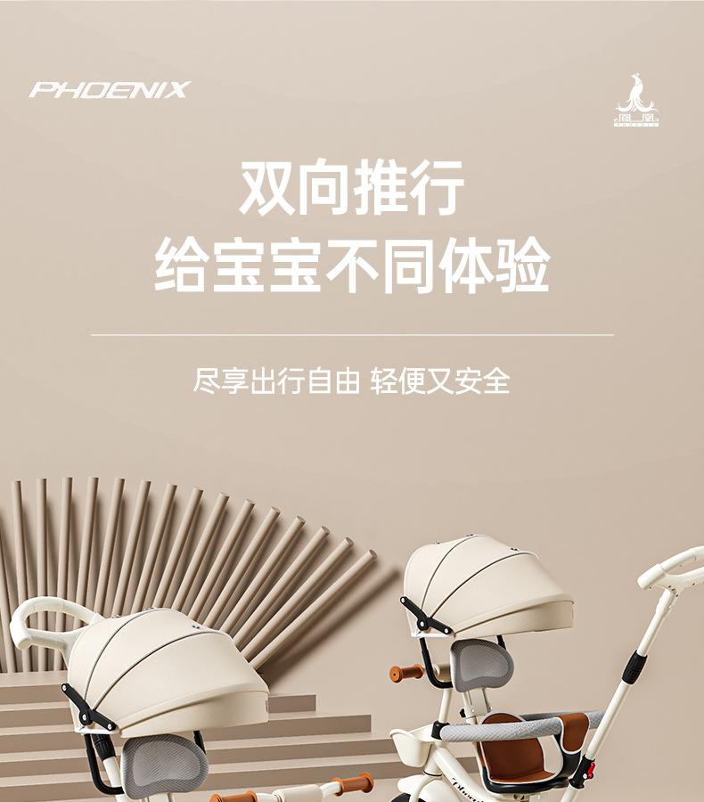 Triciclo infantil Phoenix cochecito grande para bebé 1-3-6 años 2 bicicleta ligera bicicleta para caminar para bebé