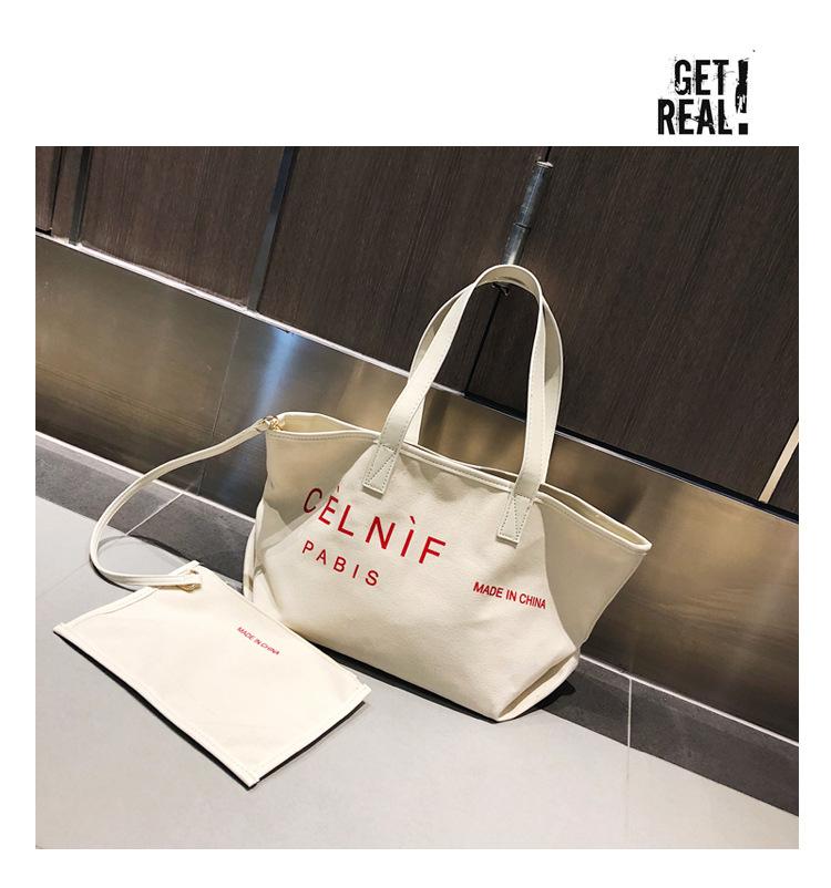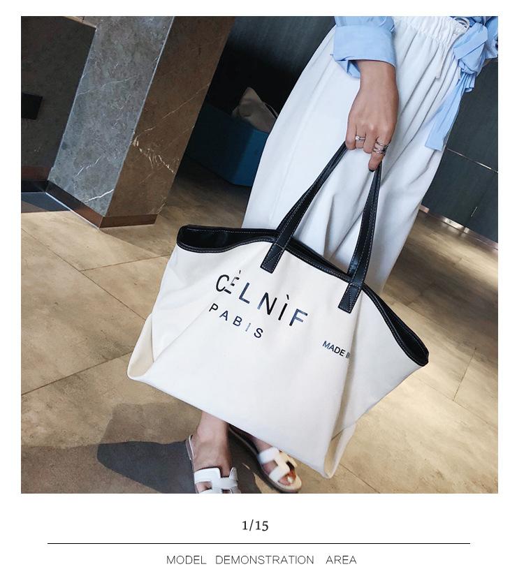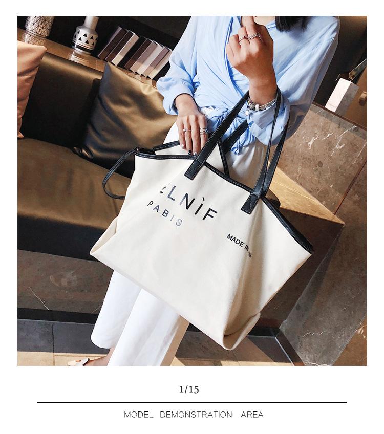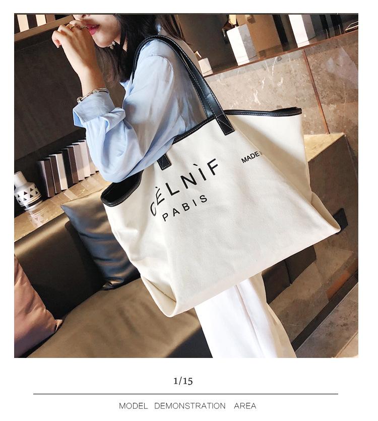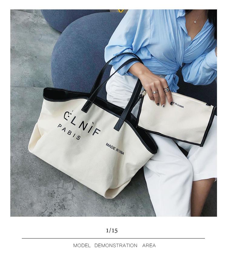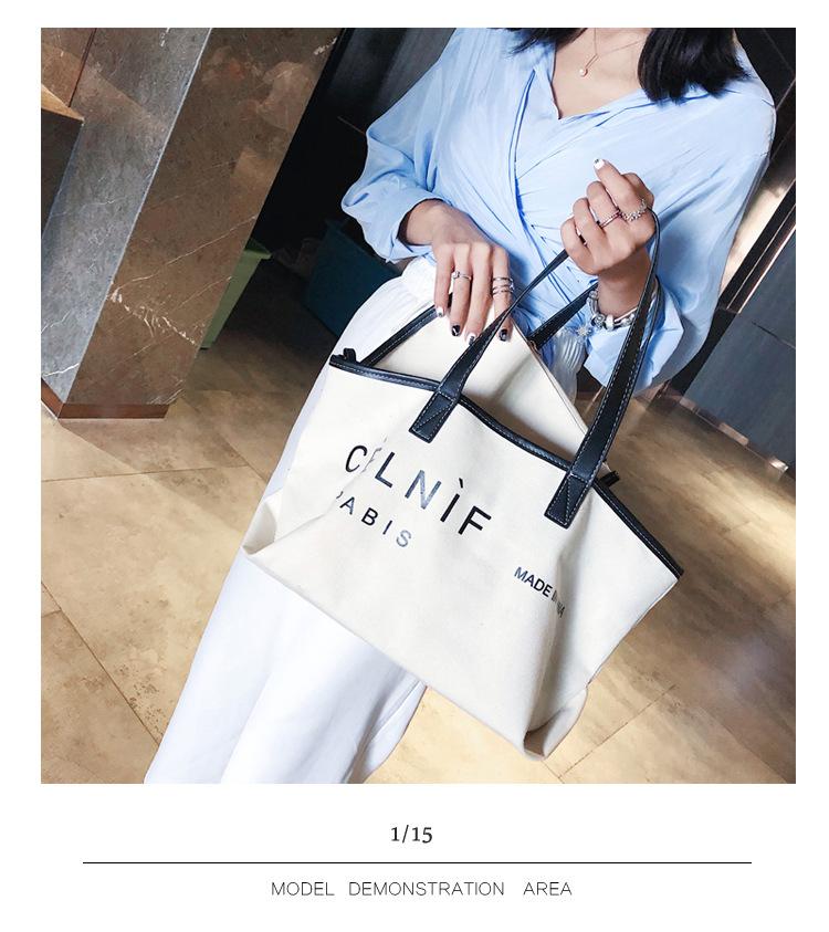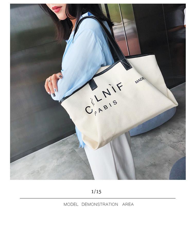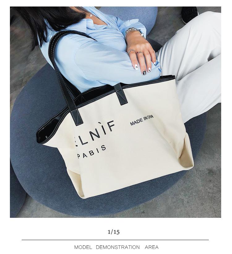 Nueva bolsa de lona bolsa grande Bolso de hombro de moda europea y americana para mujer Bolso de lona estilo celebridad de Internet Bolso de mano de moda ins