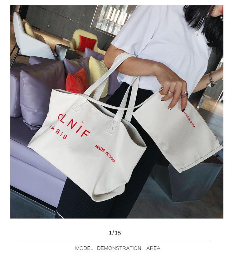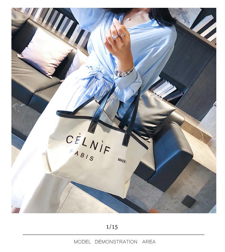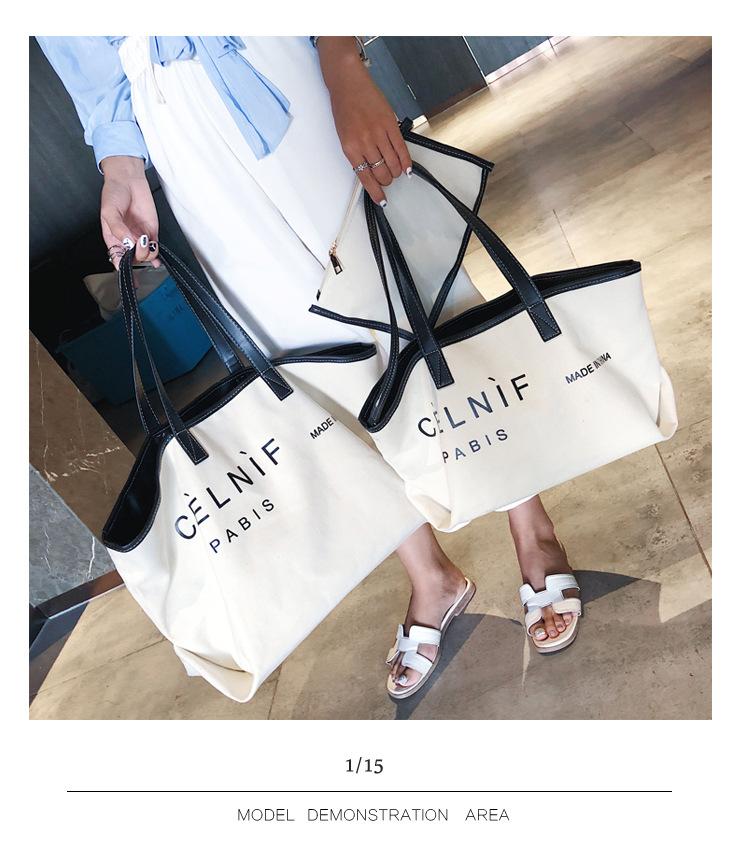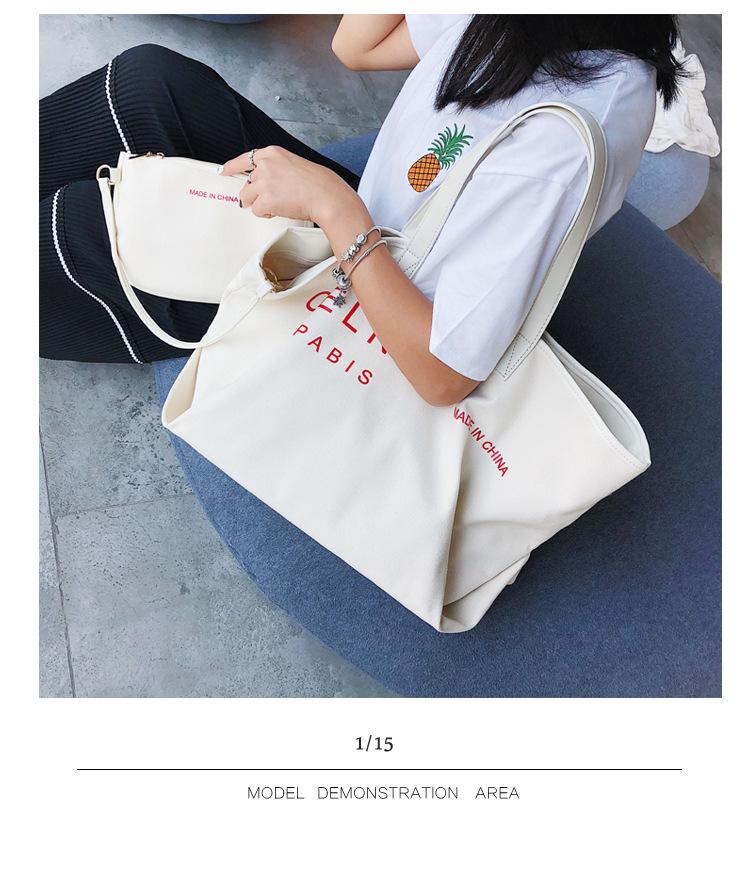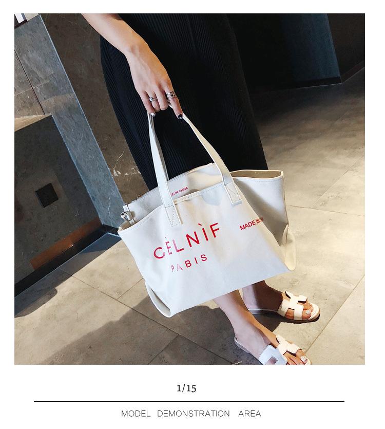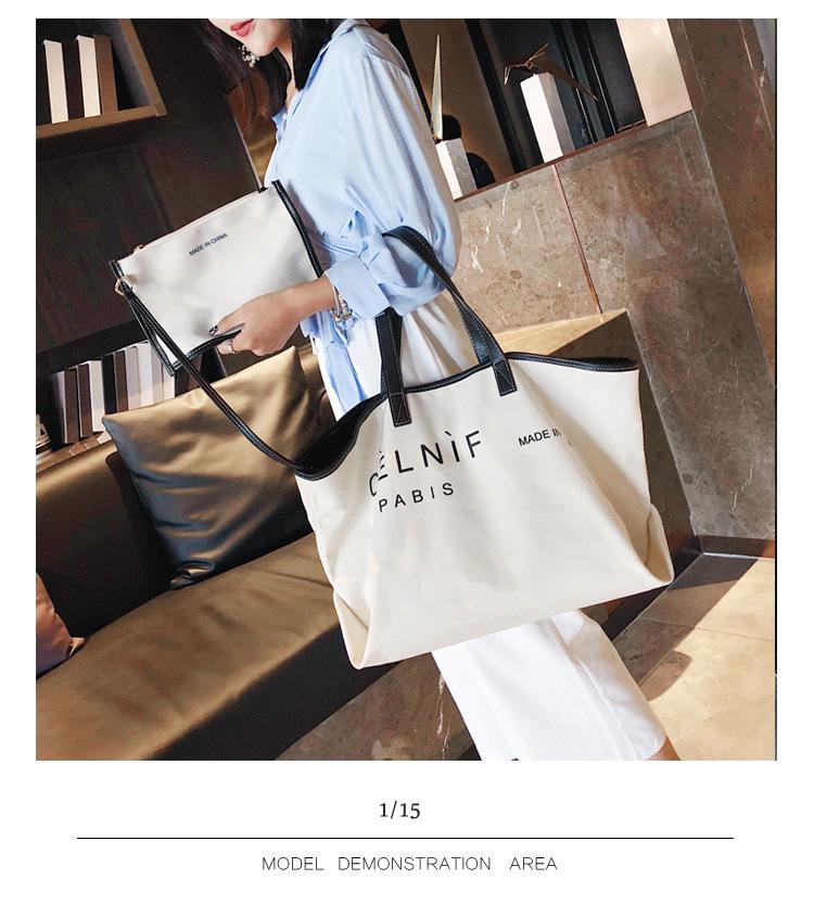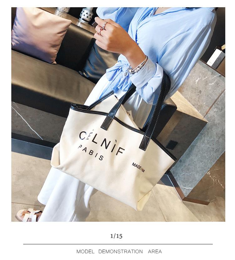 Nueva bolsa de lona bolsa grande Bolso de hombro de moda europea y americana para mujer Bolso de lona estilo celebridad de Internet Bolso de mano de moda ins