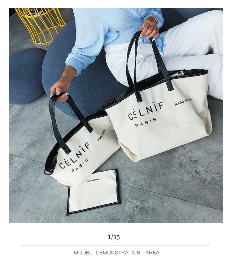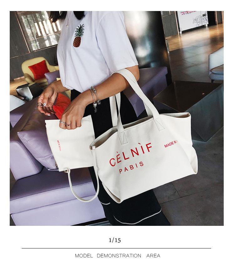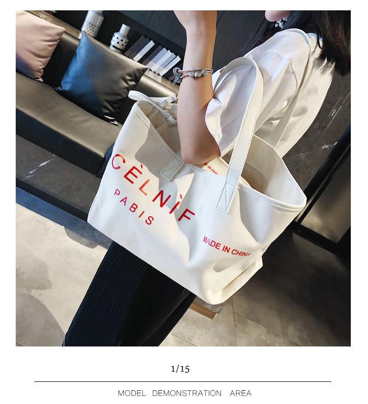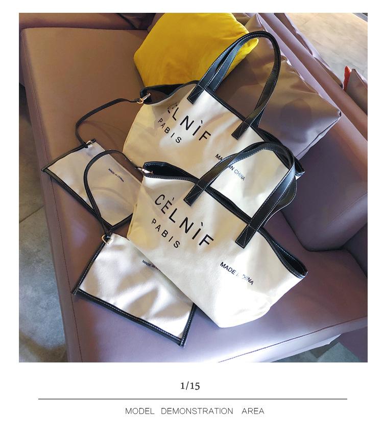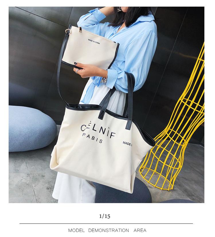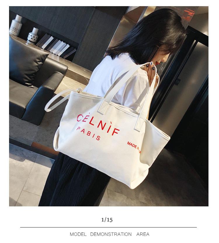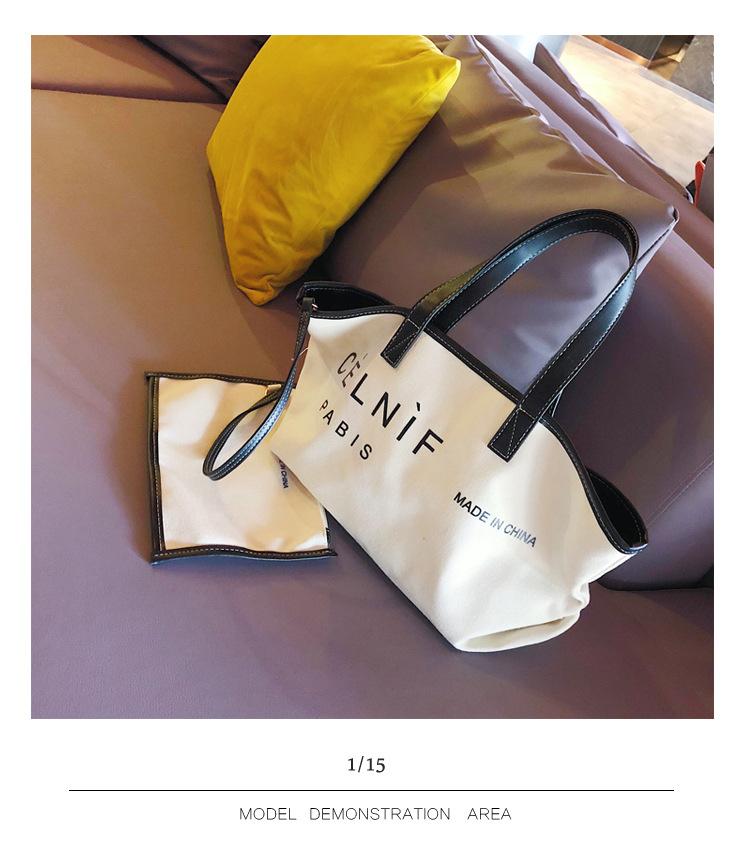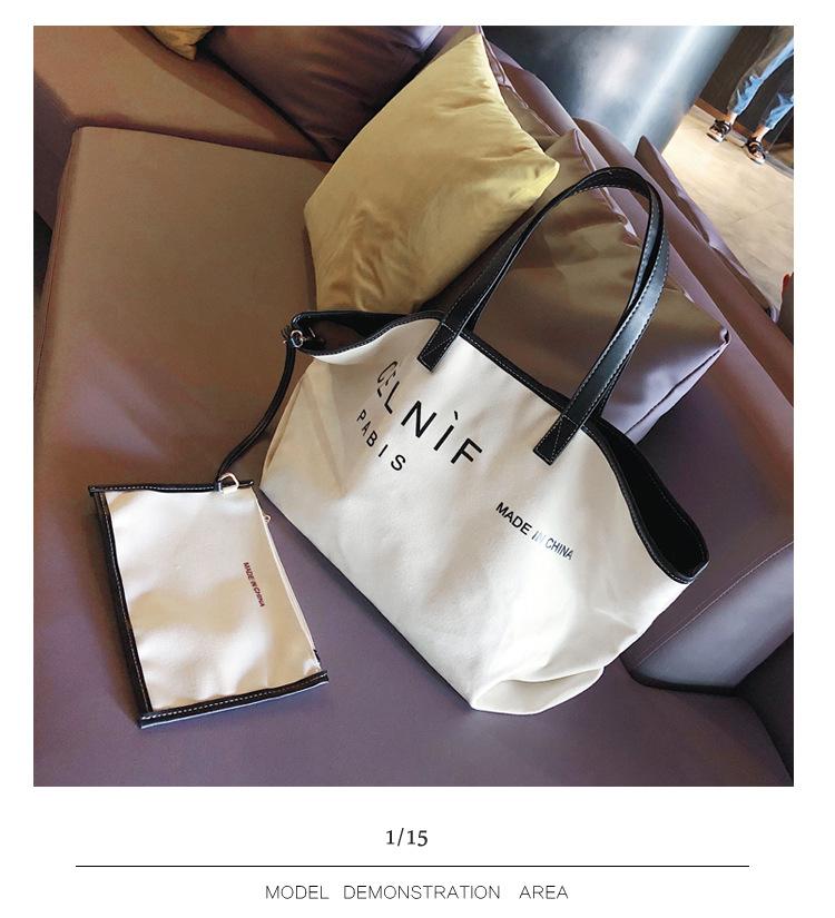 Nueva bolsa de lona bolsa grande Bolso de hombro de moda europea y americana para mujer Bolso de lona estilo celebridad de Internet Bolso de mano de moda ins