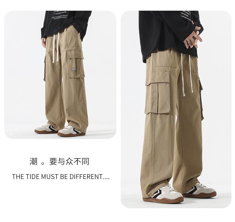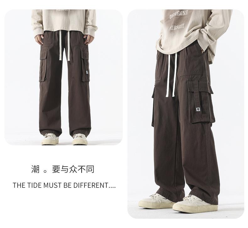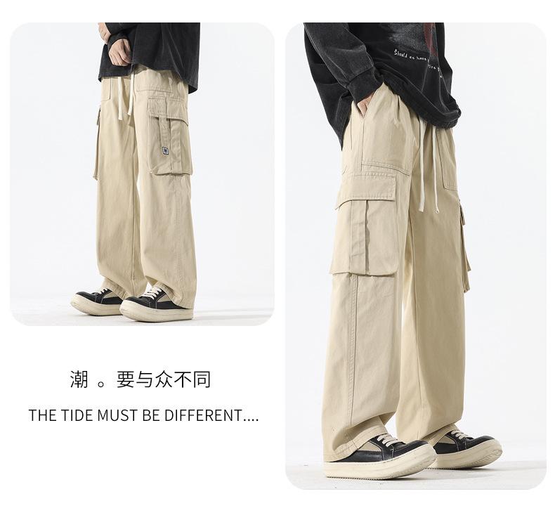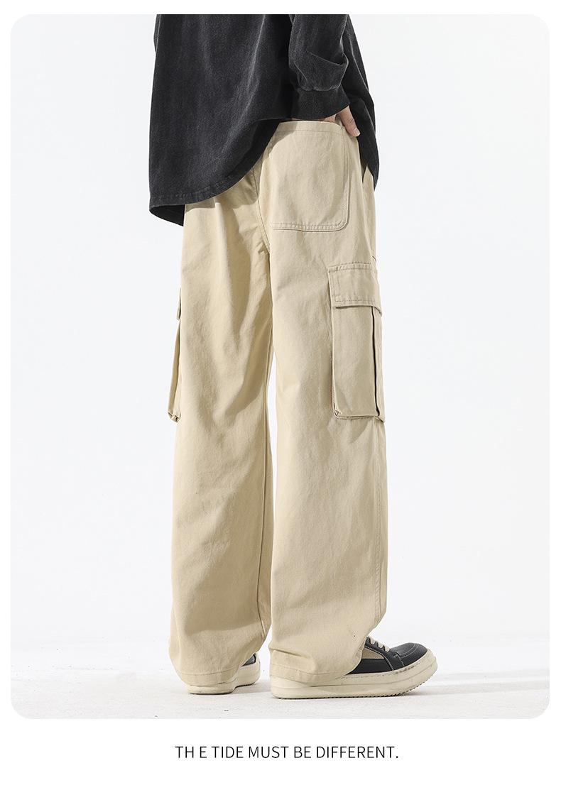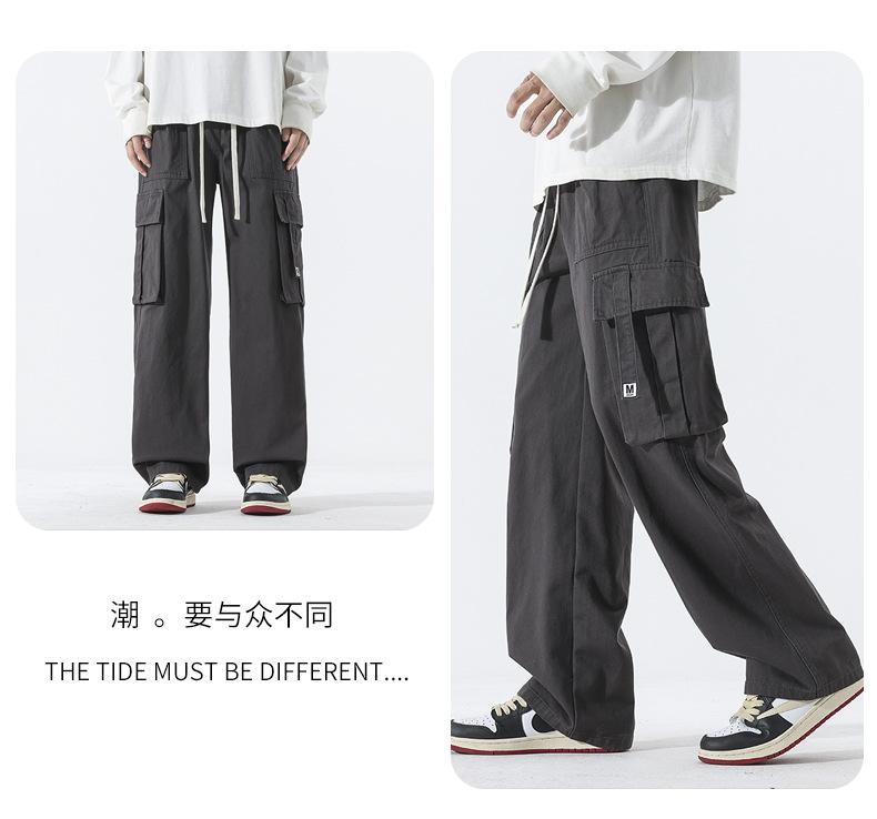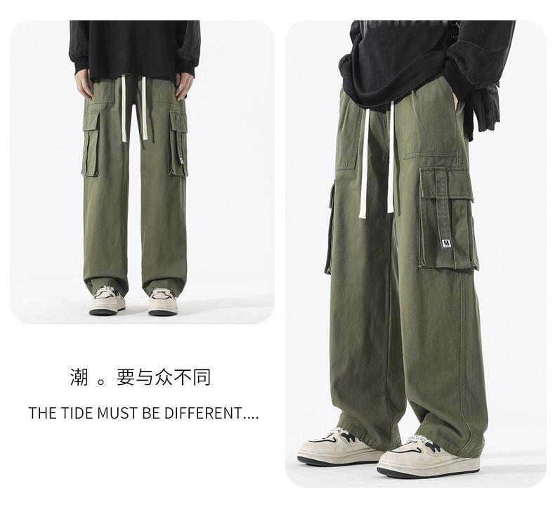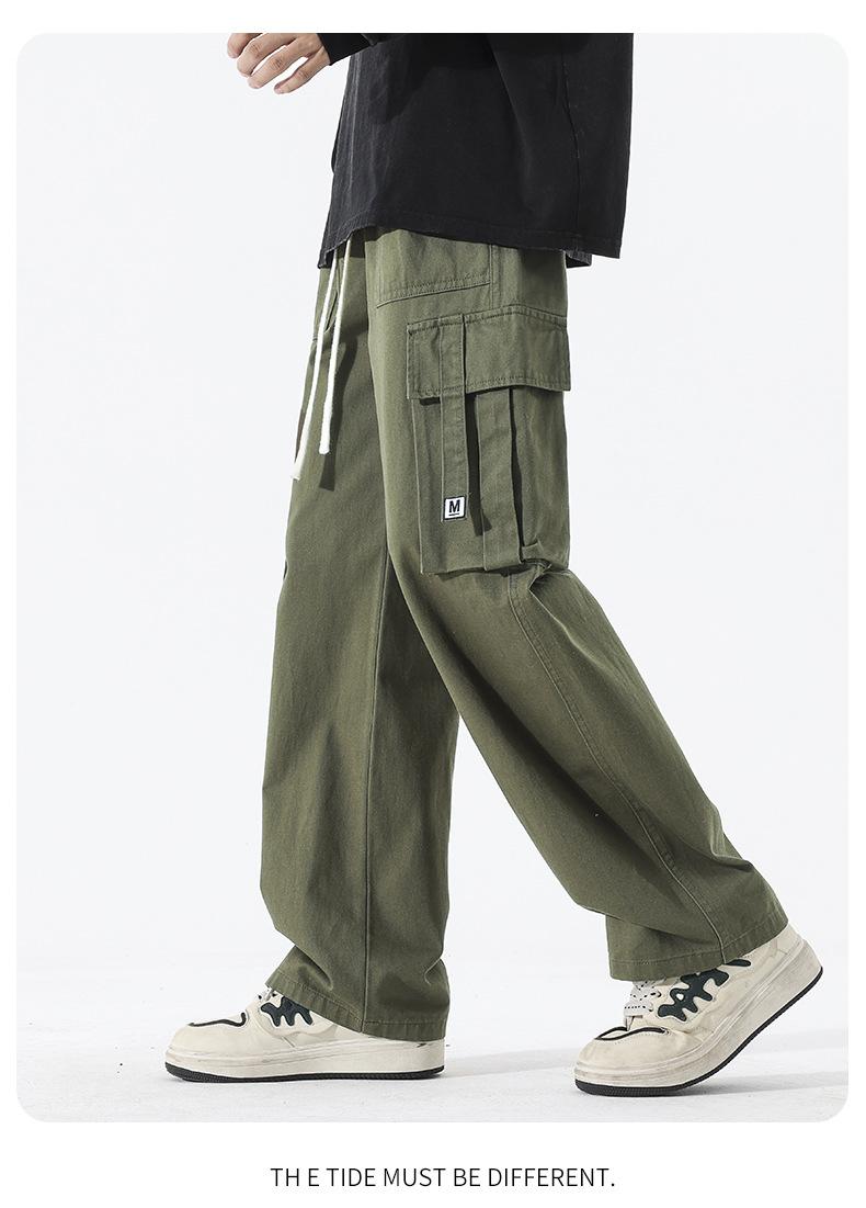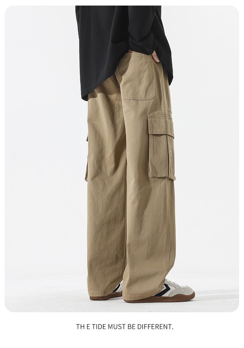 Compra Pantalones casuales de algodón puro American High Street para hombre, pantalones cargo rectos sueltos de marca moderna delgada para primavera y verano, pantalones largos versátiles de pierna ancha al por mayor en Joom.pro