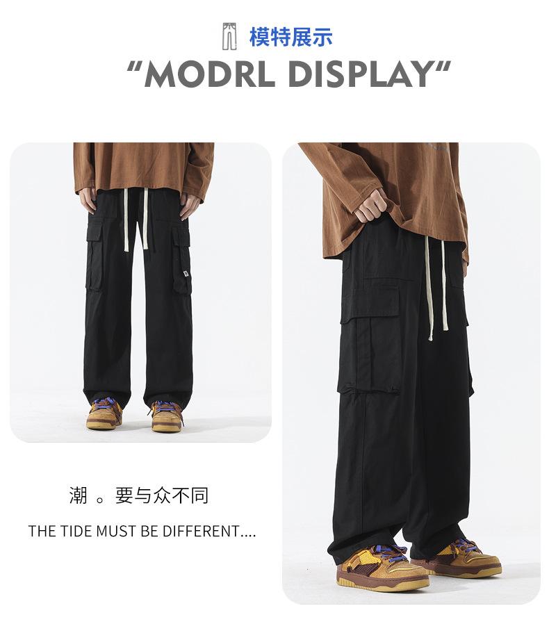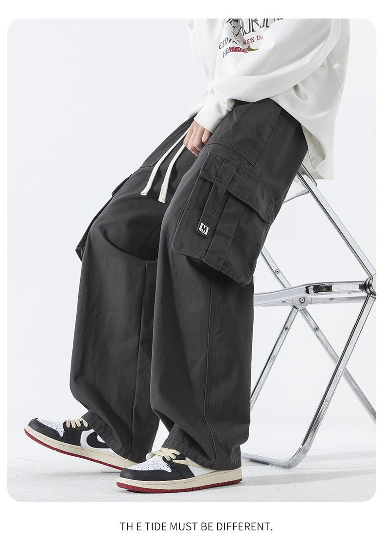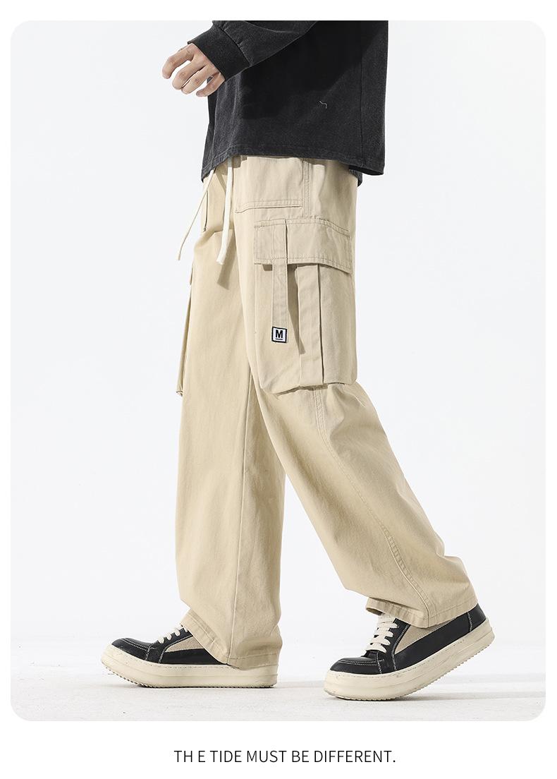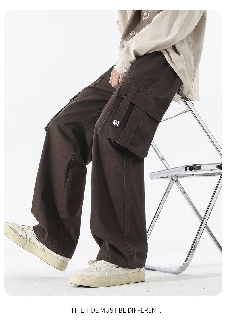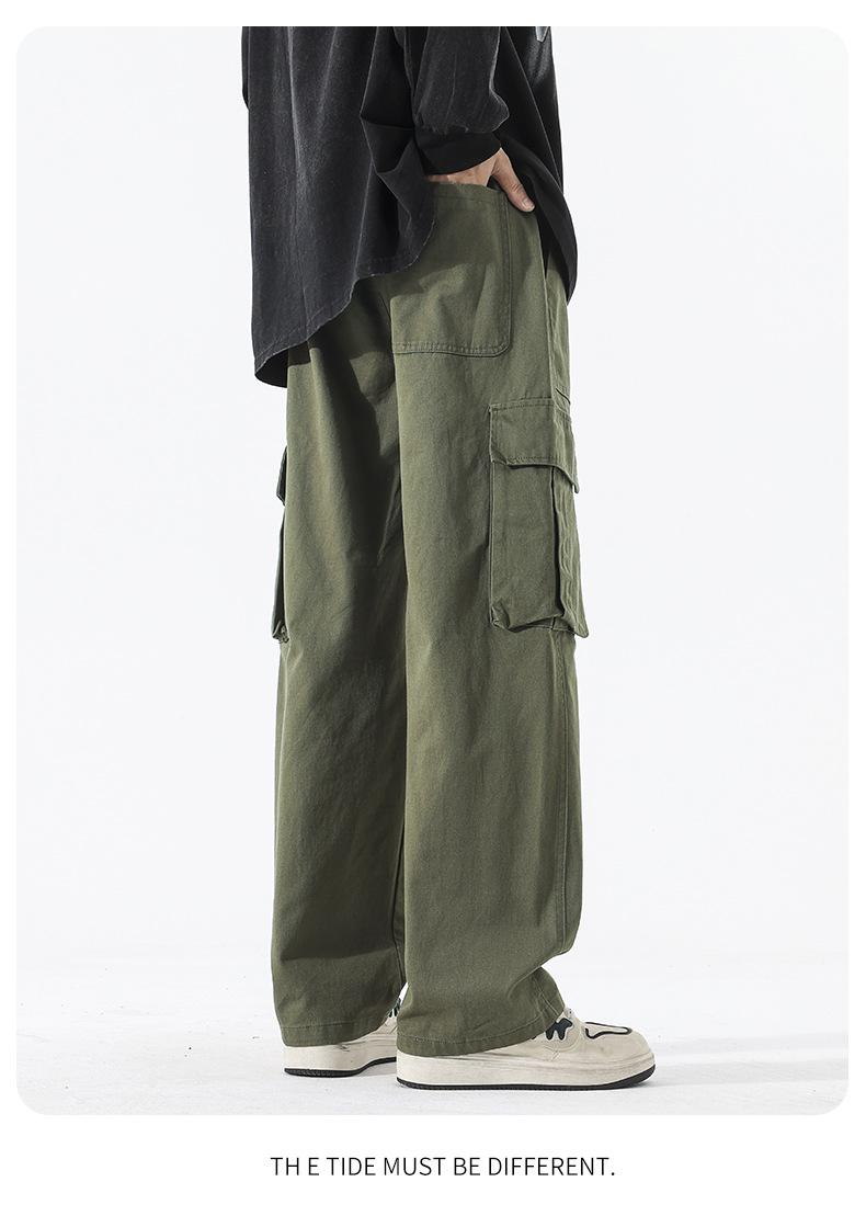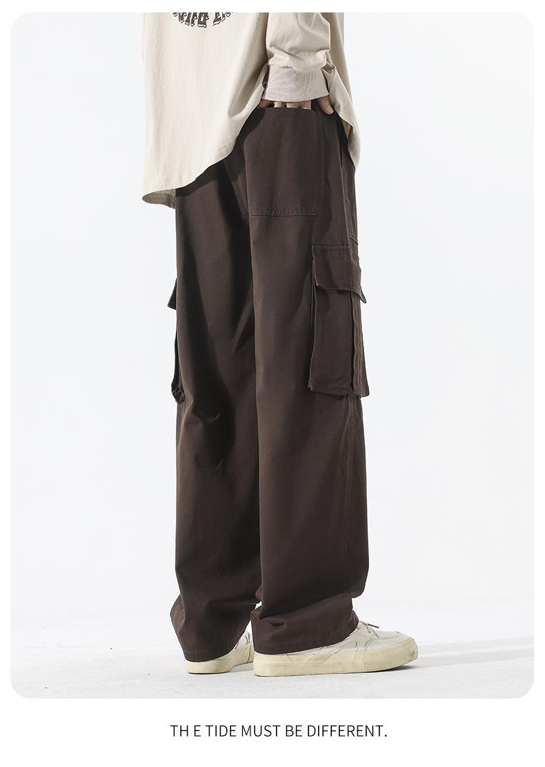 Compra Pantalones casuales de algodón puro American High Street para hombre, pantalones cargo rectos sueltos de marca moderna delgada para primavera y verano, pantalones largos versátiles de pierna ancha al por mayor en Joom.pro