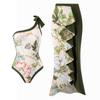 | Traje de baño de una pieza sexy europeo y americano de 2025, con estampado a juego de colores, falda de poliéster de dos piezas, muy vendido, estilo atractivo |