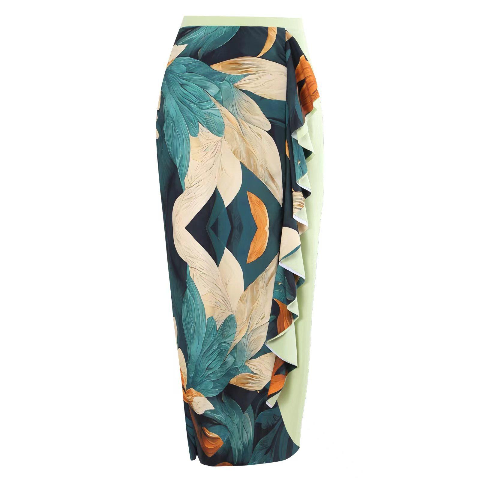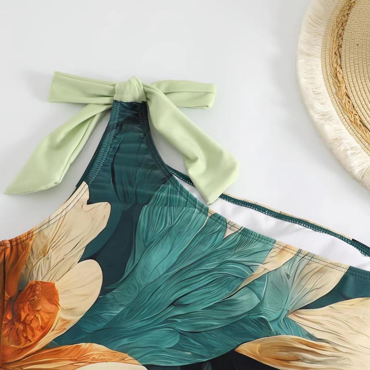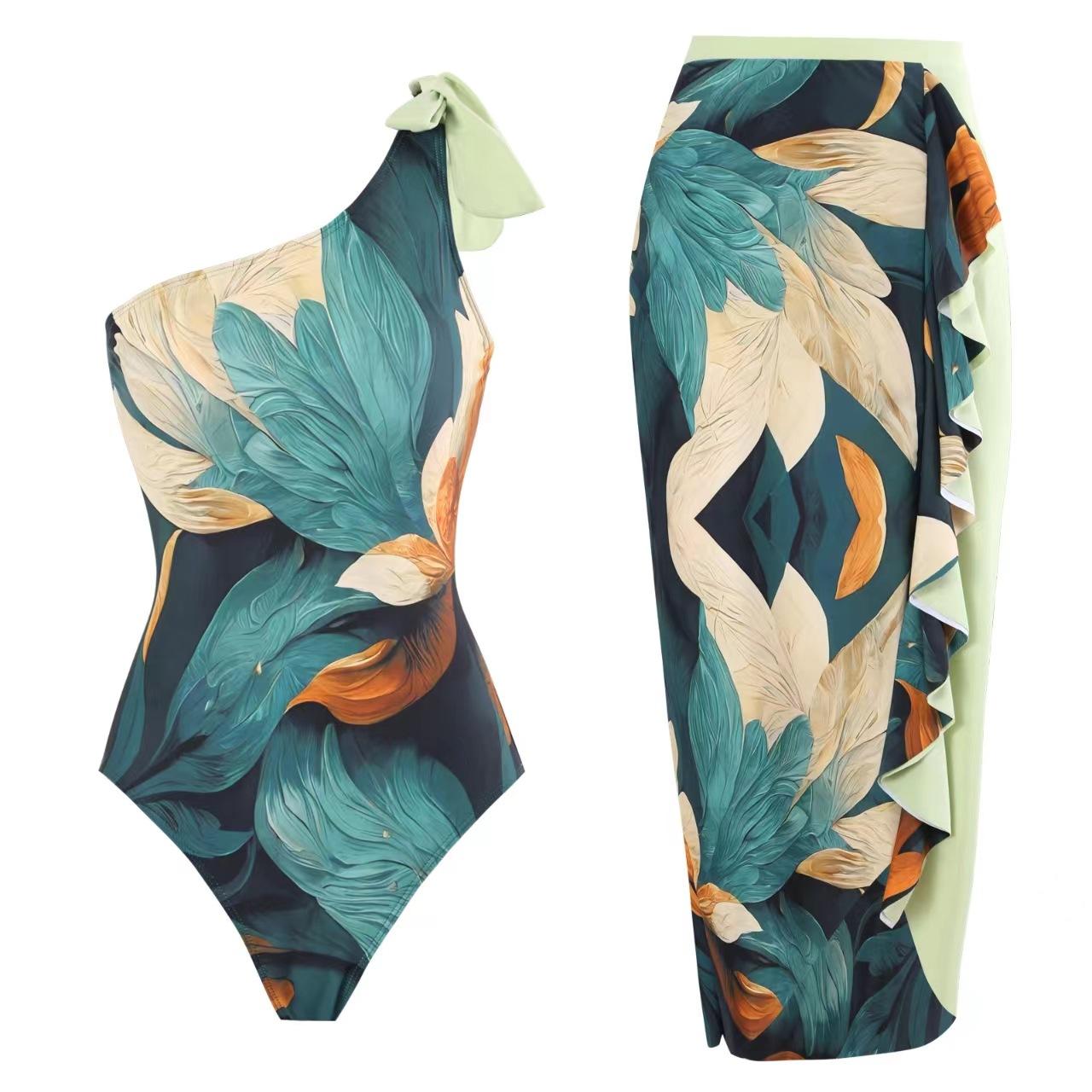 | Traje de baño de una pieza con estampado europeo y americano nuevo de 2025, traje de baño de moda para mujer, traje de baño con falda de gasa, traje de baño de venta caliente, estilo popular |