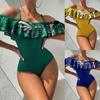 | Traje de baño de una pieza sexy europeo y americano de 2025 para mujer, falda de malla de dos piezas con volantes, gran oferta. |