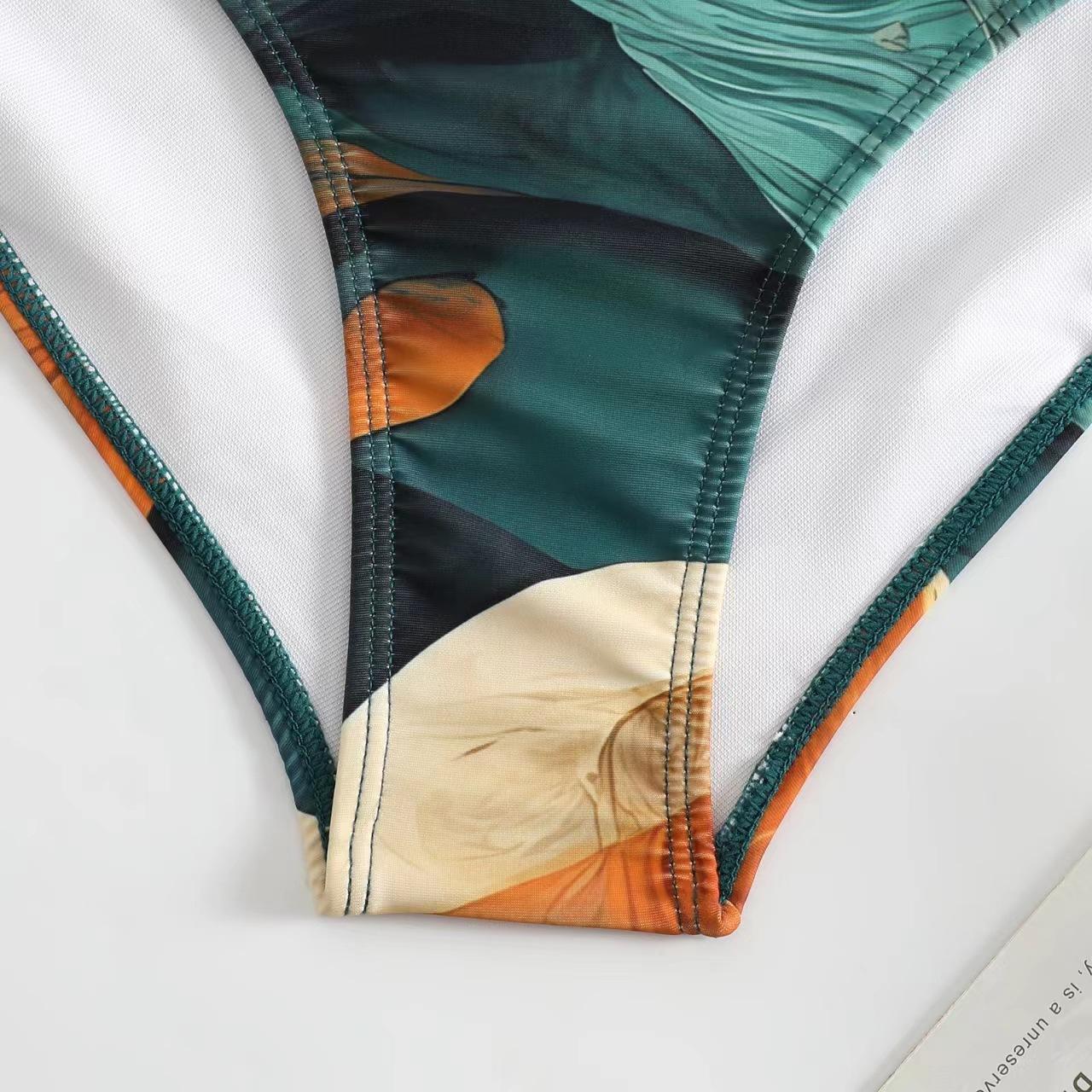 | Traje de baño de dos piezas con estampado retro europeo y americano, estilo francés, para mujer, estilo bikini de vacaciones transfronterizo, novedad de 2025 |
