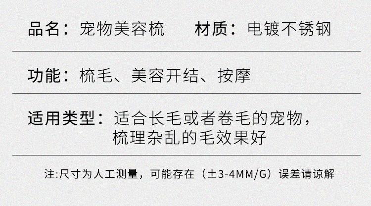 Peine de Acero Inoxidable al por Mayor del Fabricante Peine para Mascotas Peine de Belleza Cepillo para Perro Suministros para Mascotas Peine para Perro Peine para Teddy Golden Retriever