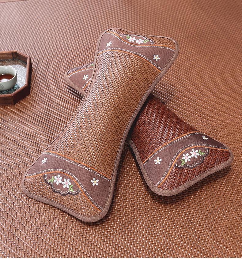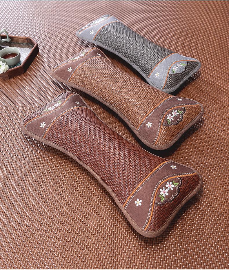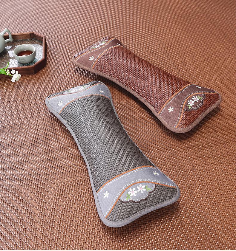 Gray four golden flowers cervical pillow [full buckwheat], Light brown four golden flowers cervical pillow [fu...