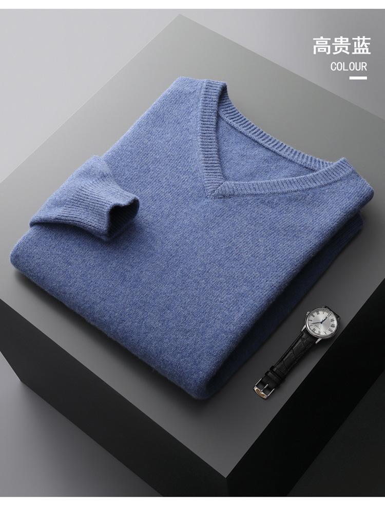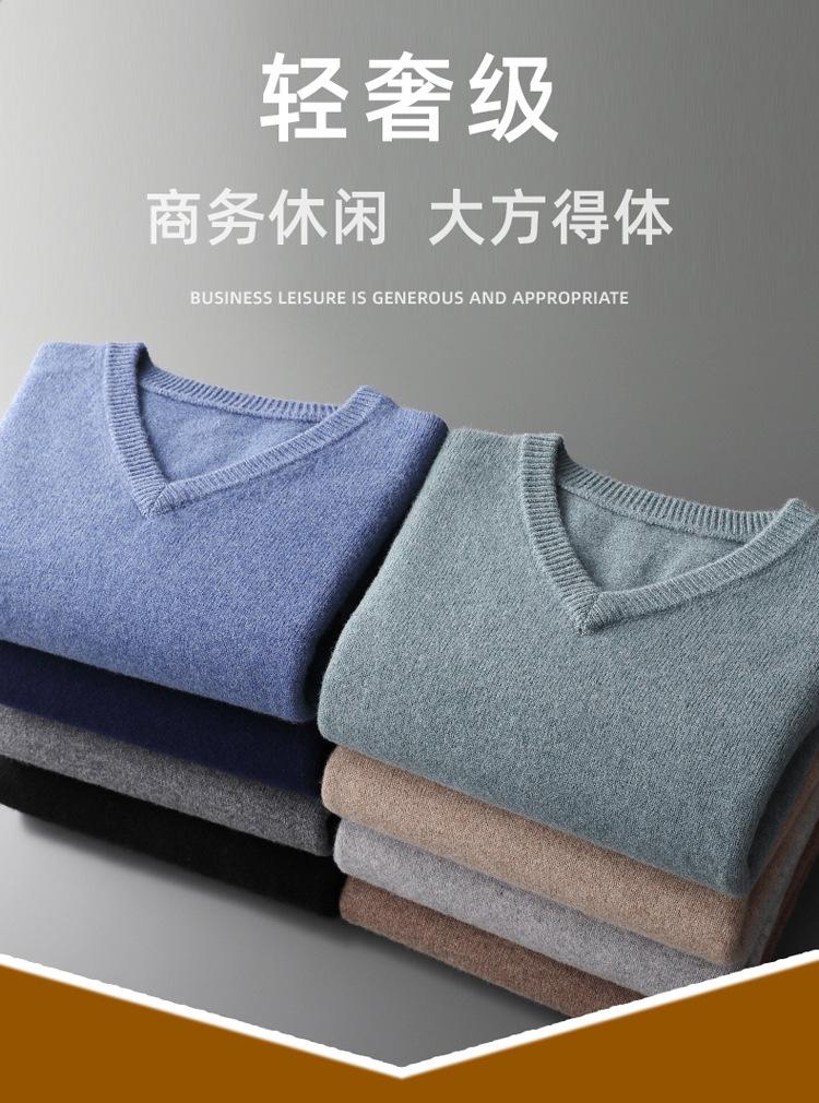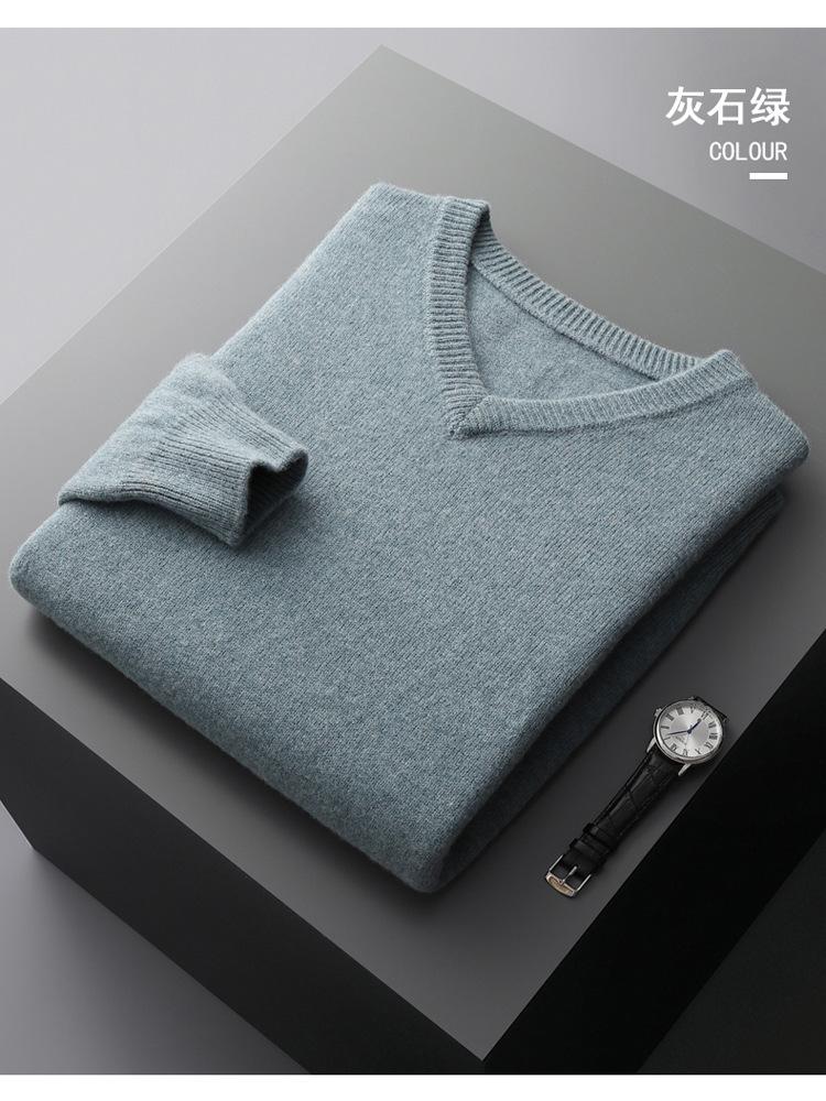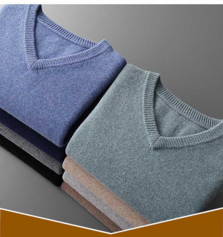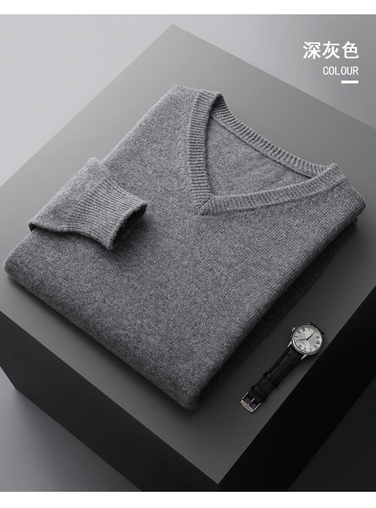 Compra Otoño e Invierno Nuevo Cuello en V Suéter de Hombre 100 Lana Suéter Casual Grueso Suéter de Lana Tejida de Siete Puntos Camiseta Base al por mayor en Joom.pro