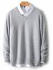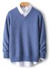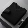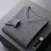 Otoño e Invierno Nuevo Cuello en V Suéter de Hombre 100 Lana Suéter Casual Grueso Suéter de Lana Tejida de Siete Puntos Camiseta Base