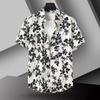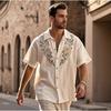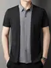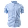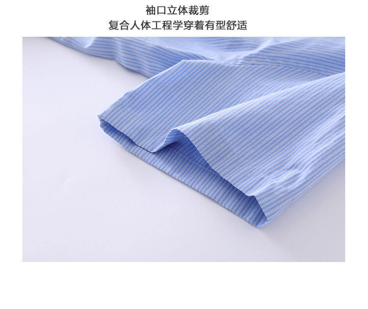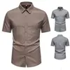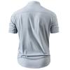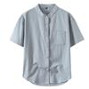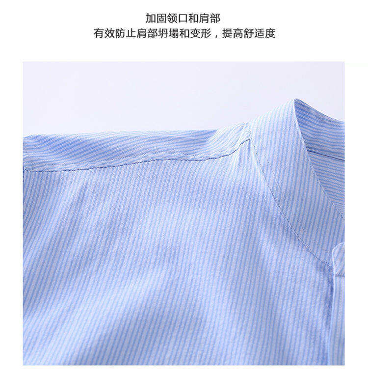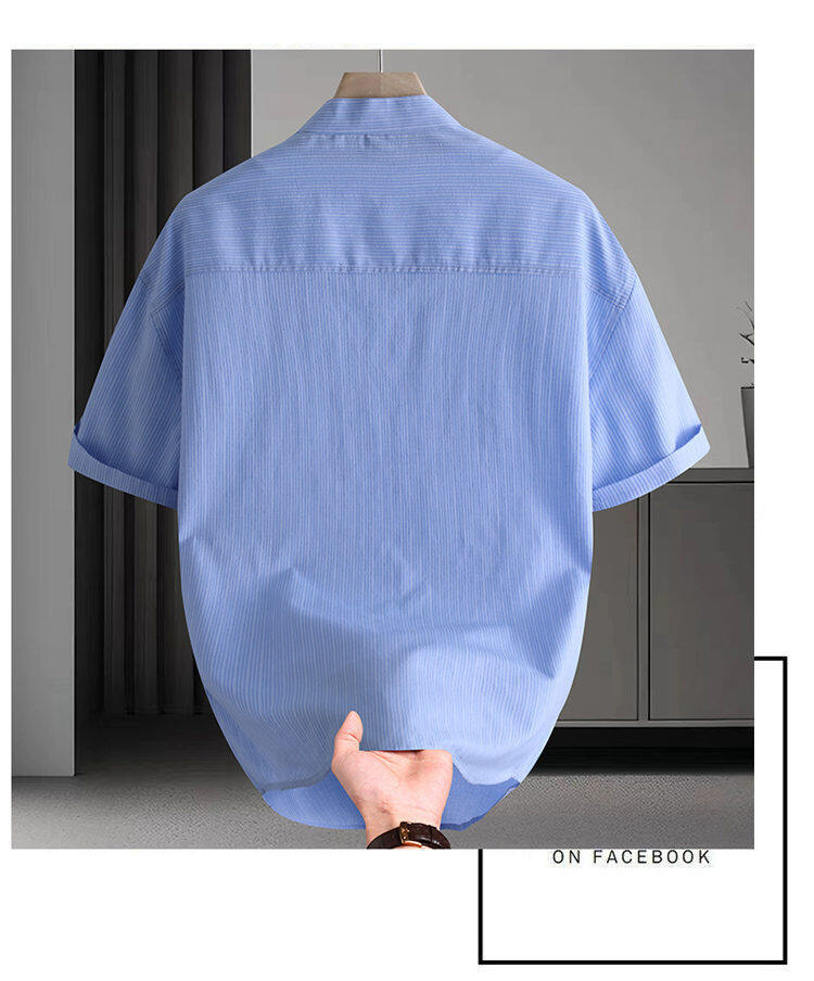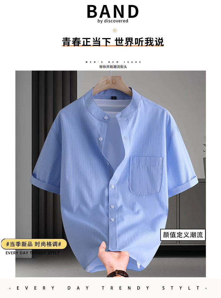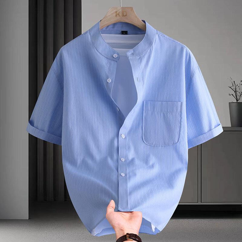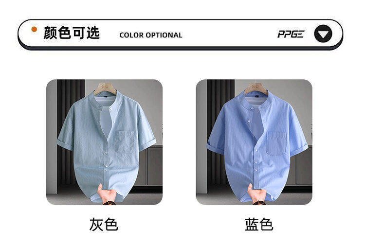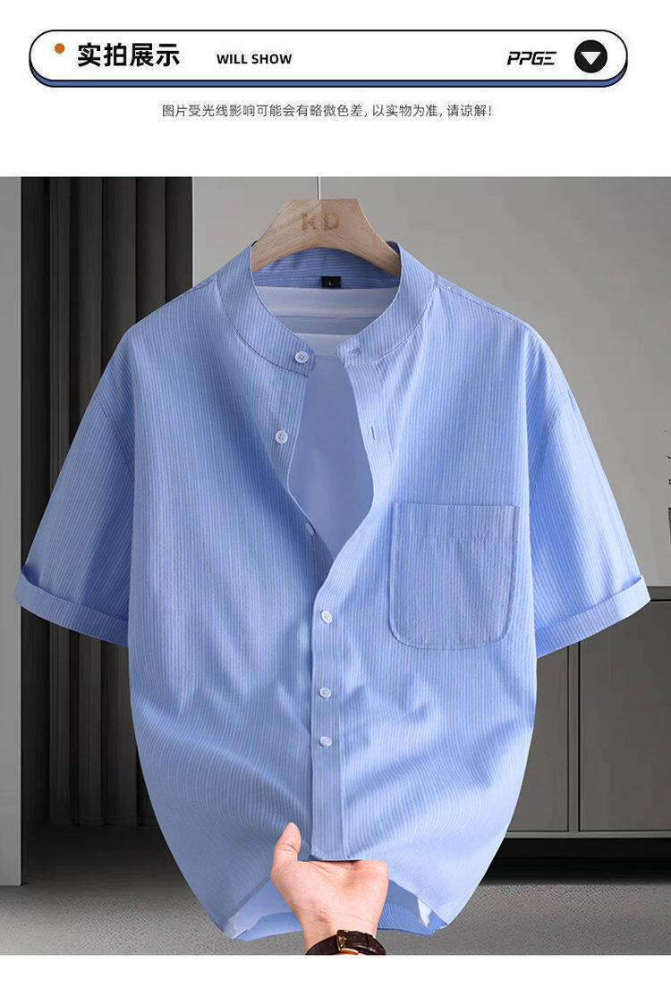 Camisa de Hombre de Cuello Mao Transfronteriza Verano Tela Burbuja Algodón Transpirable Camisa de Hombre Slim Rayada Casual Manga Corta