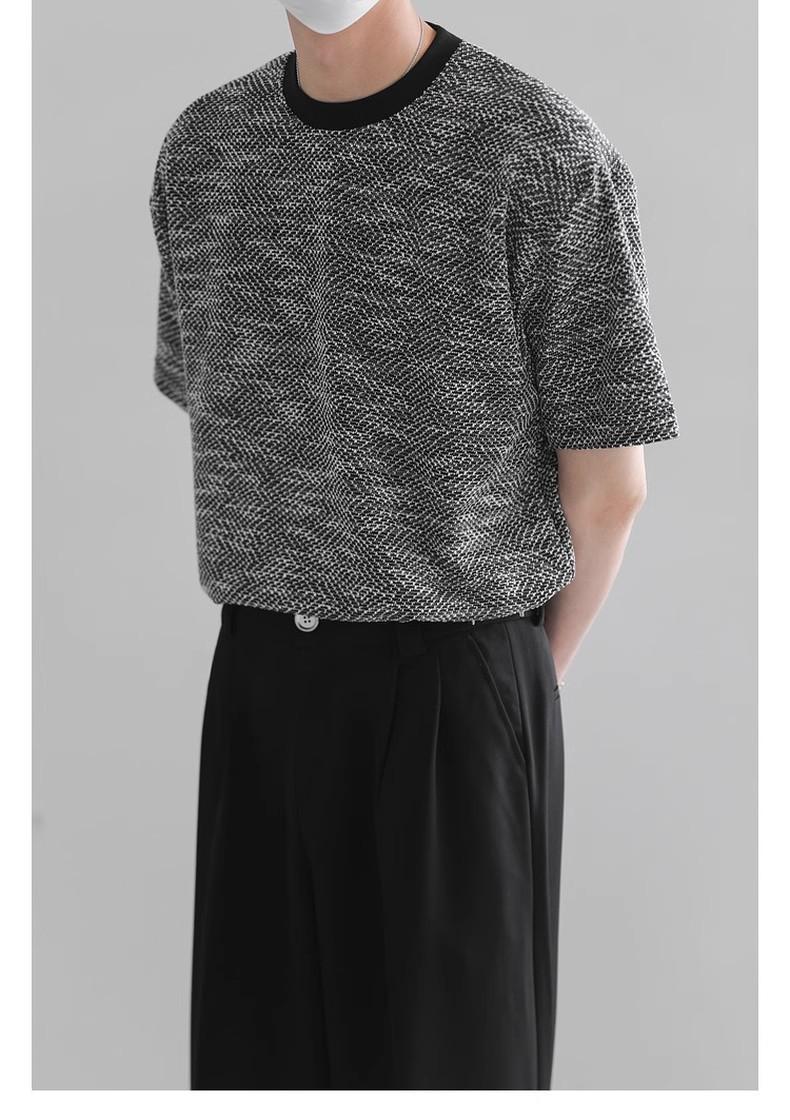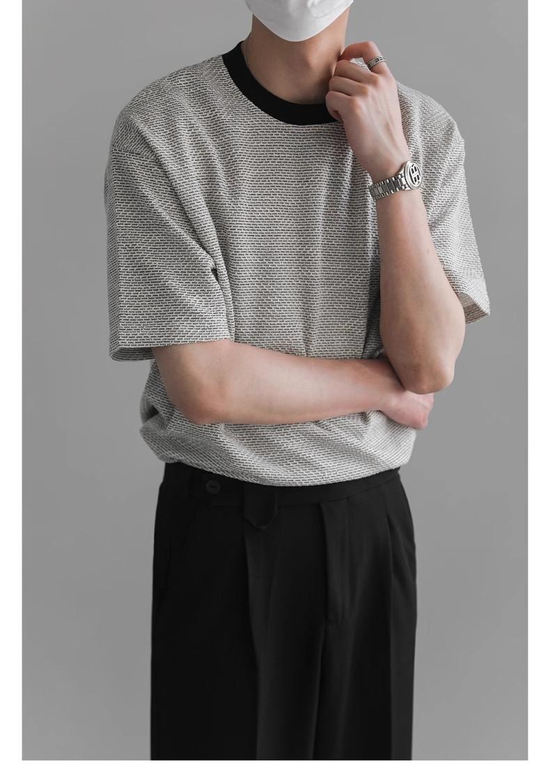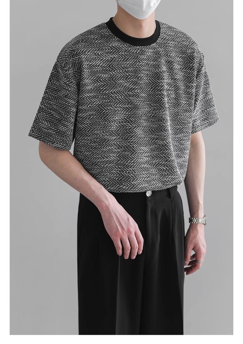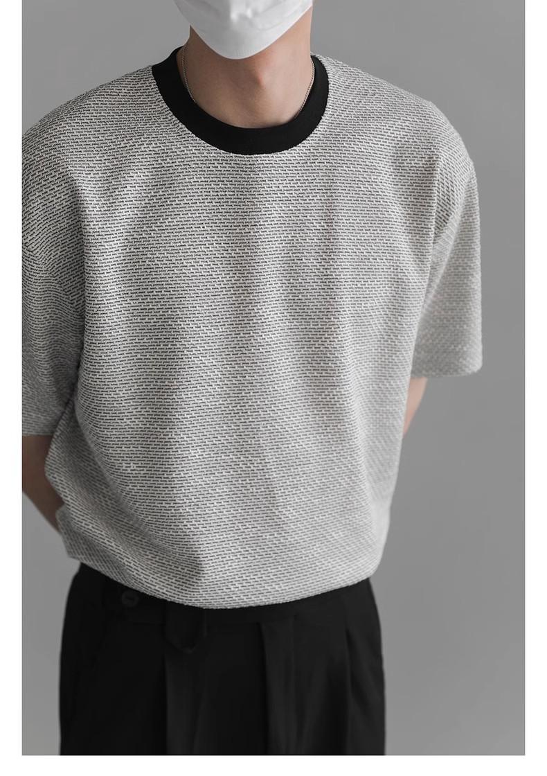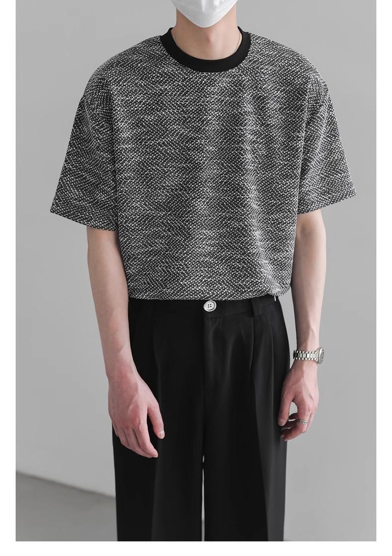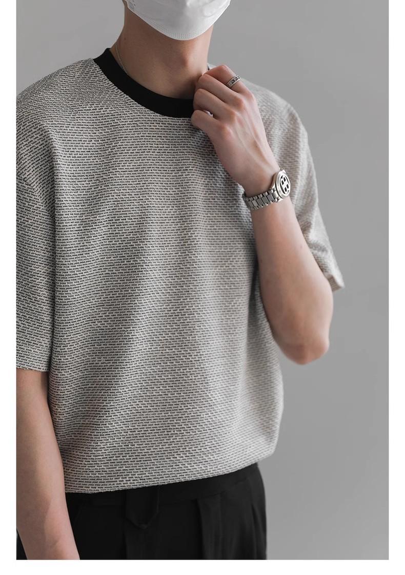 Playera de Hombre Jacquard Distintiva de Lujo Ligero Verano Cuello Redondo Combinable Transpirable Manga Corta Moda Holgada Casual Top de Hombre
