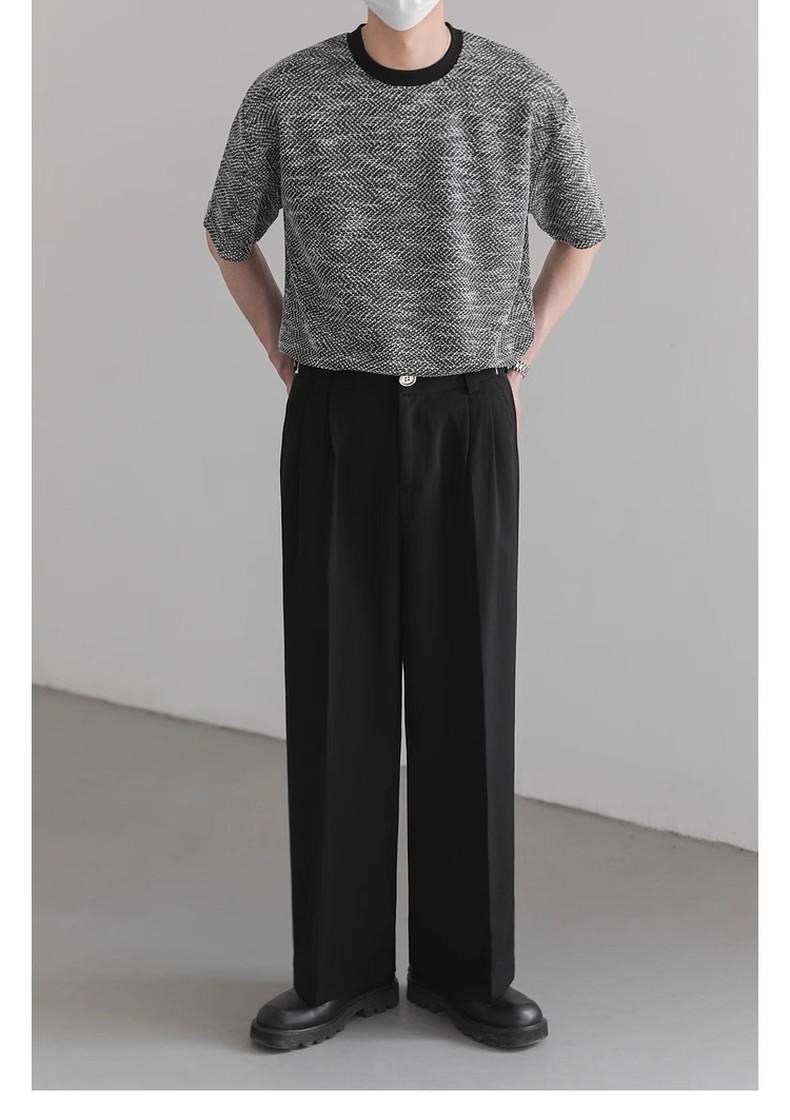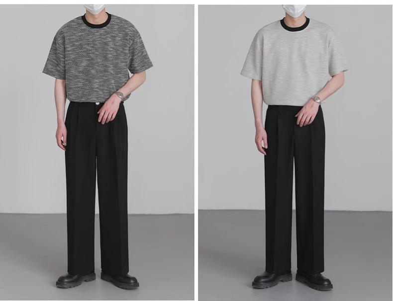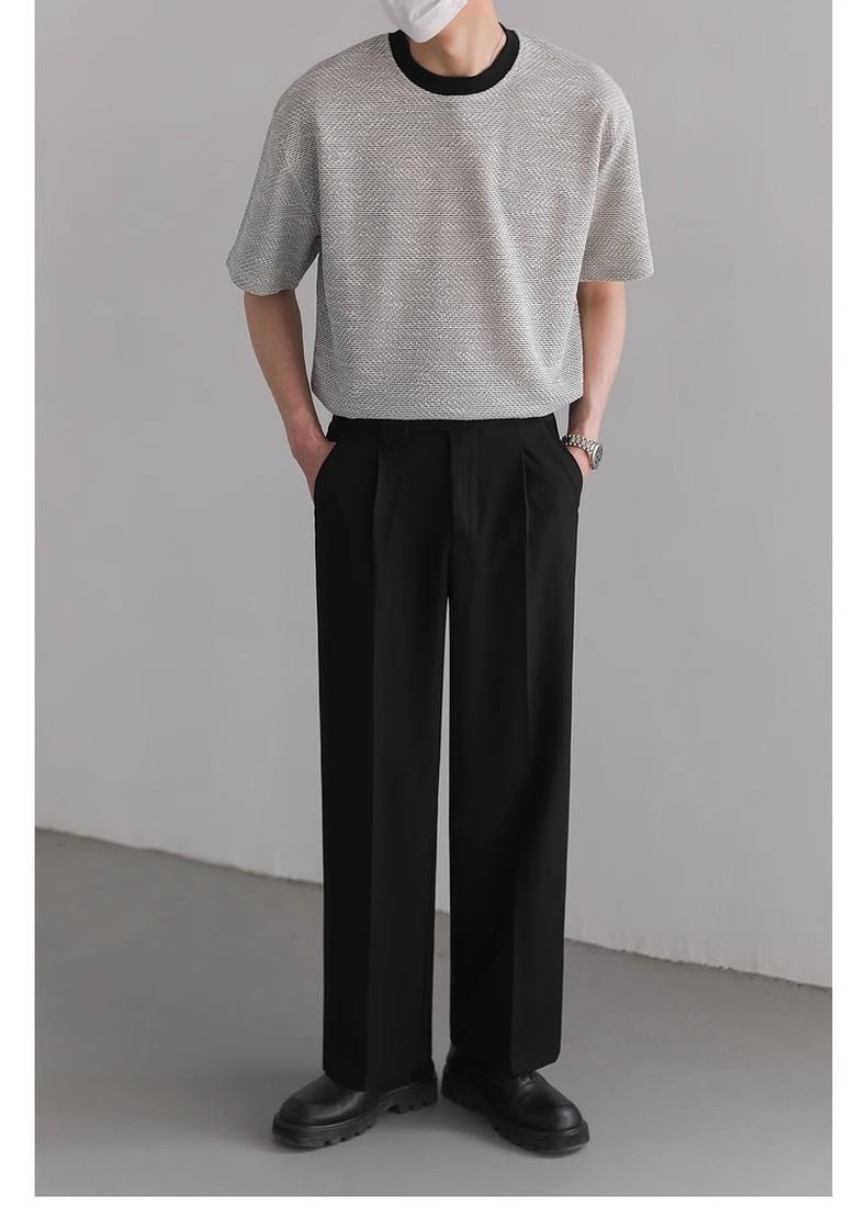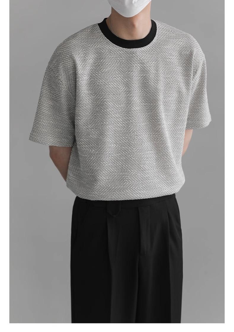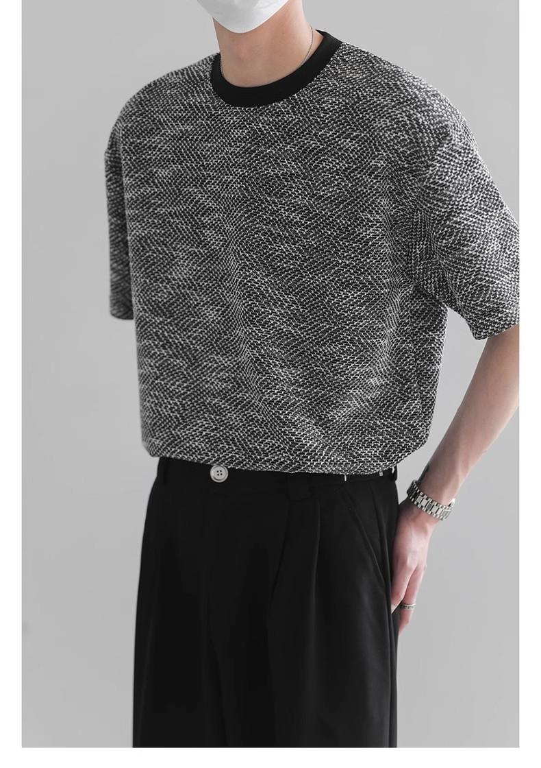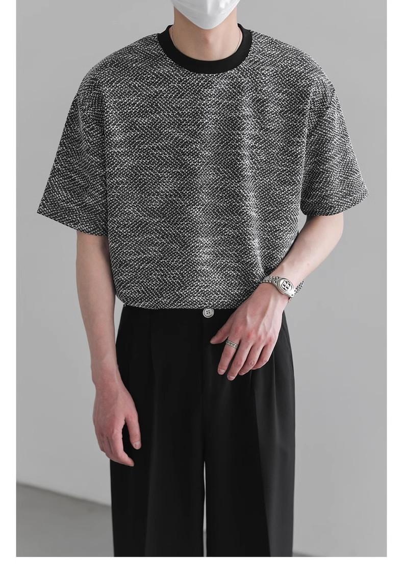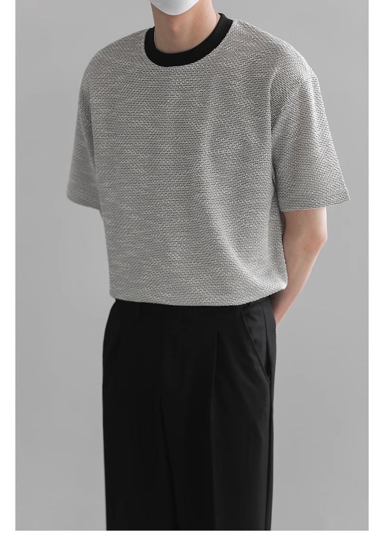 Playera de Hombre Jacquard Distintiva de Lujo Ligero Verano Cuello Redondo Combinable Transpirable Manga Corta Moda Holgada Casual Top de Hombre