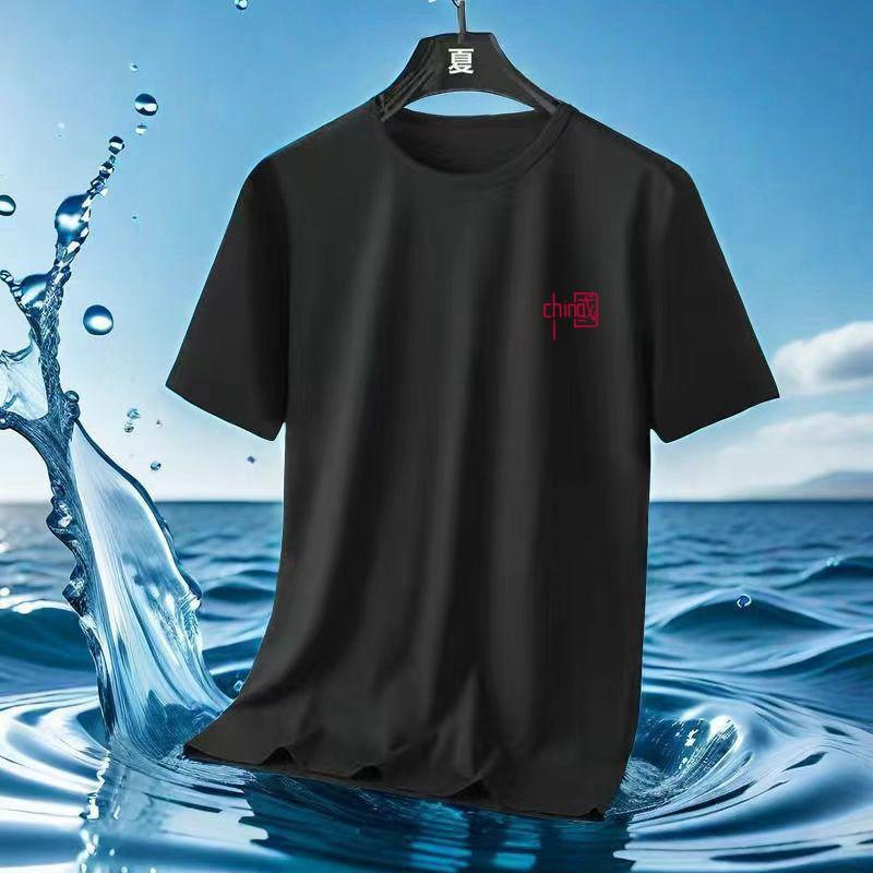 Camiseta de Hombre de Seda de Hielo al Por Mayor Transfronteriza Verano Suelta Talla Grande Manga Corta Camiseta Versátil Casual para Hombre Puesto de Moda