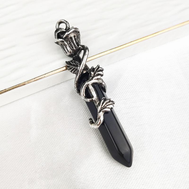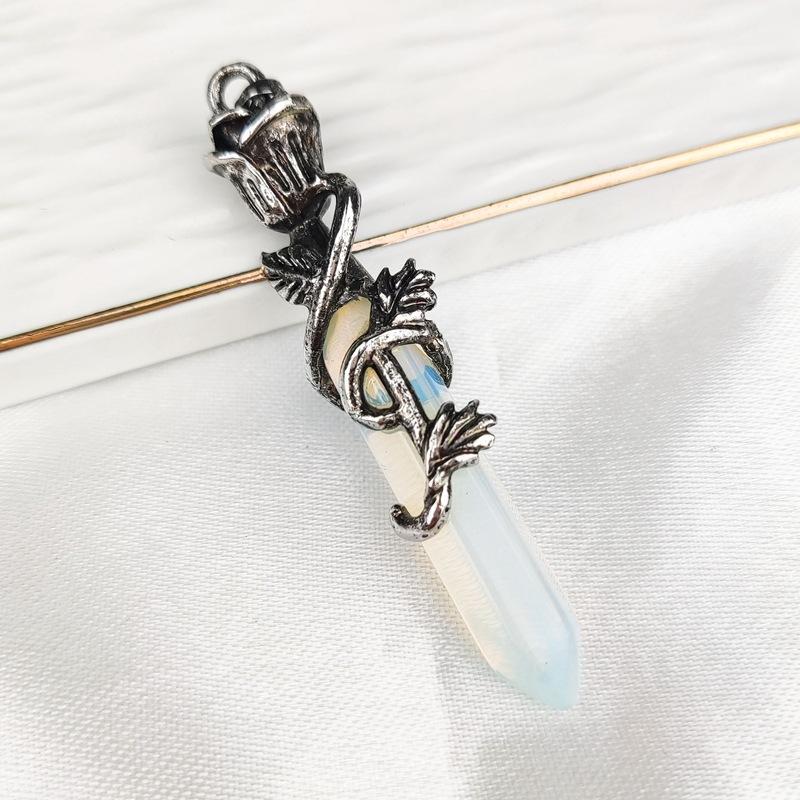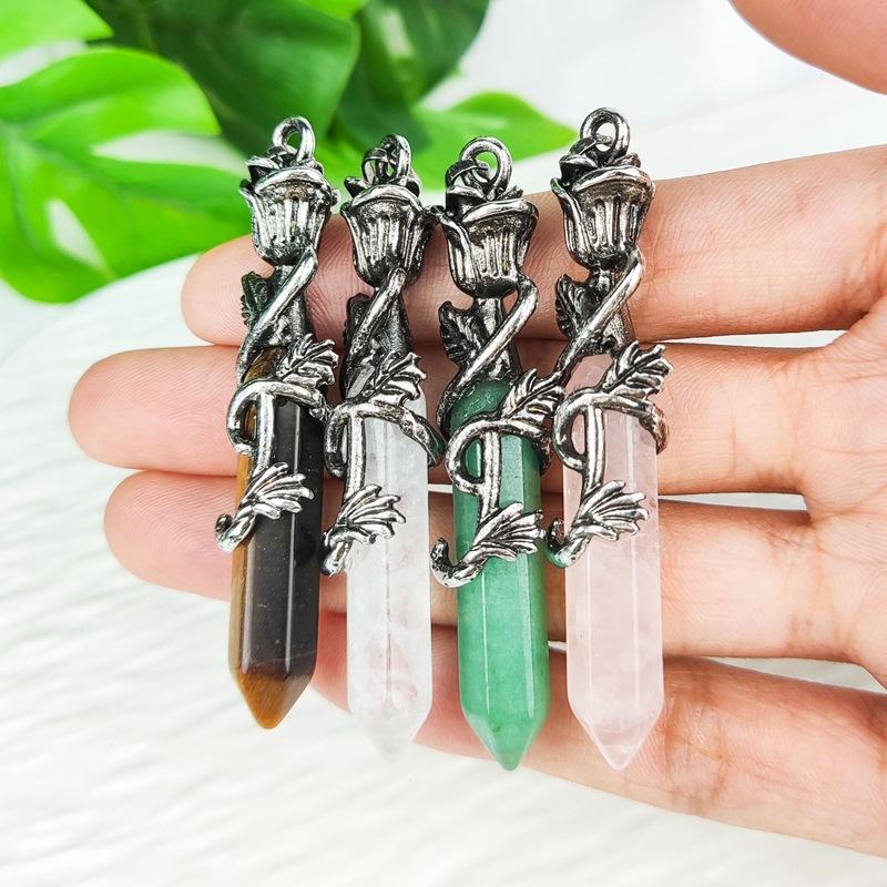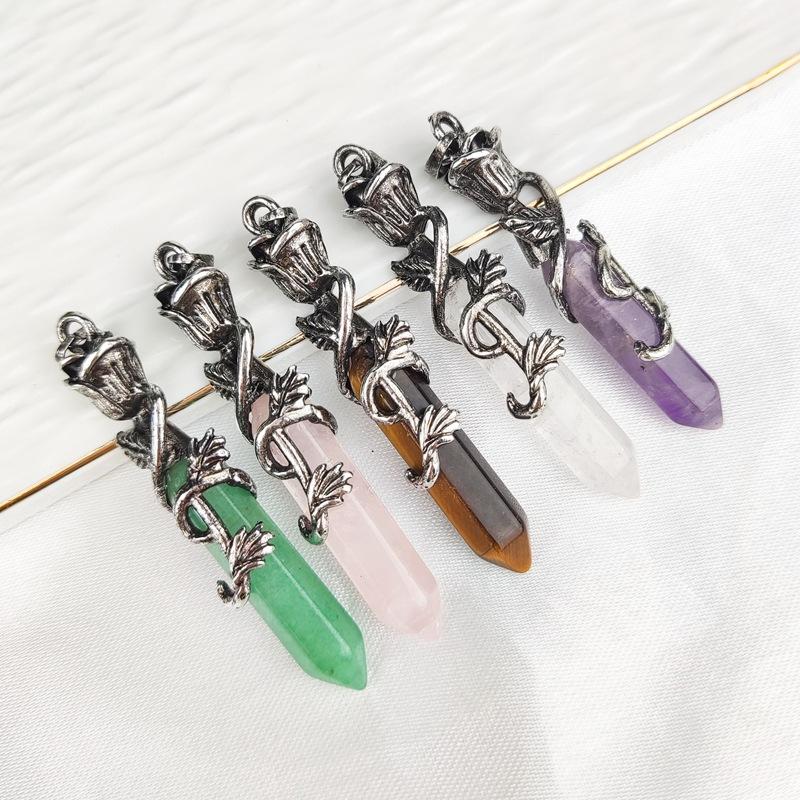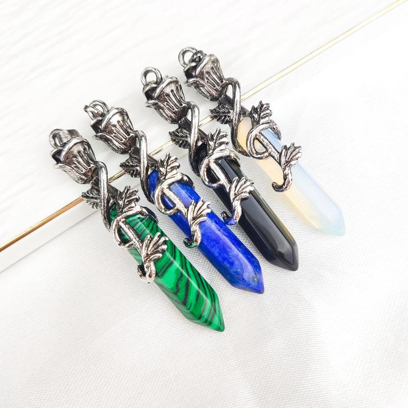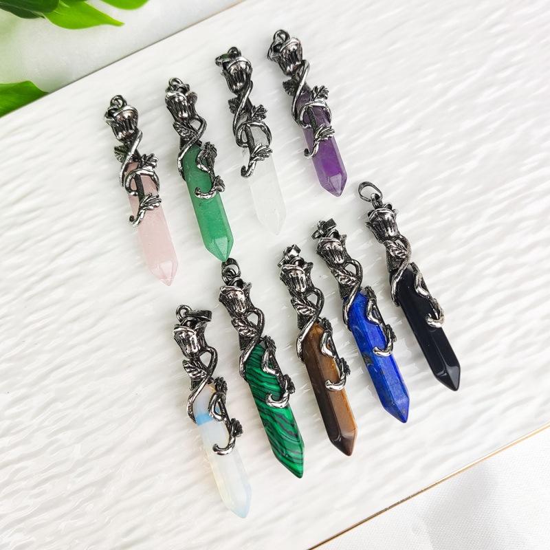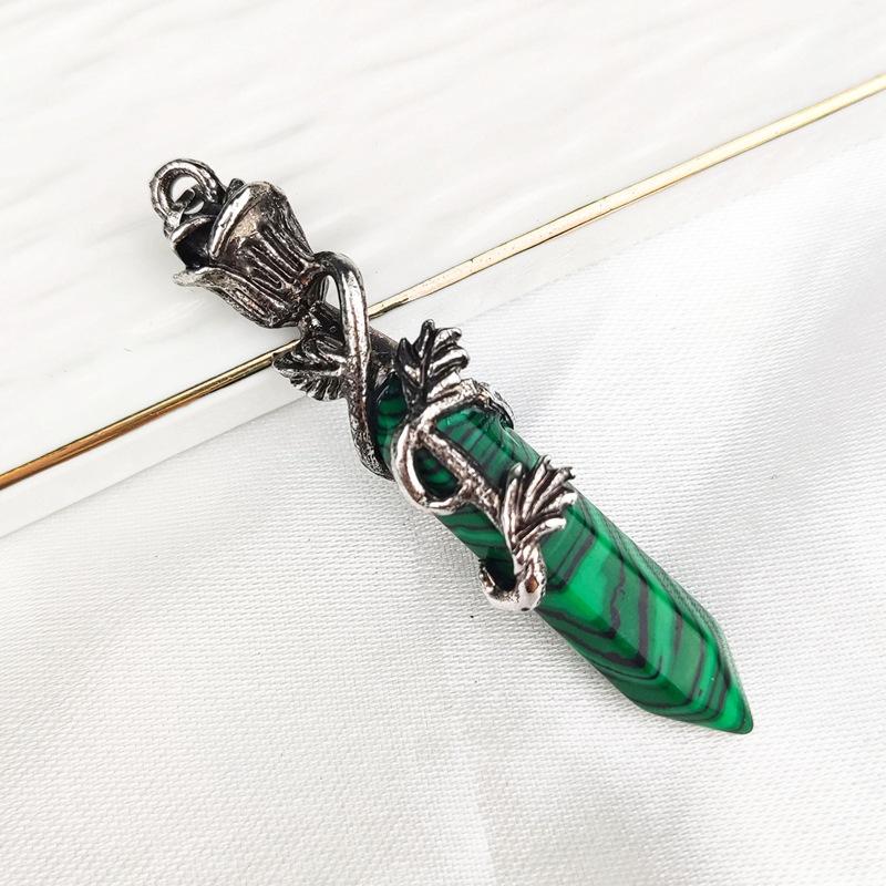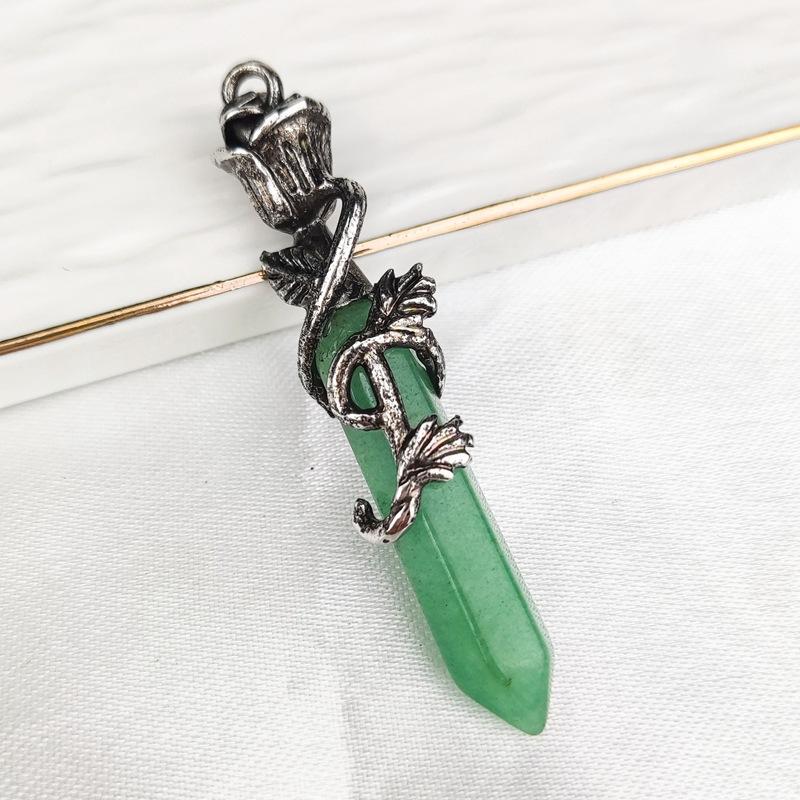 Joyería Amazon Piedra Dongling Verde Natural Colgante Hexagonal de Punta Única de Bala Collar de Serpiente Enrollada al por Mayor