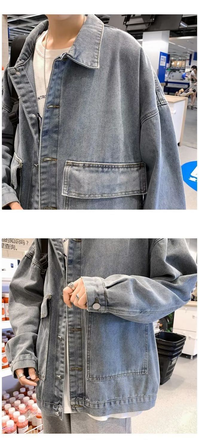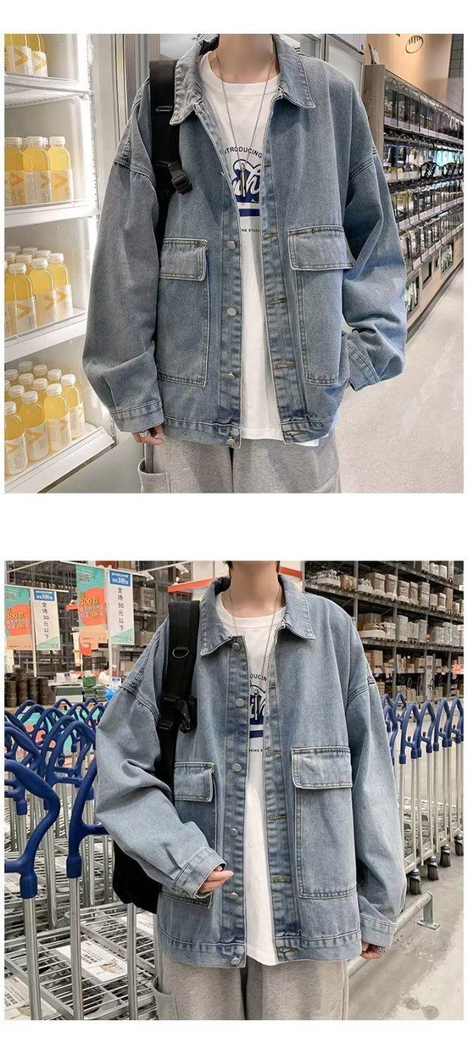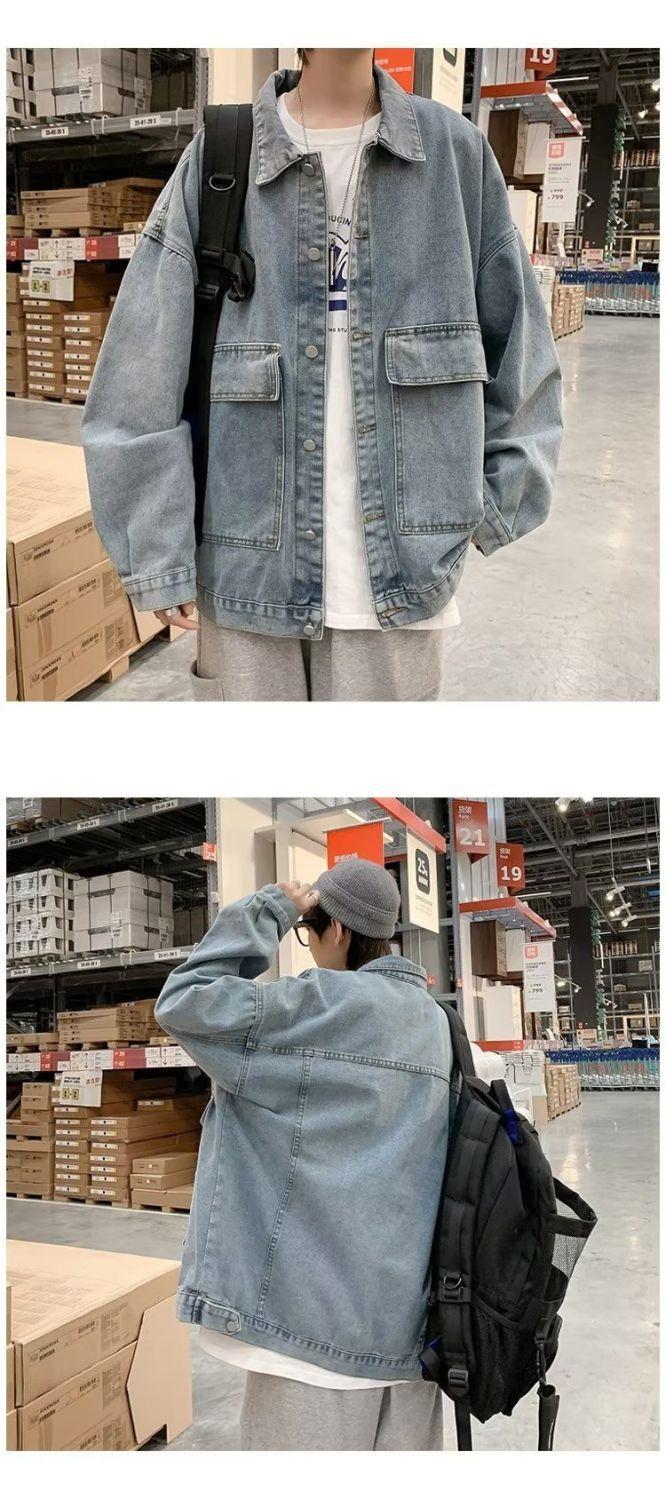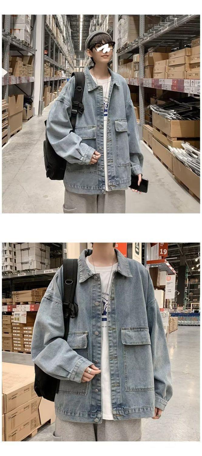 Compra Abrigo de mezclilla retro americano para hombre, chaqueta camisa de solapa de alta calle, primavera y otoño, top holgado oversize, mapache al por mayor en Joom.pro