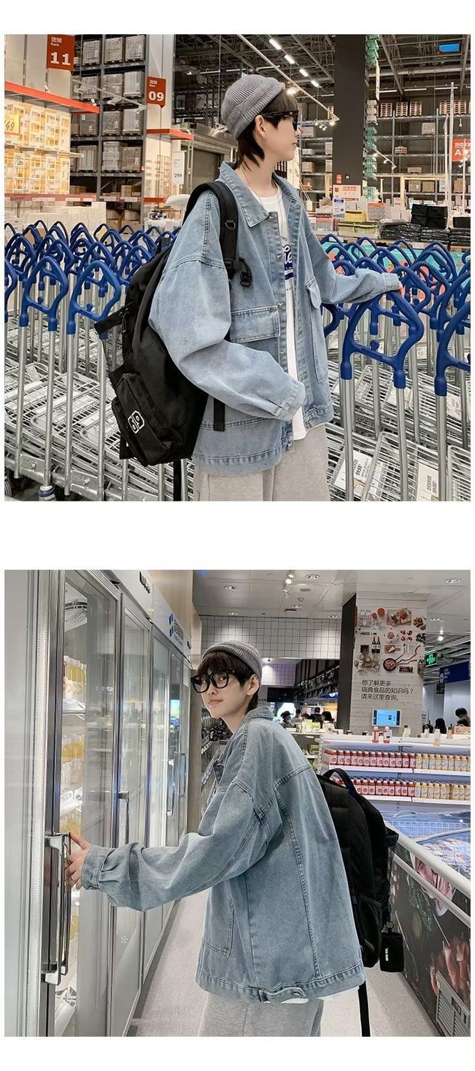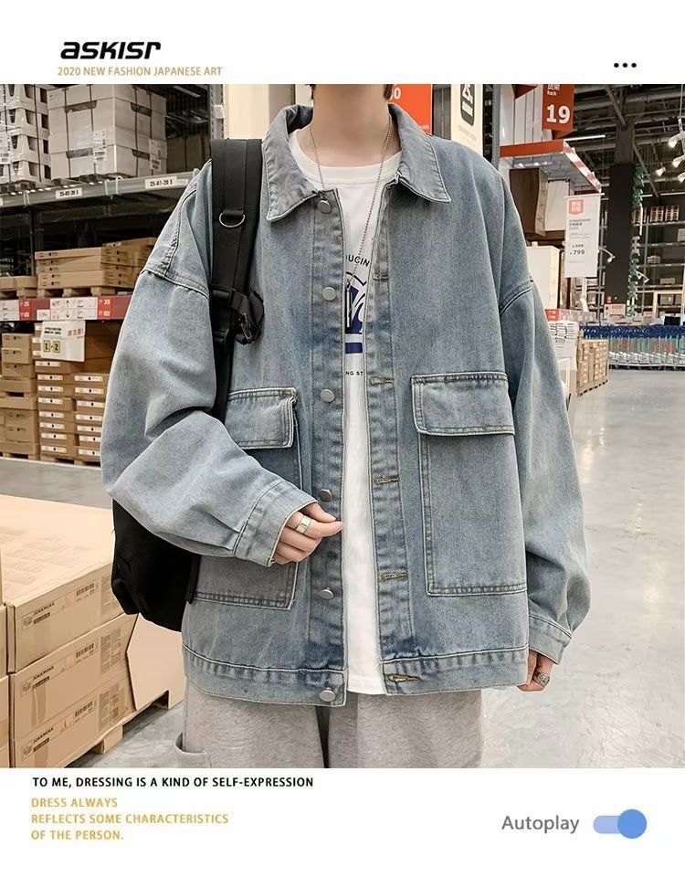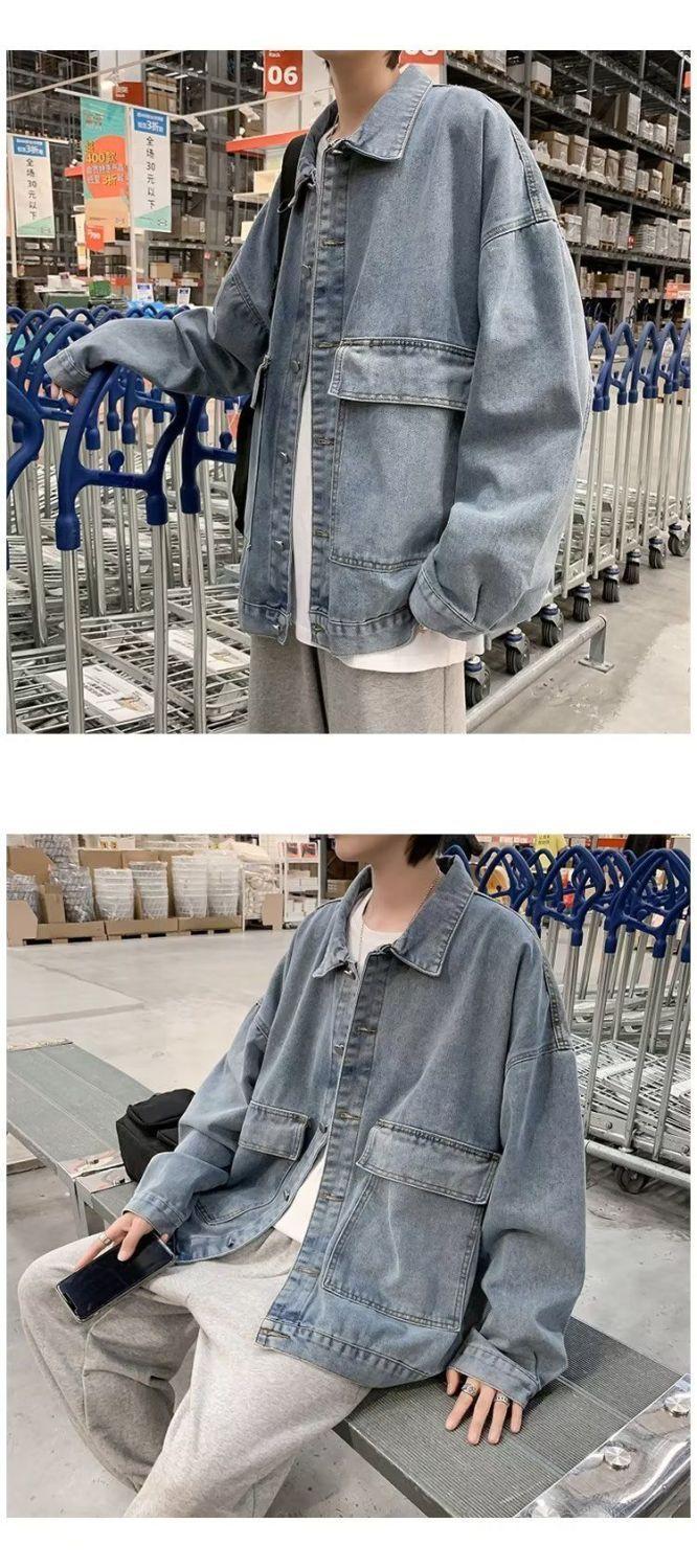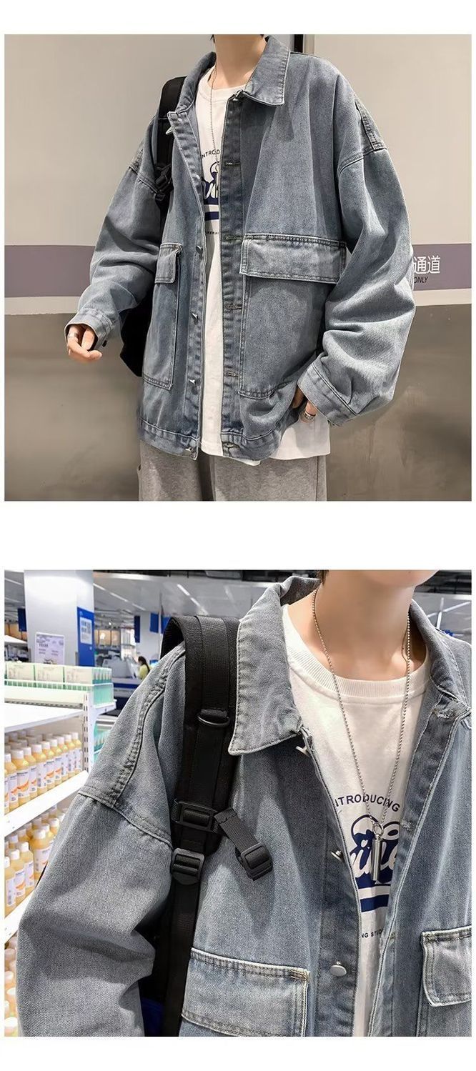 Compra Abrigo de mezclilla retro americano para hombre, chaqueta camisa de solapa de alta calle, primavera y otoño, top holgado oversize, mapache al por mayor en Joom.pro