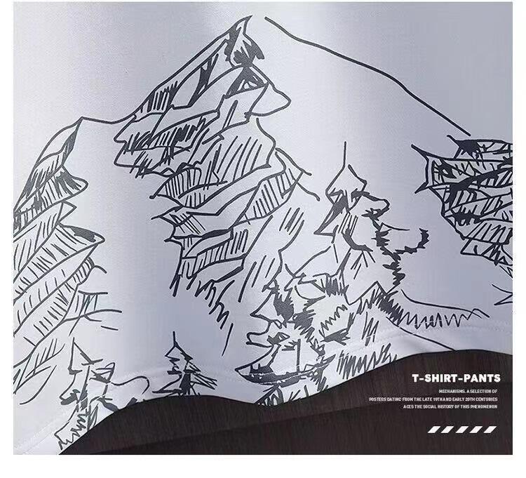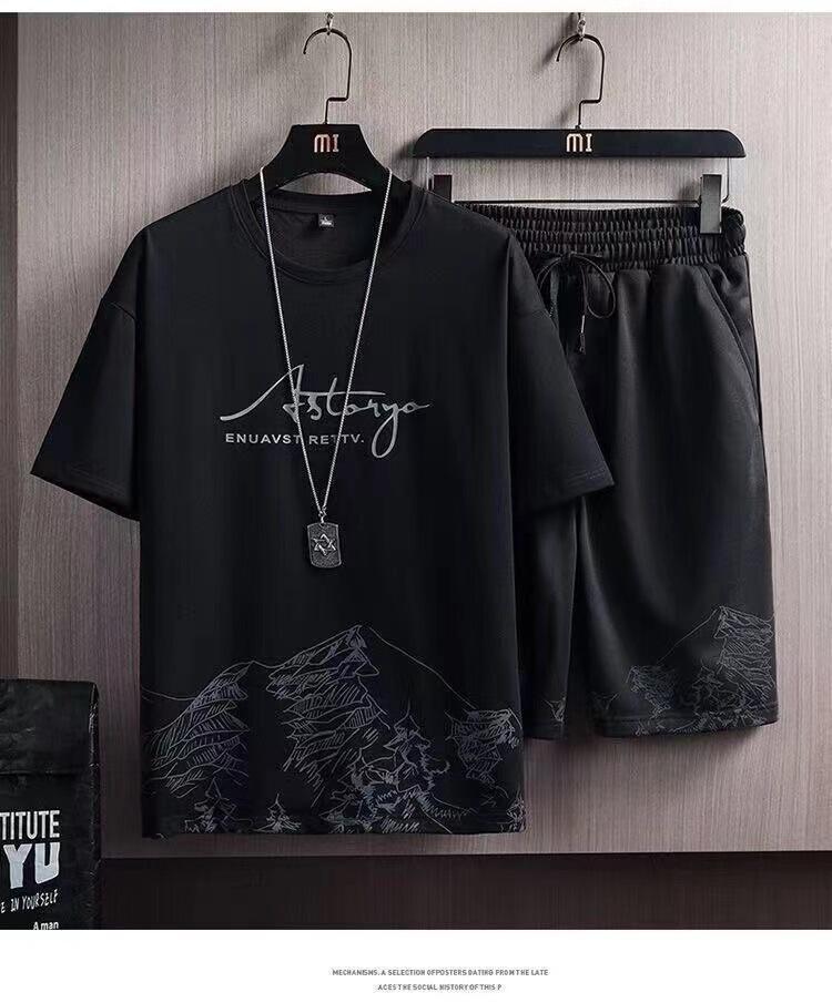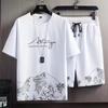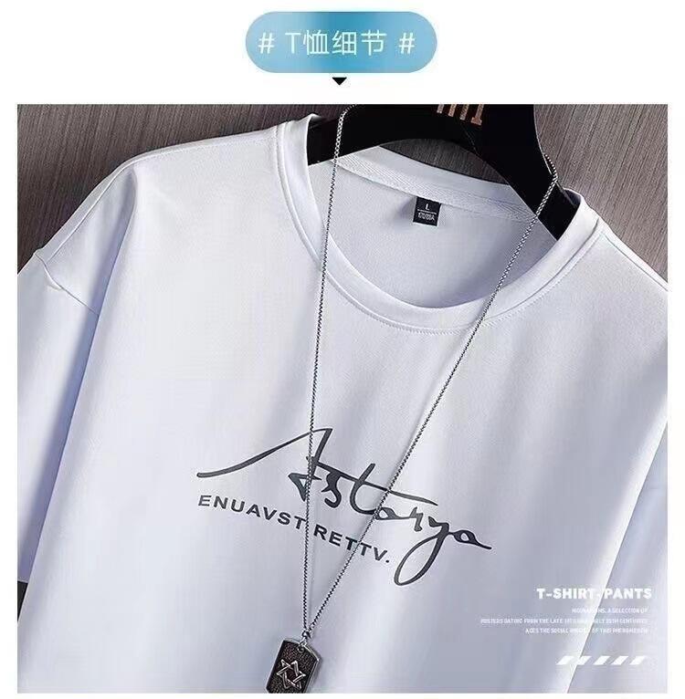 Nuevo Traje de Camiseta de Manga Corta de Verano para Hombre, Moderno y Elegante, Casual Ins Marca de Moda Manga Corta Camiseta de Seda de Hielo Conjunto de Dos Piezas para Hombre