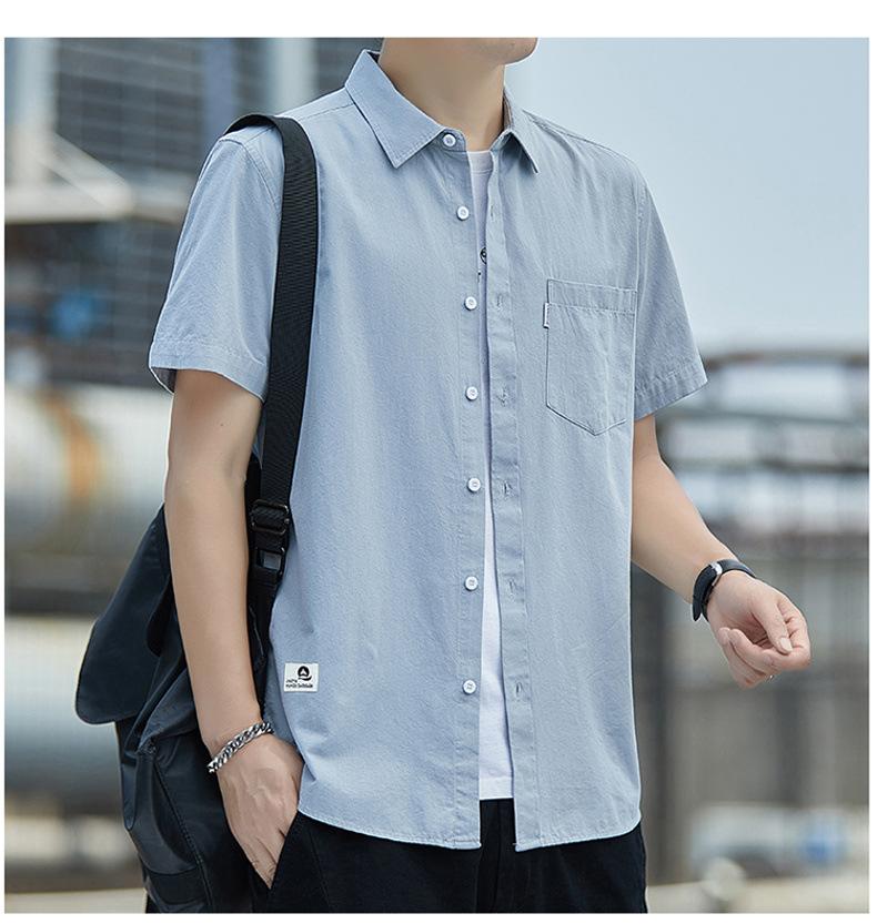 Compra Camisa de Algodón de Manga Corta para Hombre Nueva de Verano 2025 Estilo Coreano Ajustada Guapo Combinable Camisa de Moda Top para Jóvenes al por mayor en Joom.pro