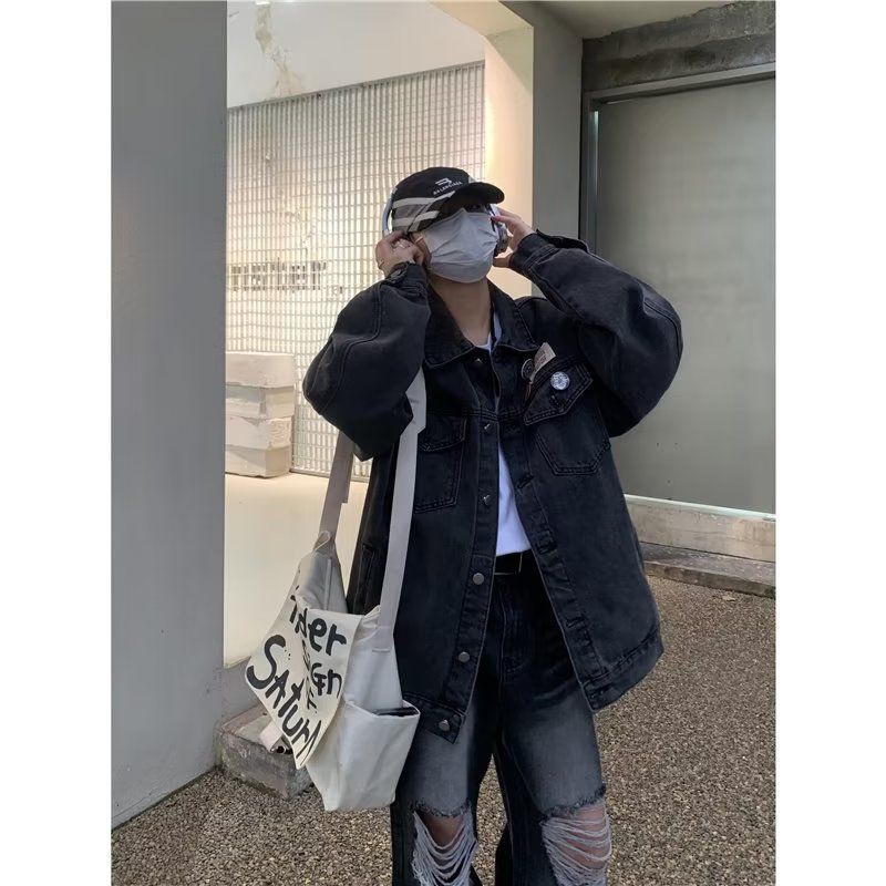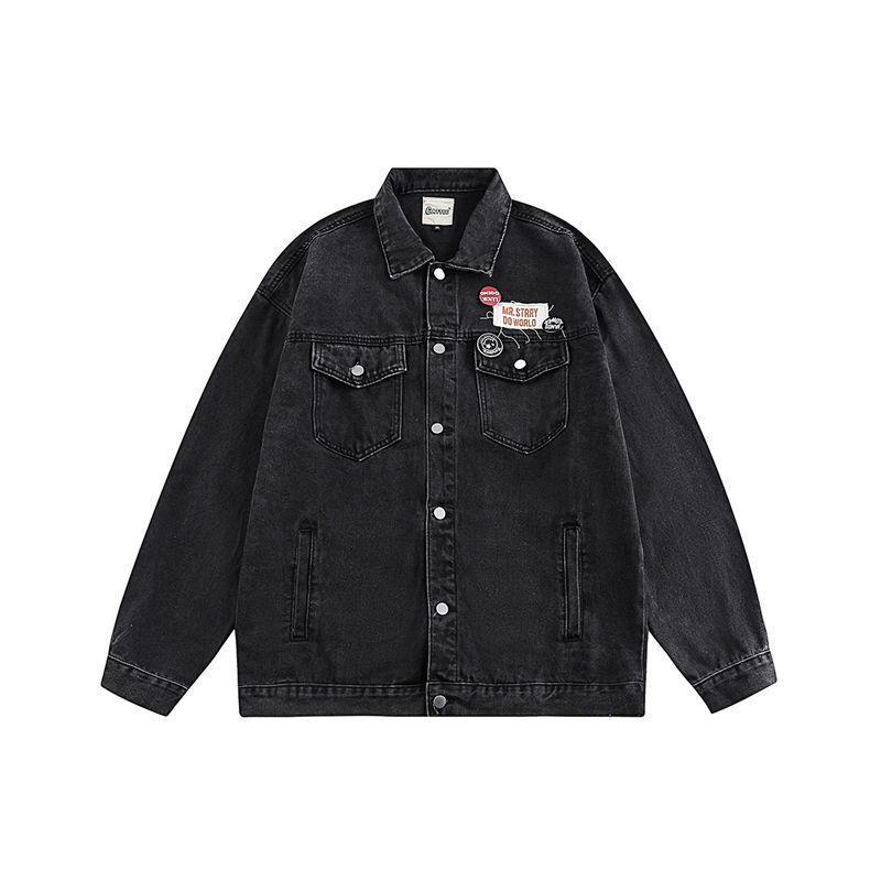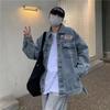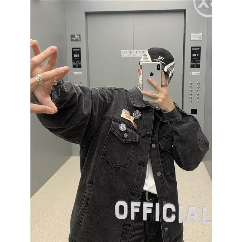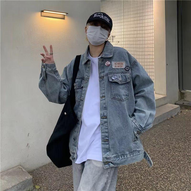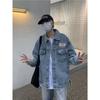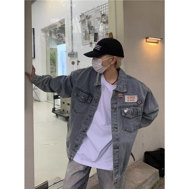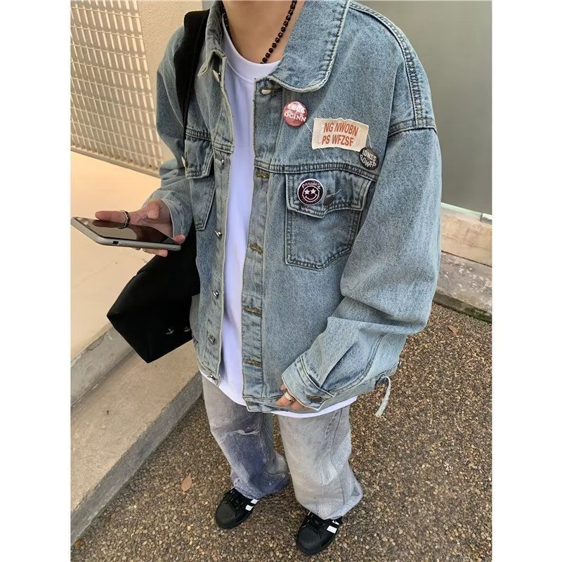 Chaqueta de mezclilla con insignia de primavera y otoño para hombre, estilo americano retro holgada, diseño de alta calle, versátil para pareja, marca de moda
