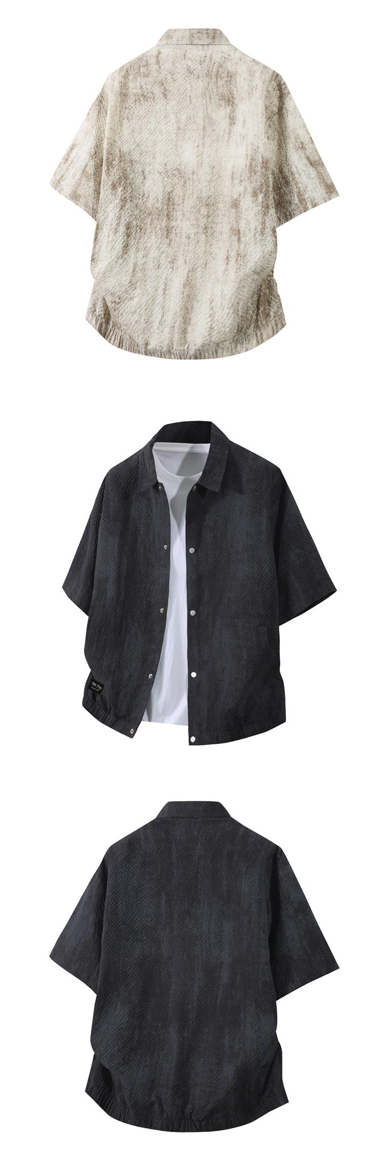 Camisa de Manga Corta para Hombre de Moda con Logo Personalizado, Holgada Adelgazante Talla Extra Verano Estampado Tie-Dye Cuello Mao Estilo Americano