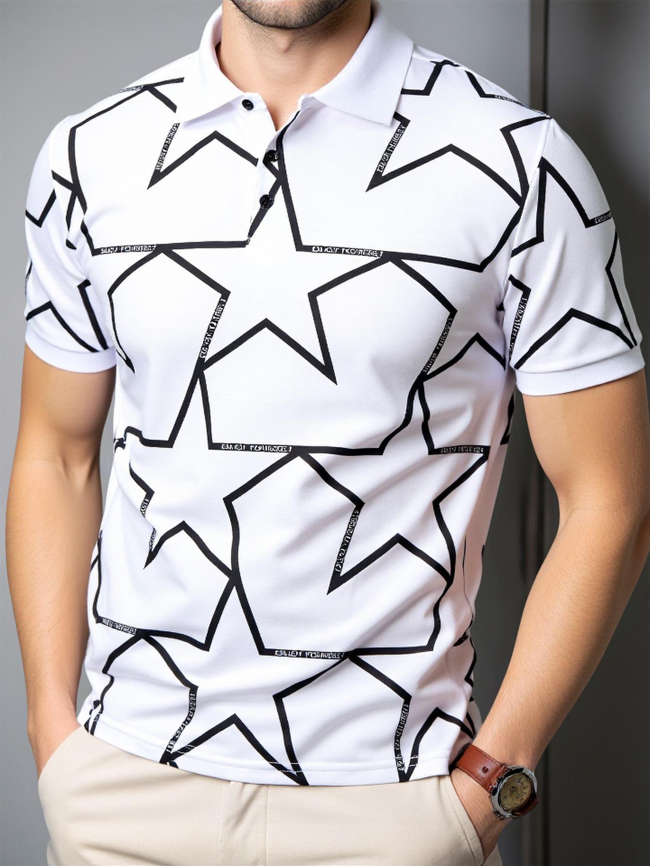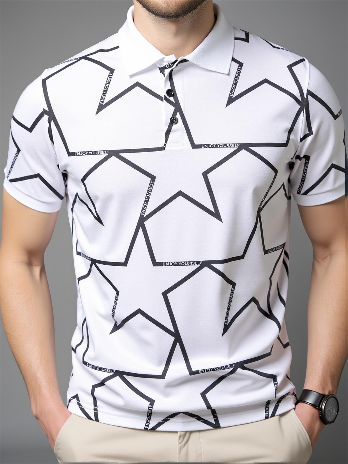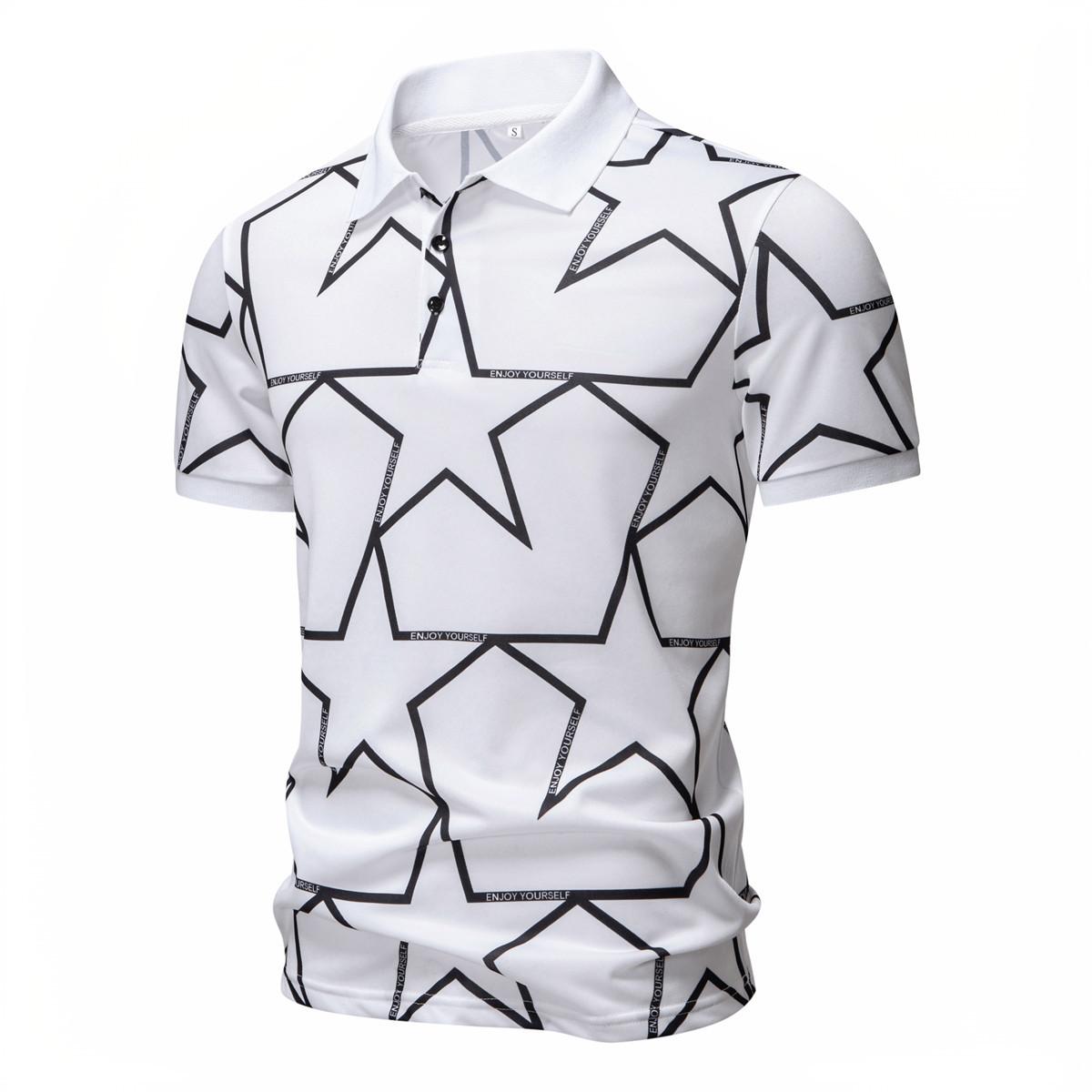 Compra Talla Europea Transfronteriza para Hombre Verano Nueva Moda Camiseta Polo de Manga Corta Estampada con Estrella de Cinco Puntas Casual Versátil Camiseta de Manga Corta al por mayor en Joom.pro