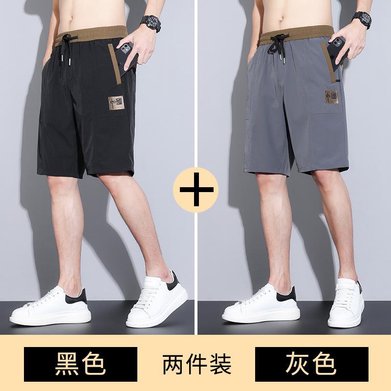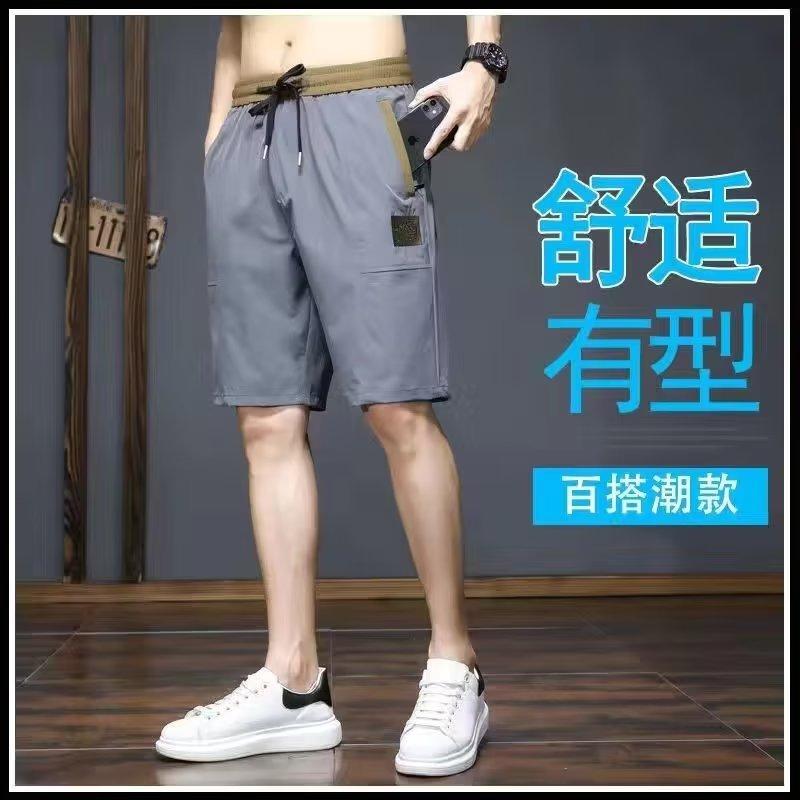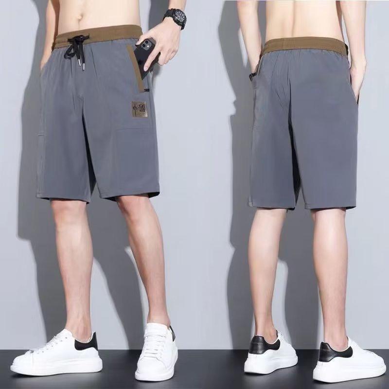 Shorts Casuales Transpirables de Seda de Hielo de Verano para Hombre, Pantalones Cortos Deportivos Finos de Moda para Hombre, Pantalones Cinco Puntos de Secado Rápido, Marca de Moda, Holgados, Pantalones Medios