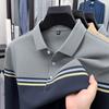 2025 Nueva Camisa Polo de Manga Larga para Hombre Estilo Business de Primavera y Otoño con Cuello, Camiseta Casual de Moda Bordada de Color Sólido